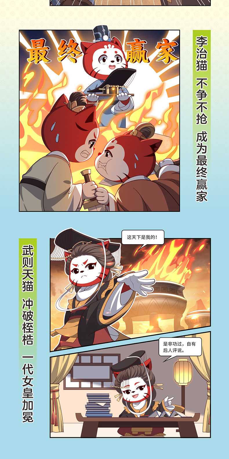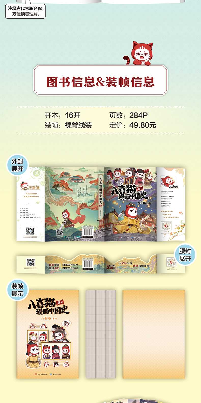 经过反复的思考与打磨,历经二年,我们终于推出了这套;八喜猫漫画中国史系列丛书。本系列丛书参考了诸多史料,以朝代为划分,以人物为线索,用生动的文案与漫画带领大家跟随历史人物的人生轨迹,体验他们的生平故事,感受云谲波诡而又惊心动魄的历史大事件,洞见瑰丽而壮阔的中国史。
