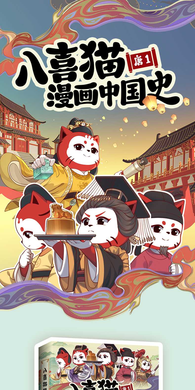★全网粉丝530万十、点赞超7000万、累计播放量破15亿的知名国潮动漫IP八喜猫,历经两年时间精心打磨,选用纪传体历史的编写方式,以改变历史进程的历史人物为线索、华丽精致的画风,轻松幽默的文字风格,趣味讲述不一样的漫画大唐史。