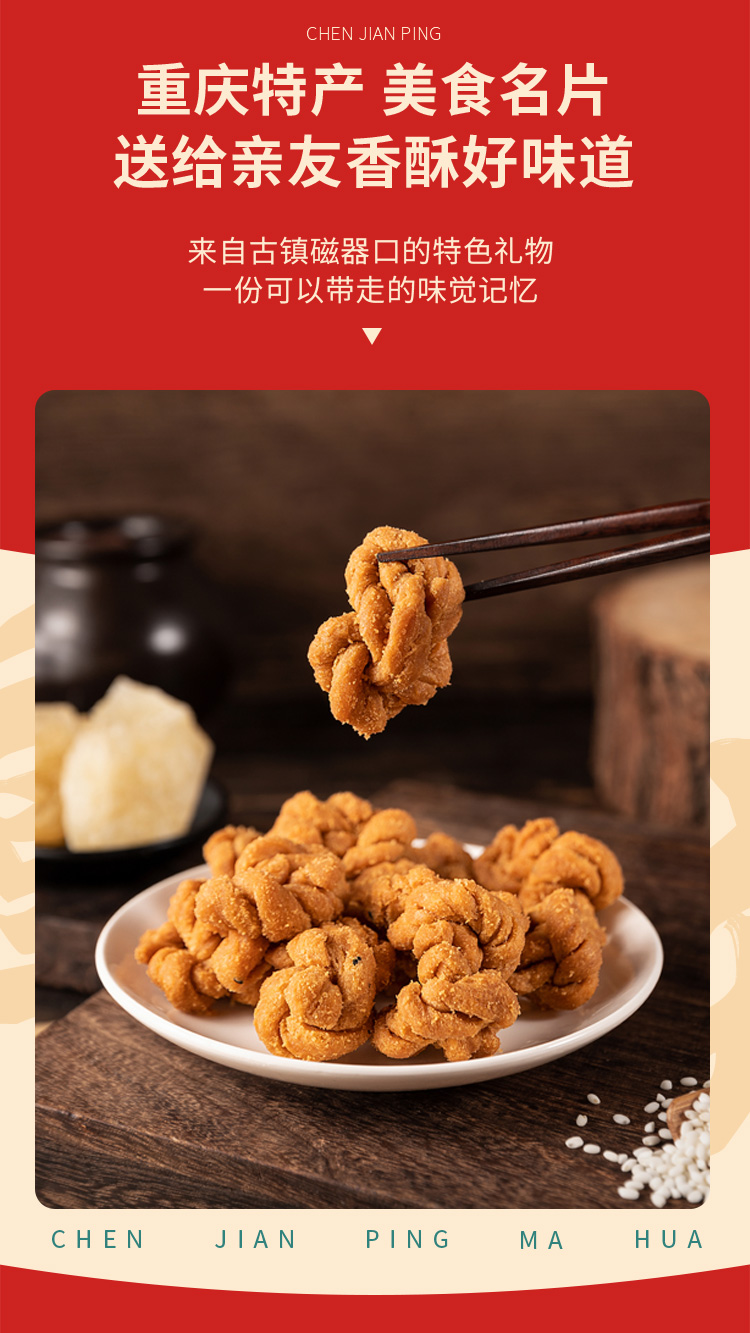 陈建平重庆特产磁器口非遗老字号陈麻花零食老式糕点手工大麻花400g