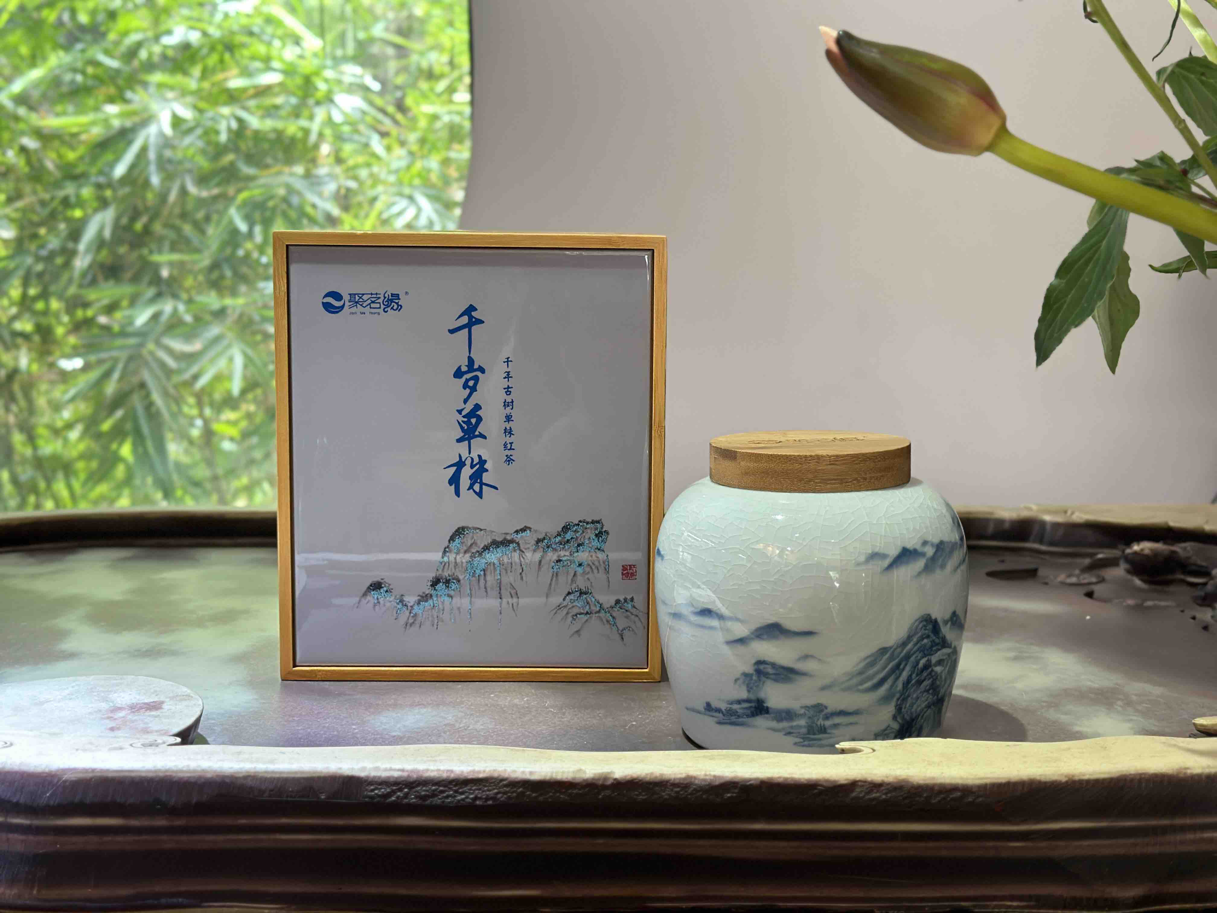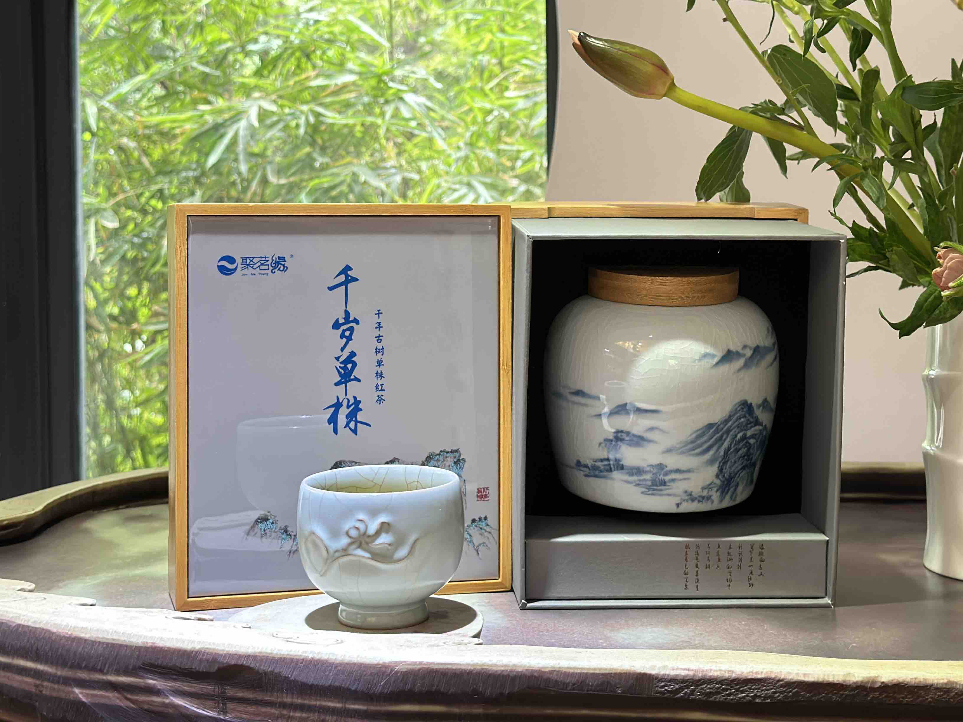 中国红茶|【千岁单株】千年野生古树单株红茶,江山如此多娇瓷罐装,珍稀古树绝代风华,乌润肥美兰香蜜韵气韵荡漾心田~汤色金黄明亮,滋味鲜醇甜爽,暖心愉悦,活色生香,怡然自得…净含量100g*1盒