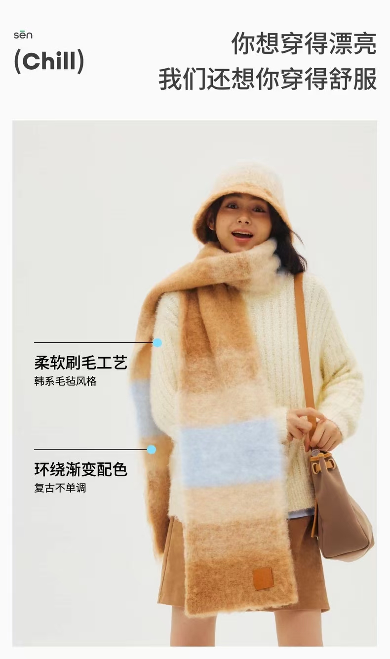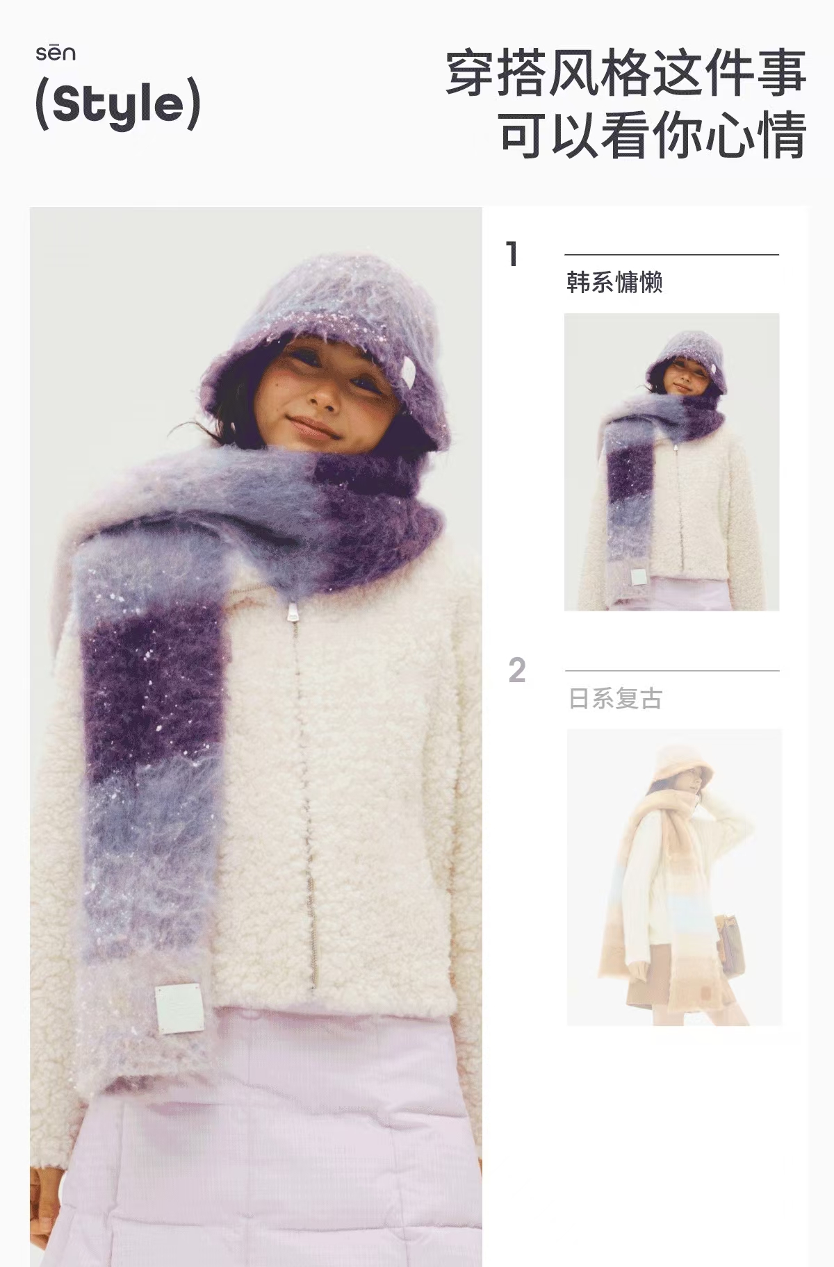 4楼Eubelle欧蓓 上森派系围巾 女 冬季羊毛围脖护颈披肩韩系渐变 活动价:229.9-379.9元