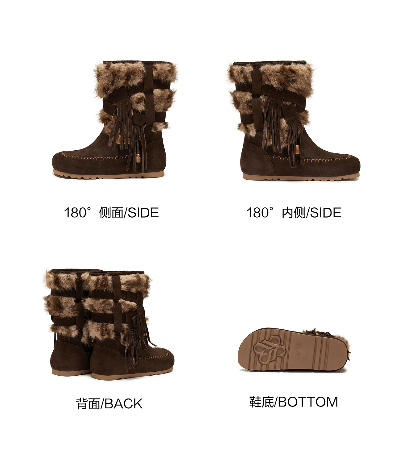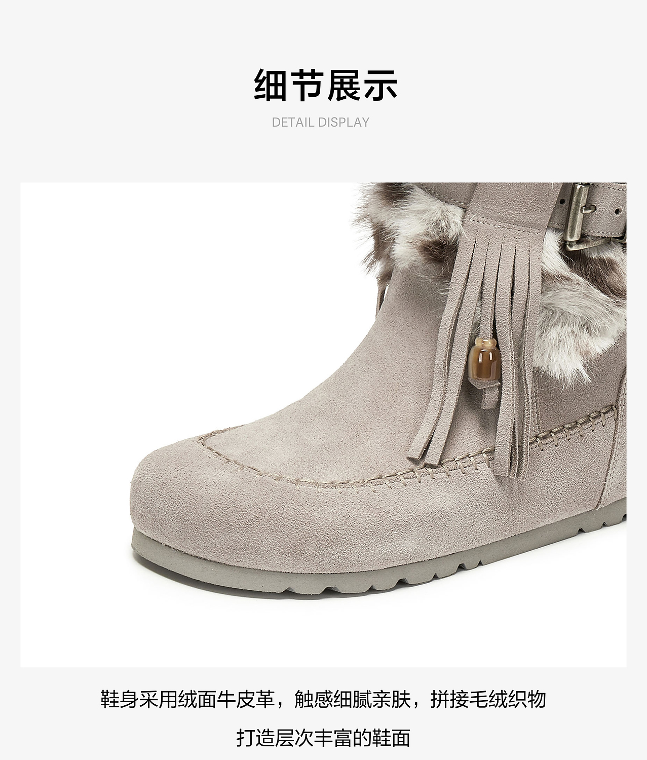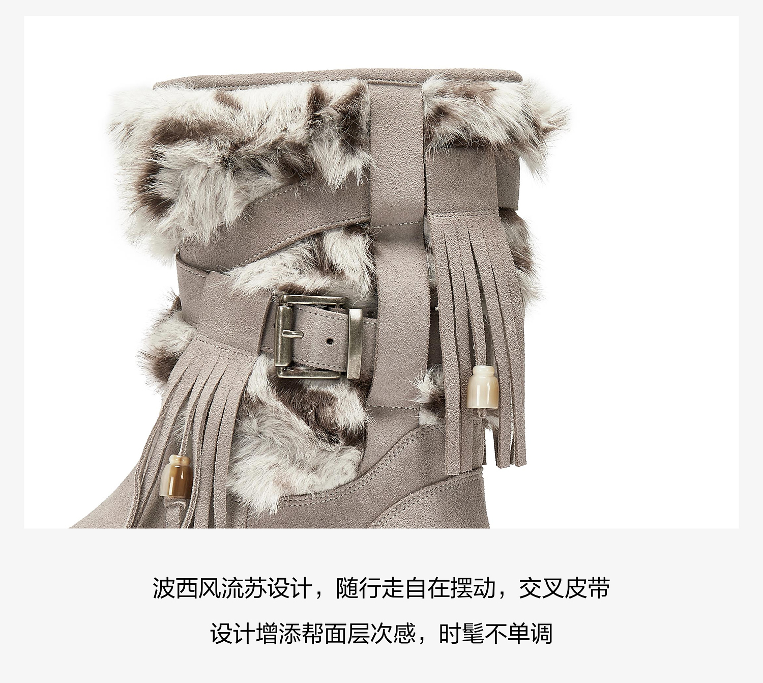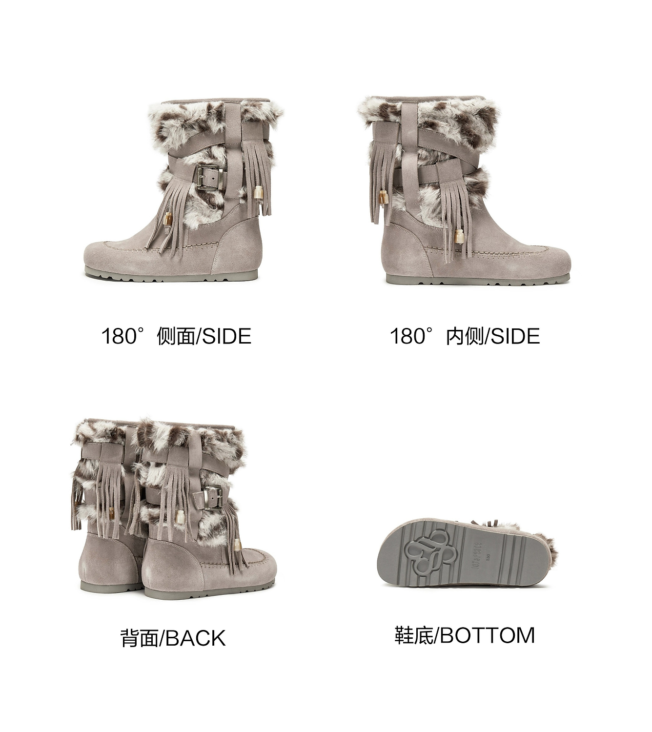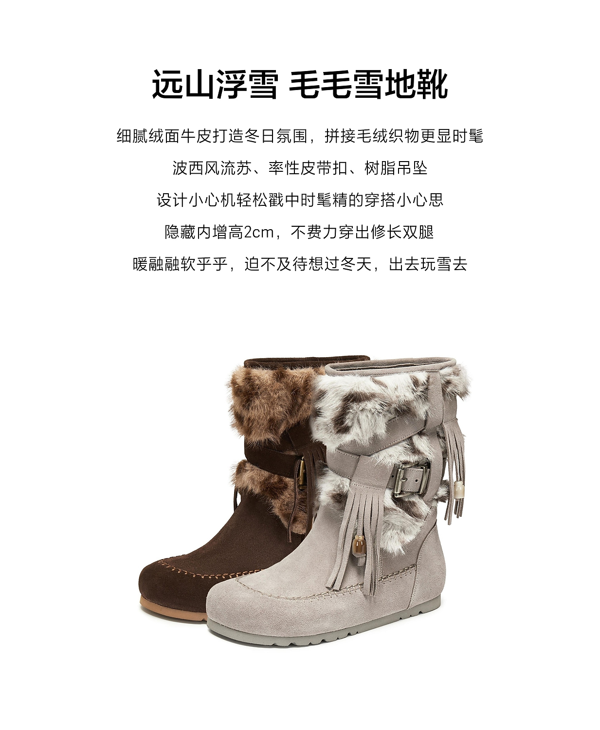 BF楼真美诗远山浮雪2025新冬款牛皮复古波嘻风勃肯毛绒雪地靴女吊牌价2498折后价1898