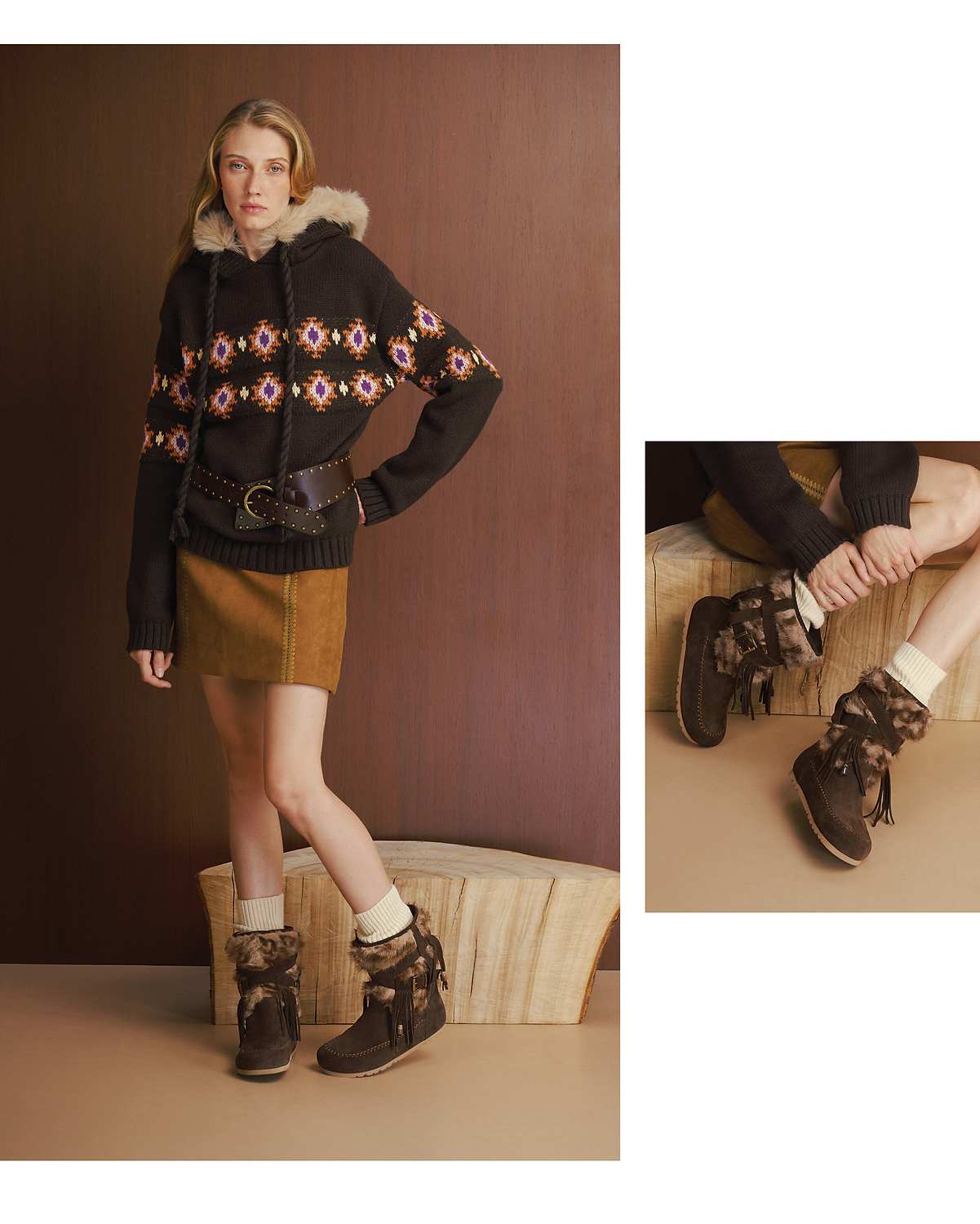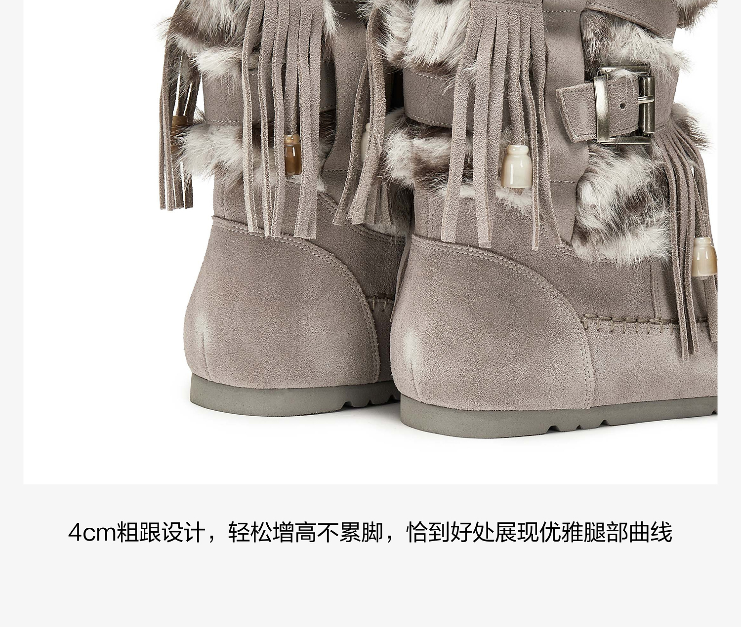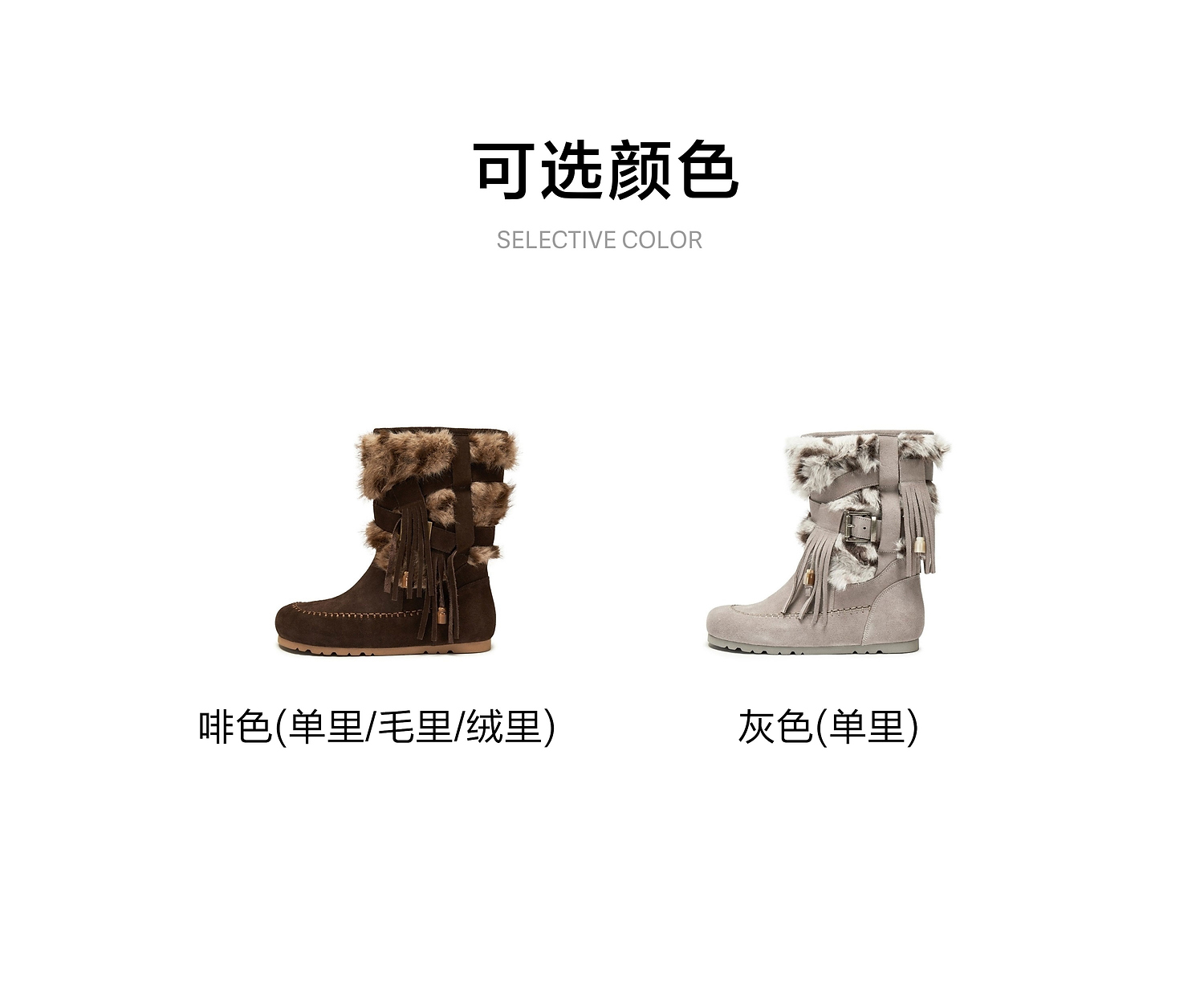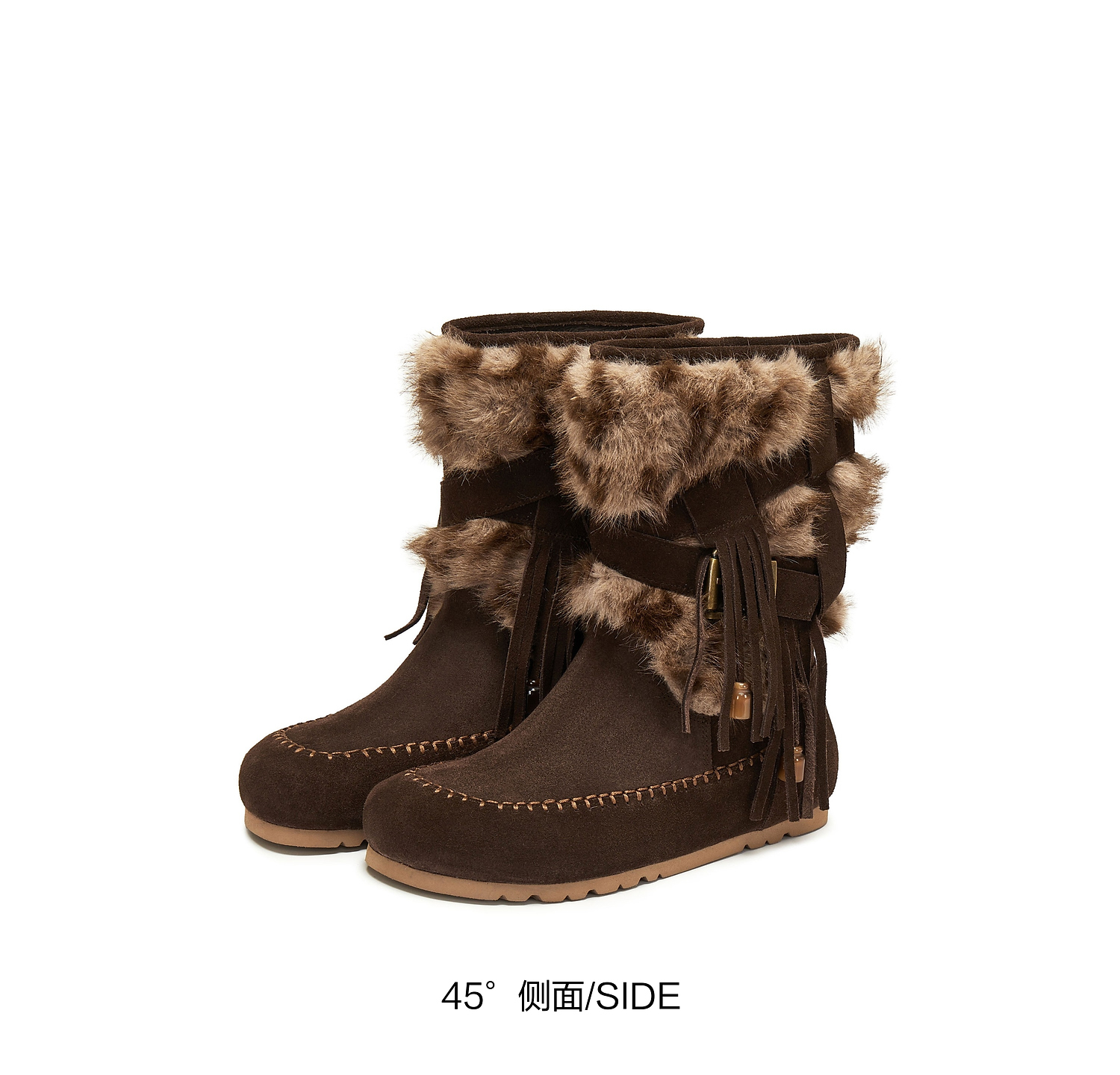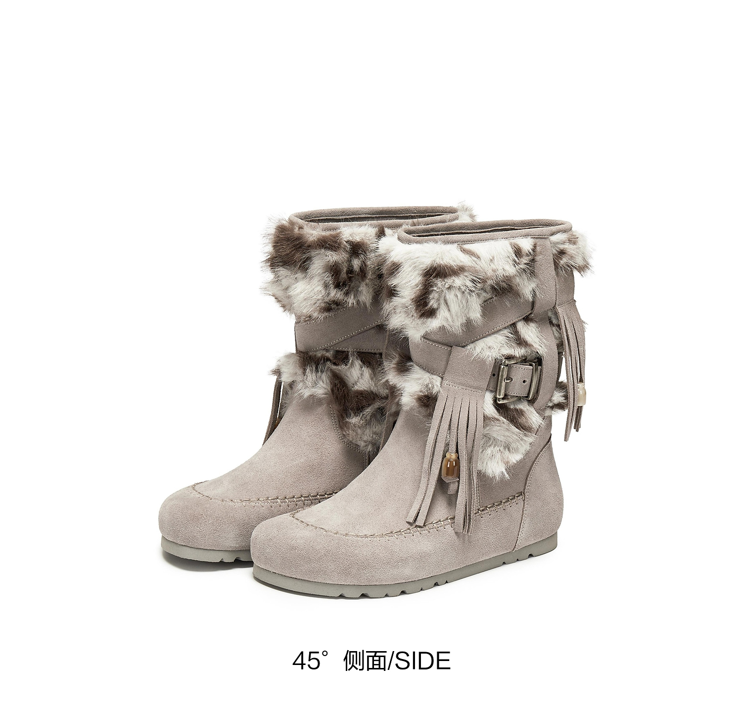 BF楼真美诗远山浮雪2025新冬款牛皮复古波嘻风勃肯毛绒雪地靴女吊牌价2498折后价1898