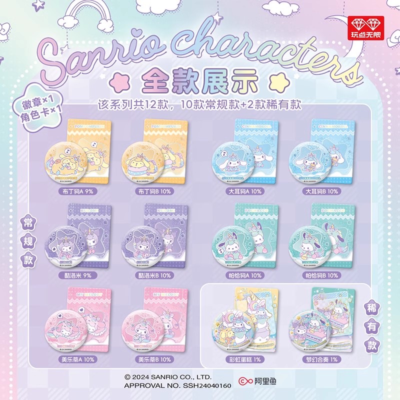 玩点无限 三丽鸥家族 独角兽系列 吧唧 徽章 全12种 10包/盒 国谷