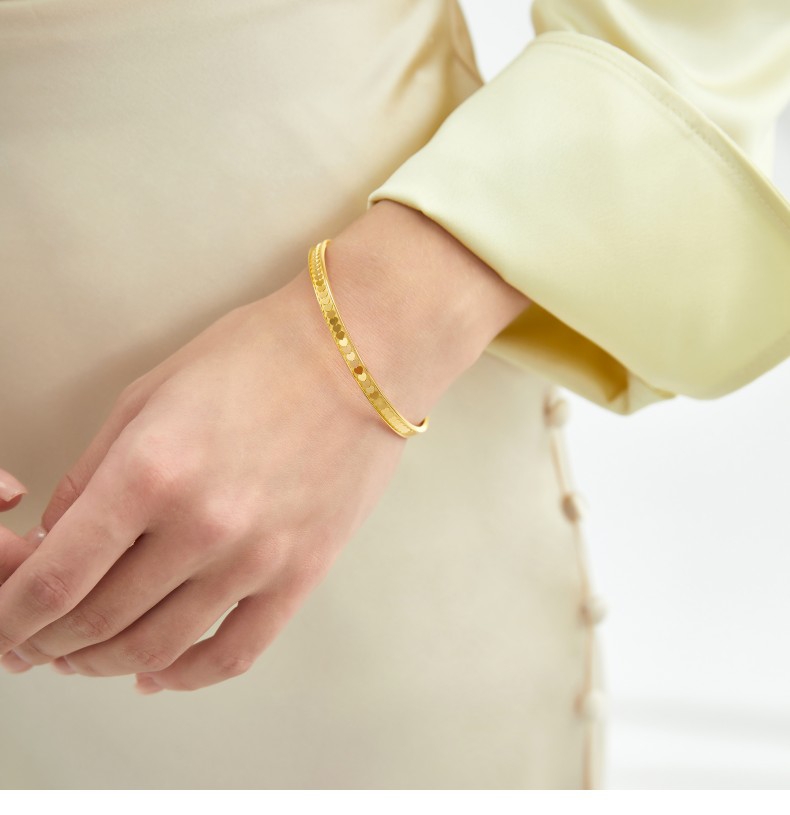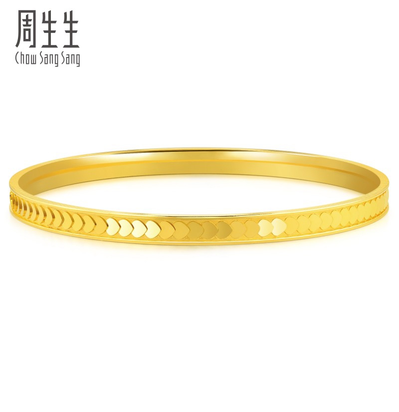 【计价黄金】2楼周生生爱的守护5G黄金足金亮镜金心形鳞片金手镯 约25g左右(价格随每日金价浮动,下单前请咨询客服))