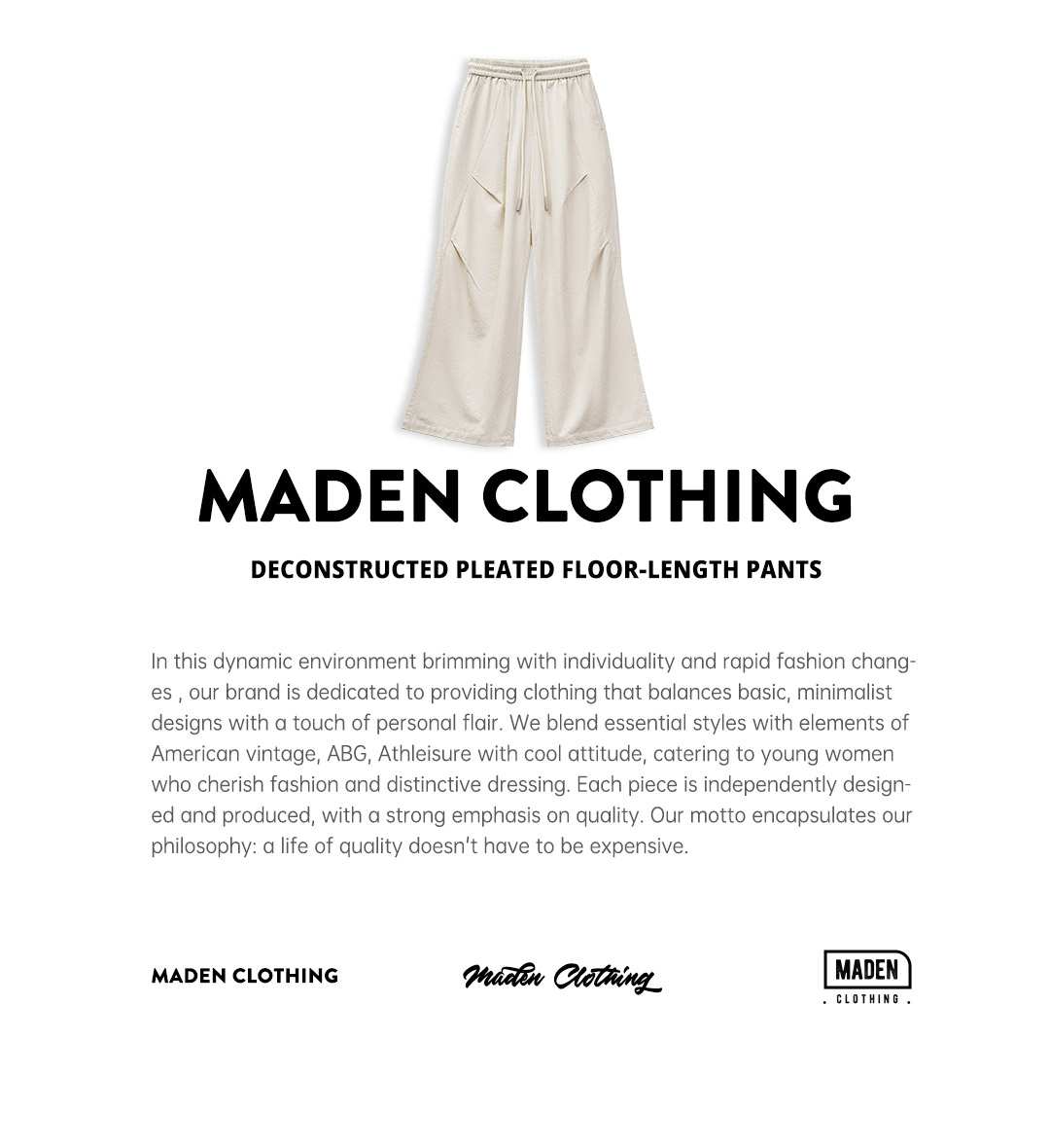 马登解构感cleanfit压褶糯米裤浅春系垂坠感豆腐裤工装拖地卫裤女