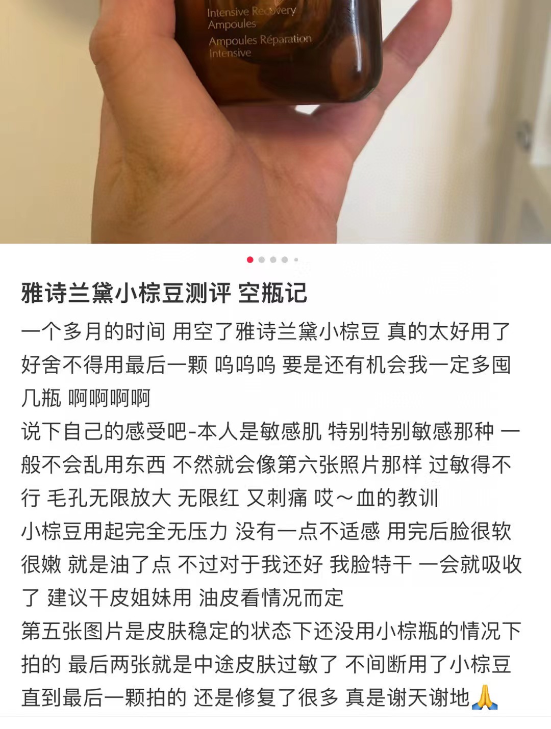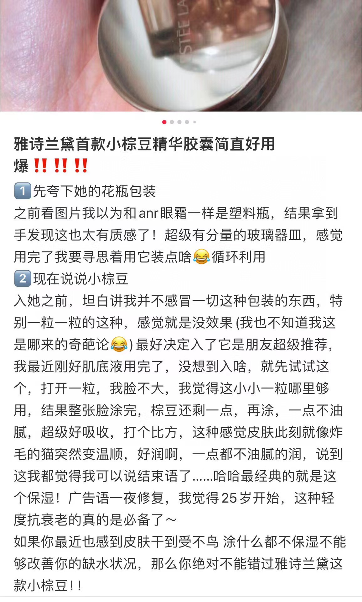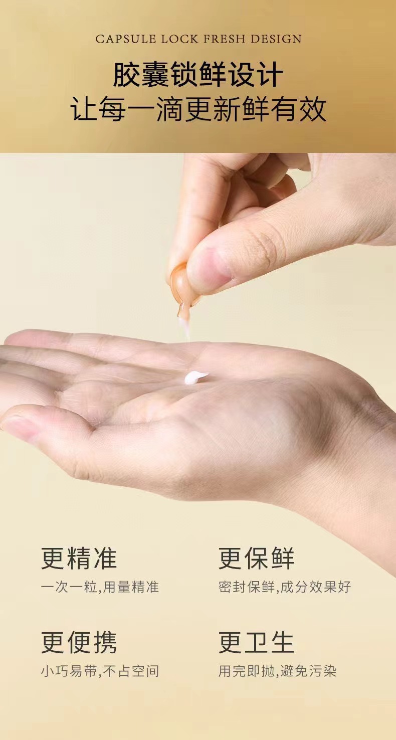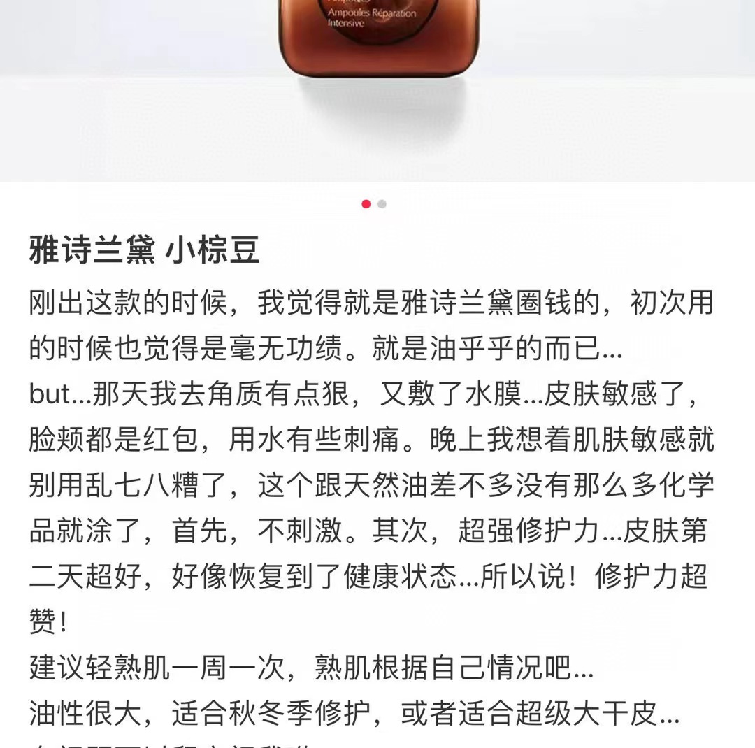 每一粒包含20多种有效活性成分!密集修护,拯救“松垮脸”!短期皮肤急救的神器!对干皮,痘痘肌肤超级友好!晚上洗完脸用效果佳。专柜498的小棕豆胶囊精华液,仅一箱现货非常少,价格天花板,成分是真贵妇霜同级,用几次效果是能看到的~~