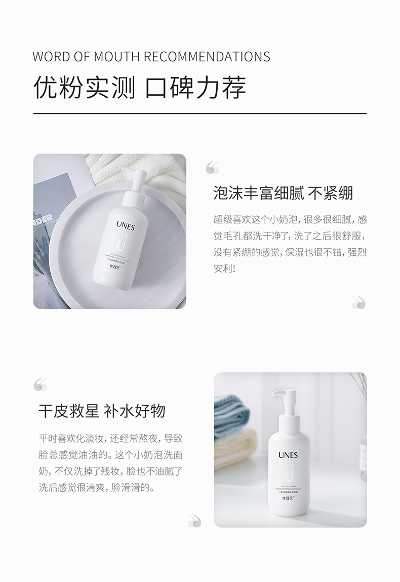 优理氏小奶泡氨基酸洗面奶 深层清洁毛孔 温和洁面 补水保湿