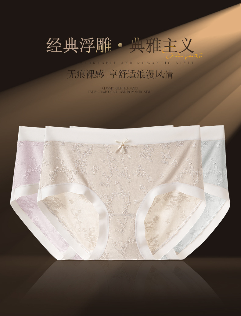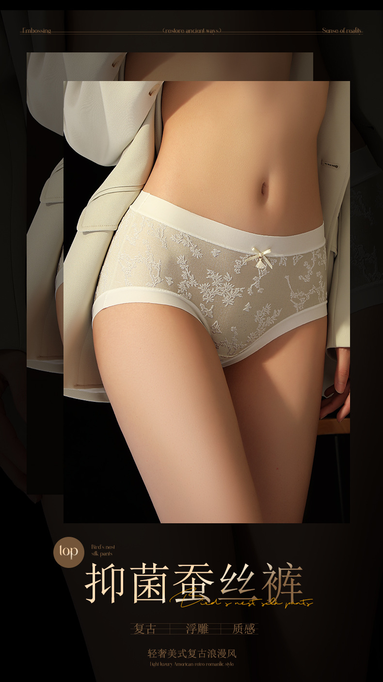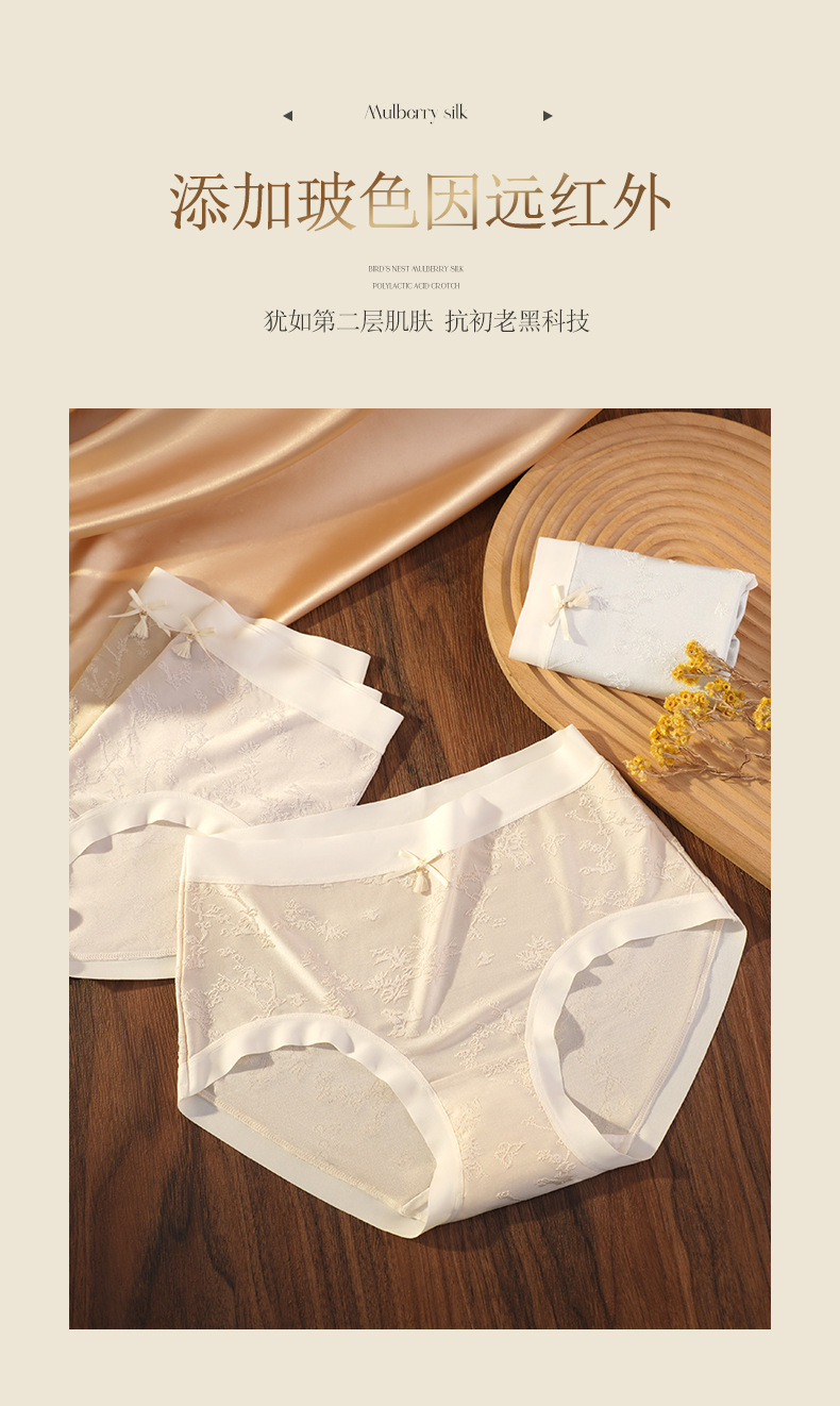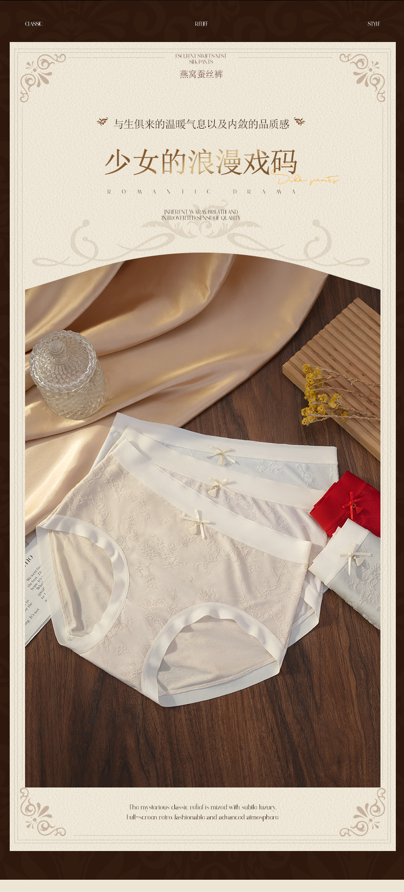【新中式❗️桑蚕丝7A抑菌内裤】轻奢美式复古浪漫风,无痕裸感,原创浮雕新款中腰无痕裸感包臀女士三角