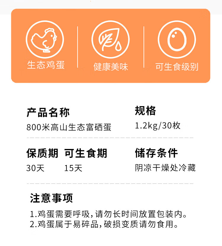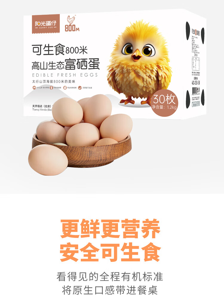 阳光蛋仔无菌蛋 含叶黄素DHA硒元素 800米高山生态 可生食生态富硒蛋30枚