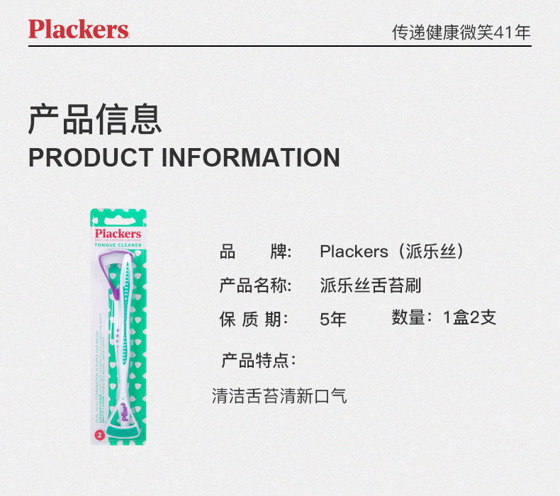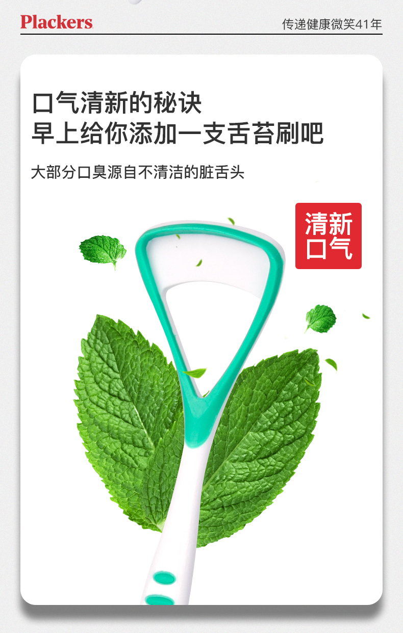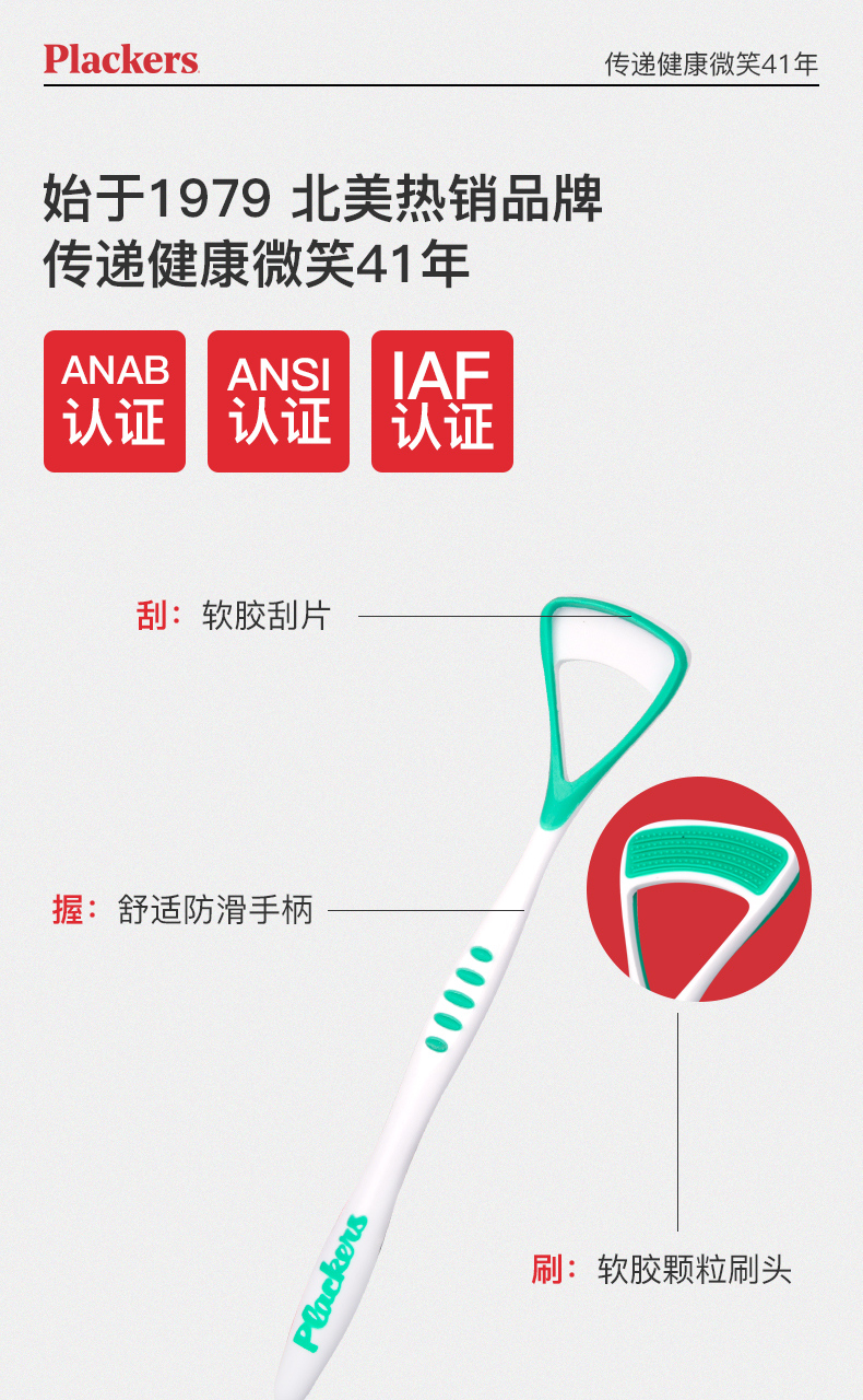 【品牌直发】包邮!Plackers派乐丝舌苔清洁器 美国进口 双面2支装刮舌器
