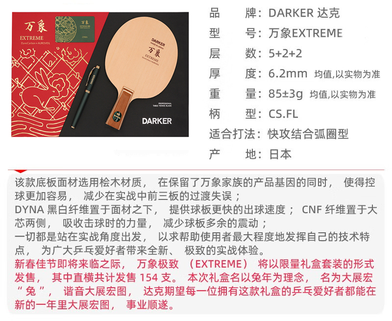 【精选礼盒装】Darker达克万象极致兔年限定乒乓球拍底板外置5+2结构内赠纪念钢笔