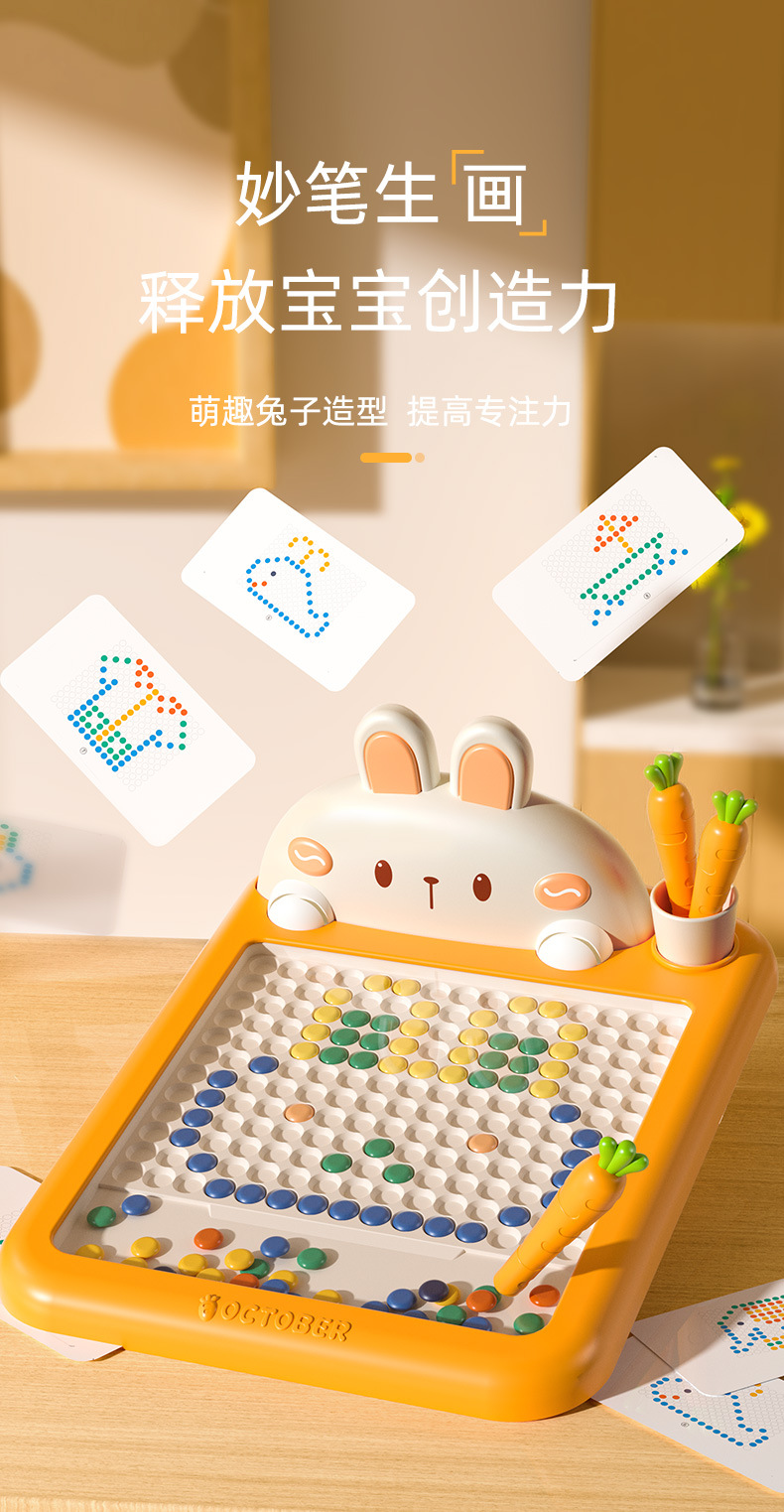 【提高专注力!兔子磁力画板】儿童磁性运笔画板,宝宝婴幼儿早教磁力磁石画画板,幼儿磁吸益智玩具-QQ