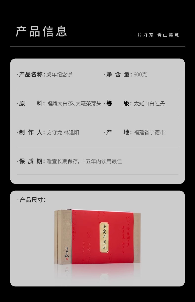 方守龙 2022年虎年纪念饼600g礼盒装福鼎白茶[官方旗舰店正品直供]
