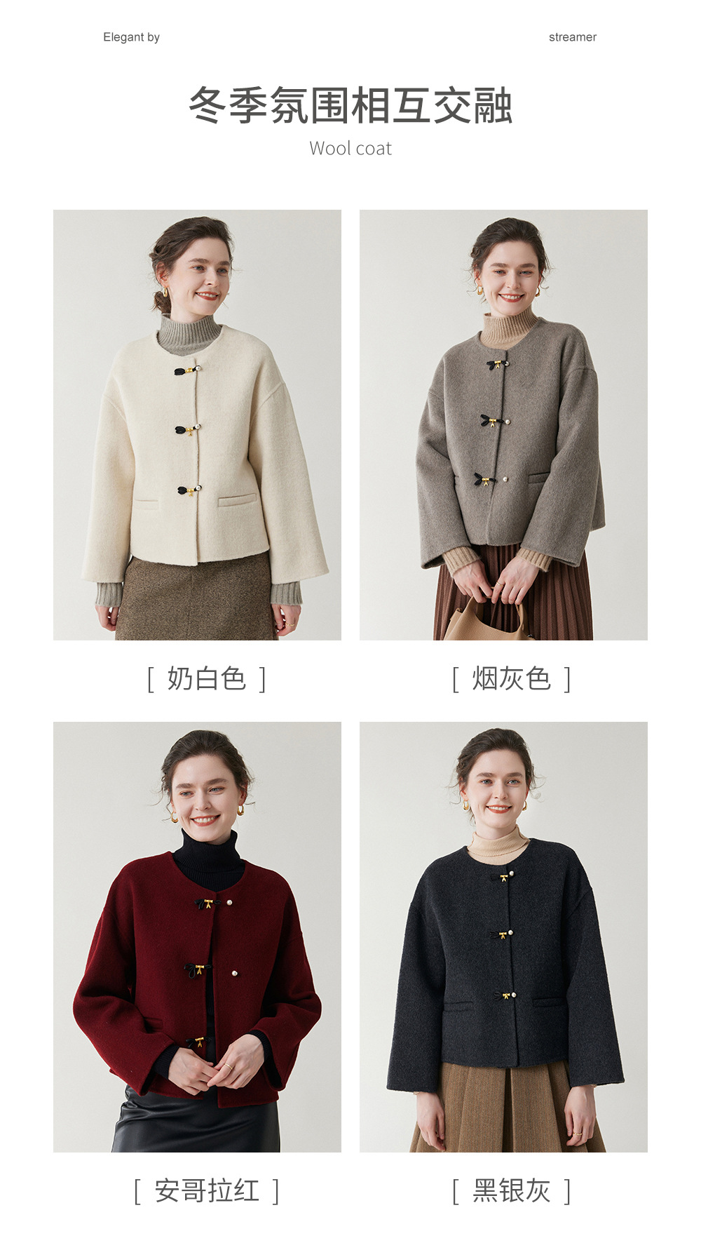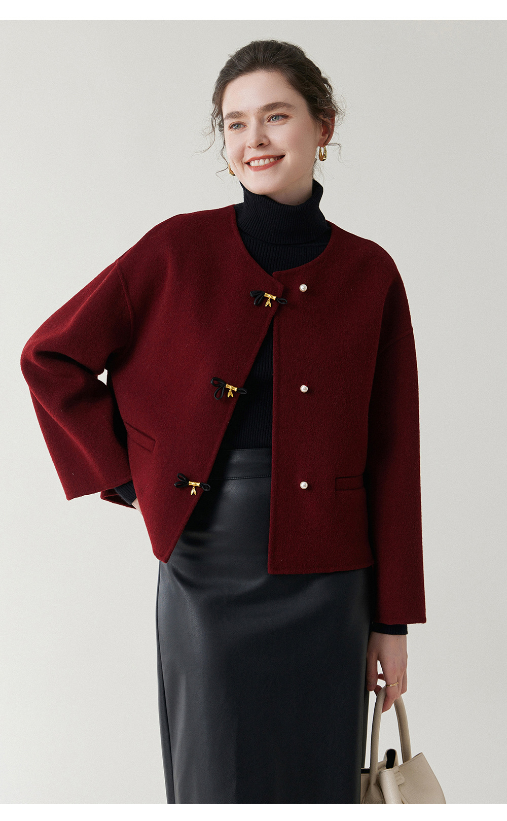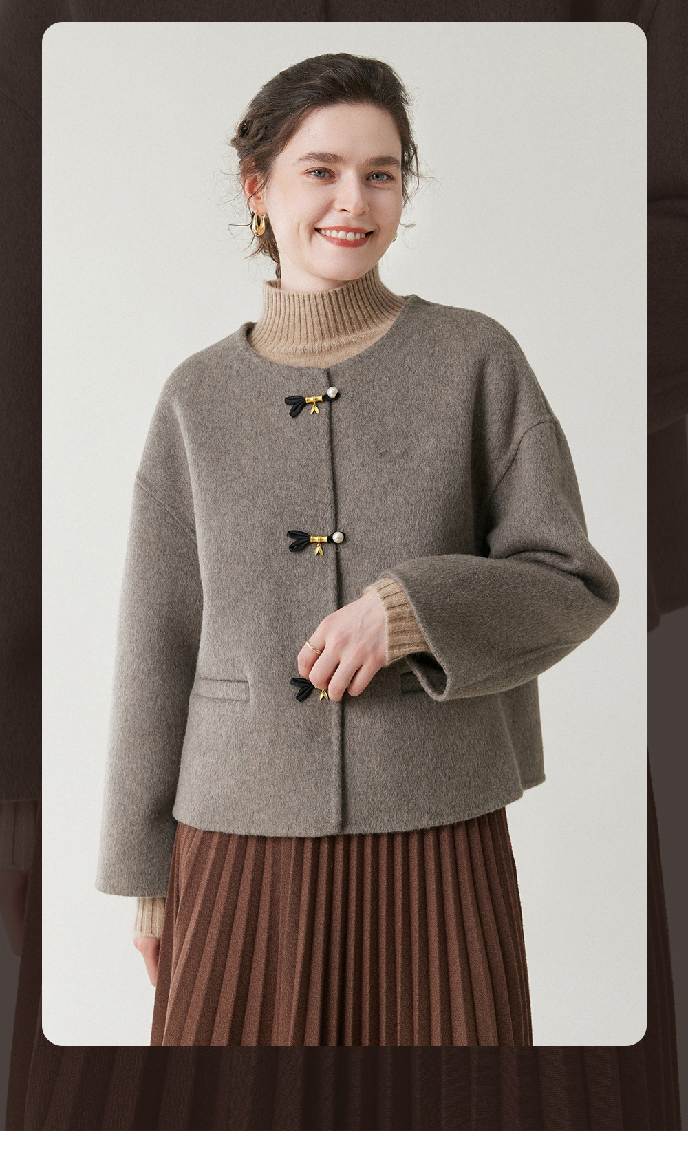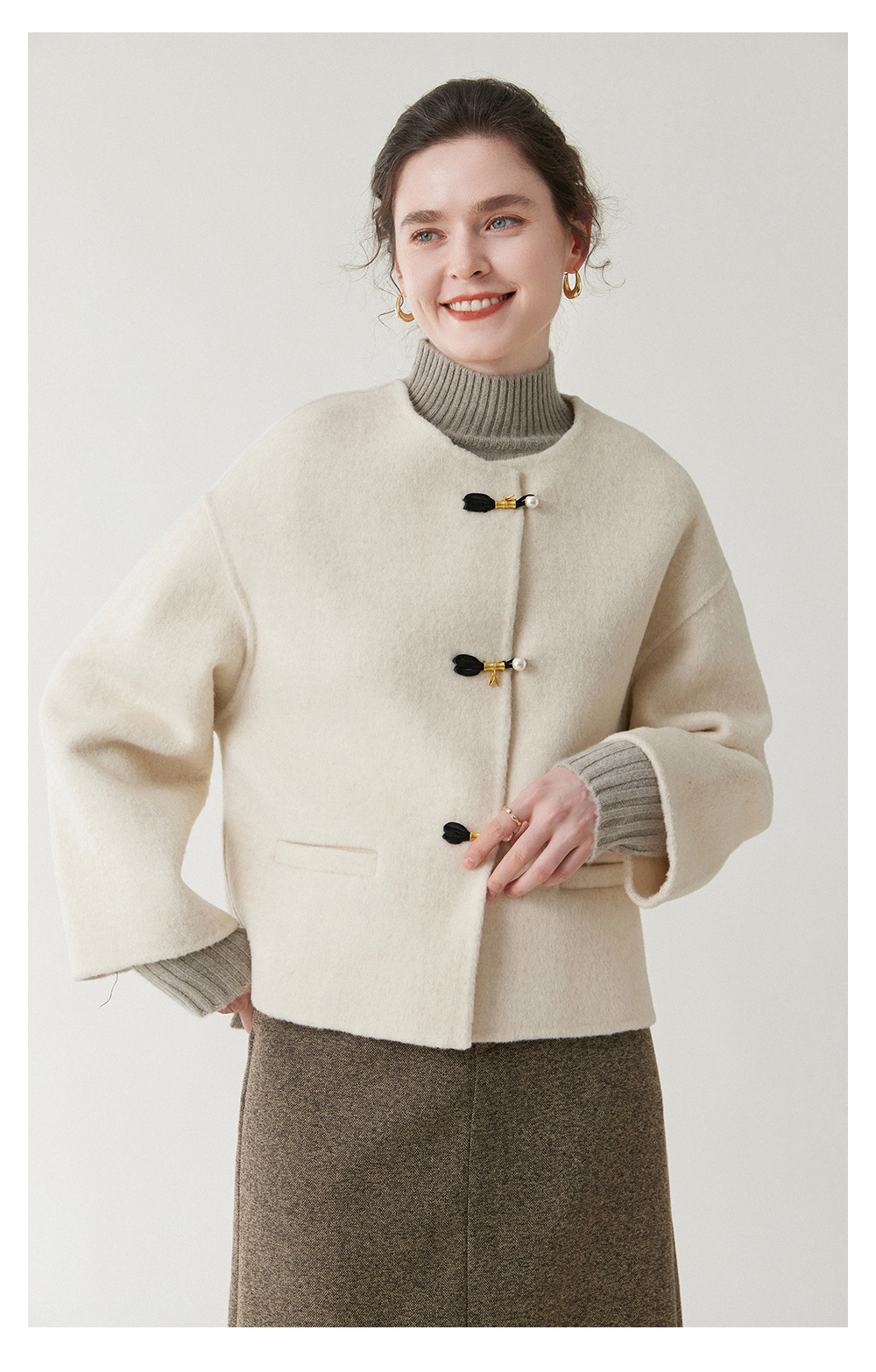 丁摩 新中式短款纯羊毛呢子外套轻奢毛呢上衣秋冬双面呢羊绒大衣5ZF-12226