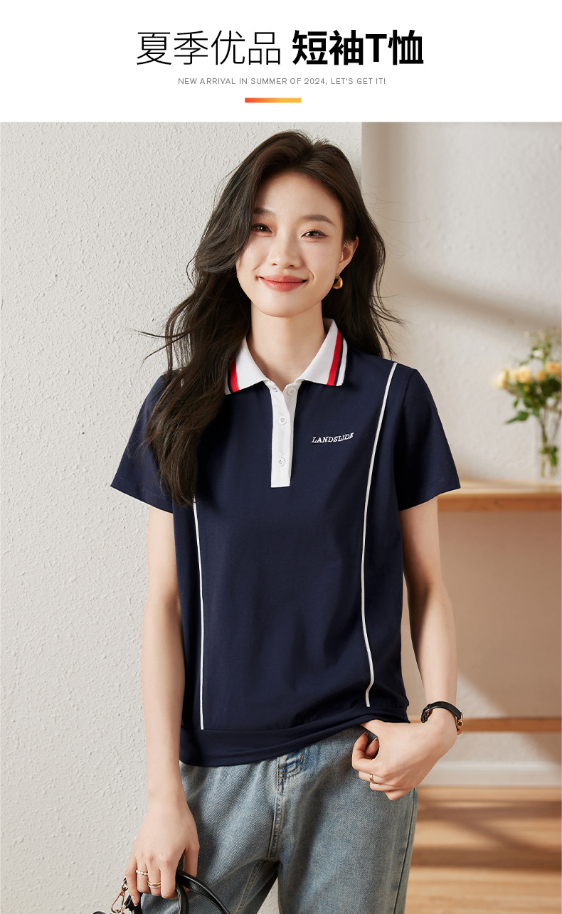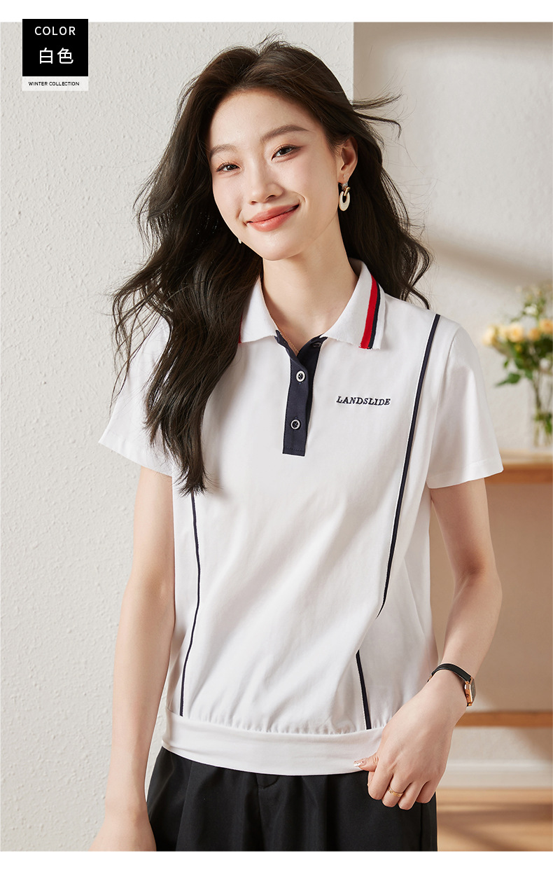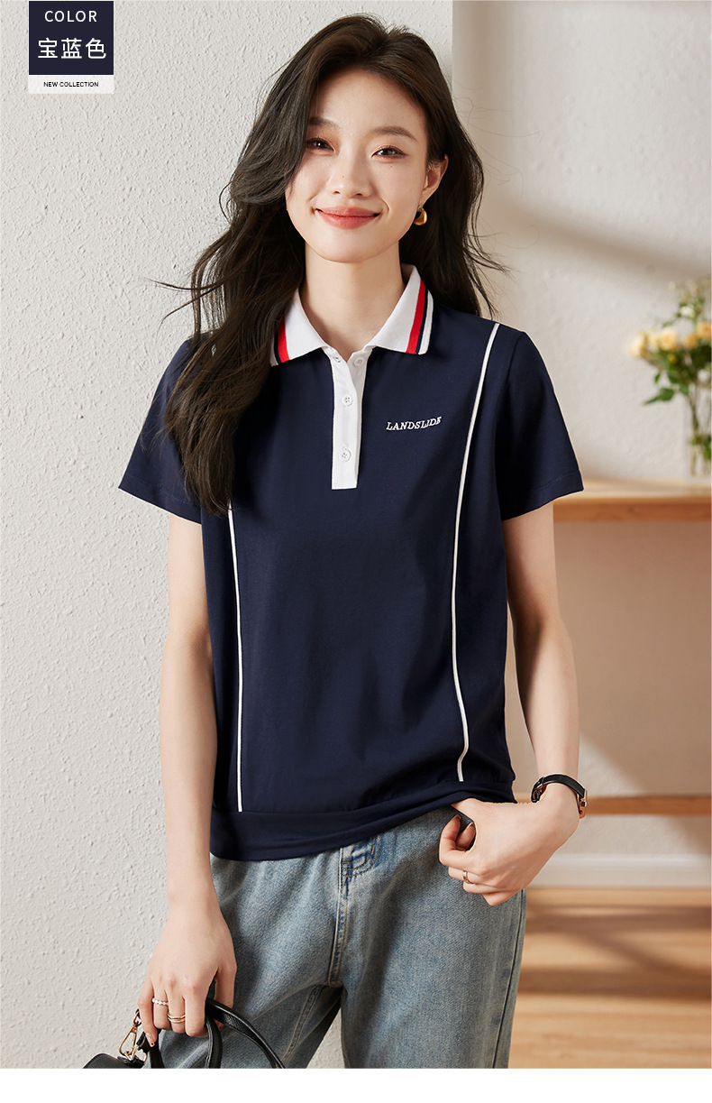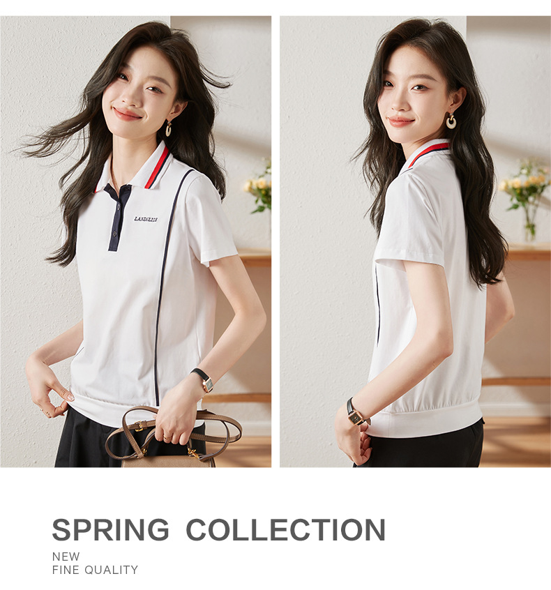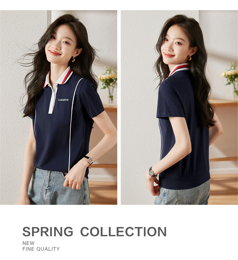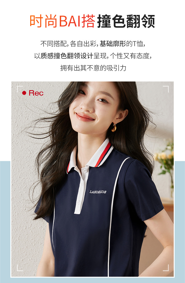 雀说翻领撞色短袖t恤新款宽松高端polo衫有领上衣半袖体恤AL20008