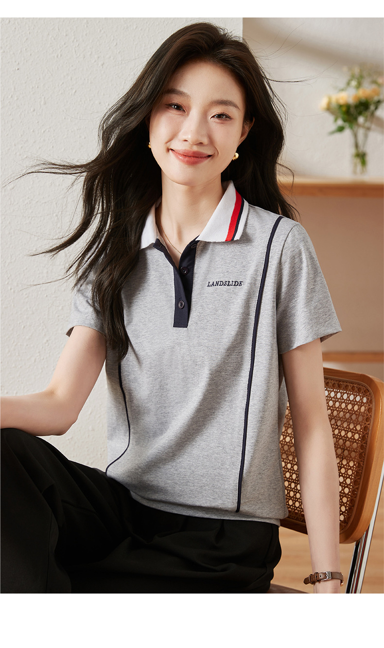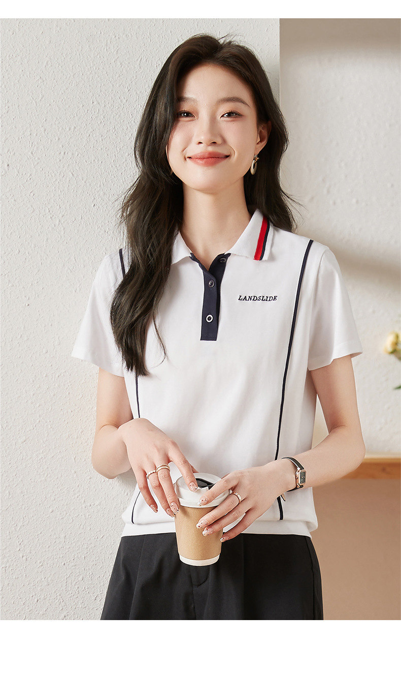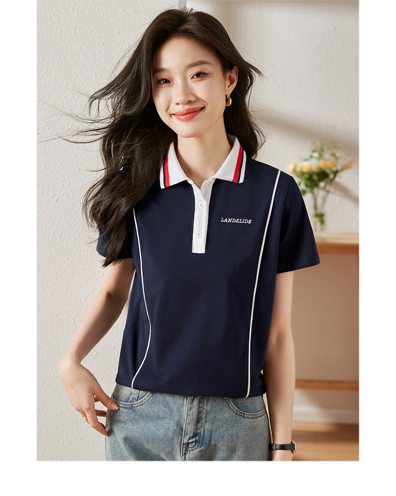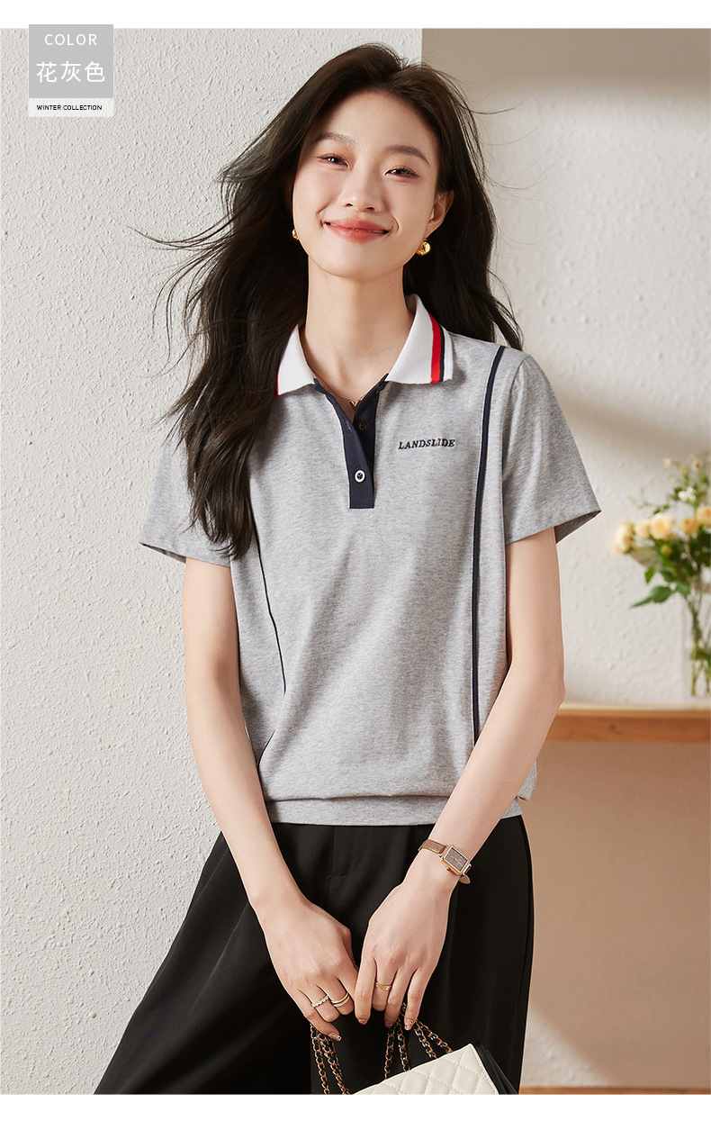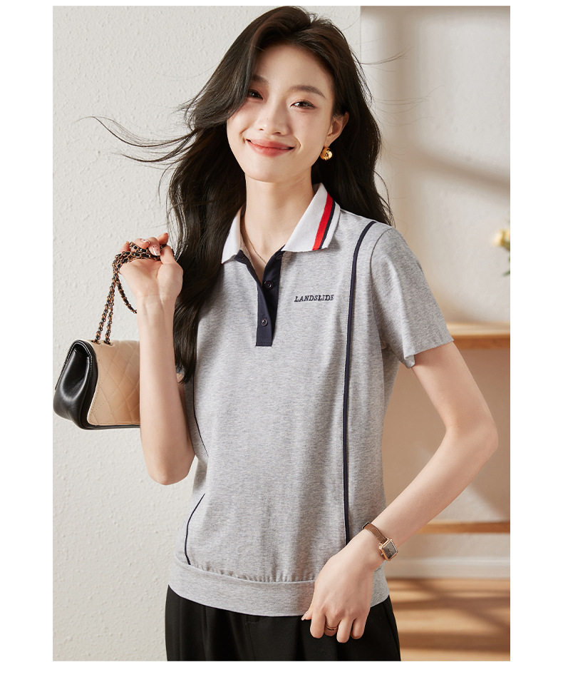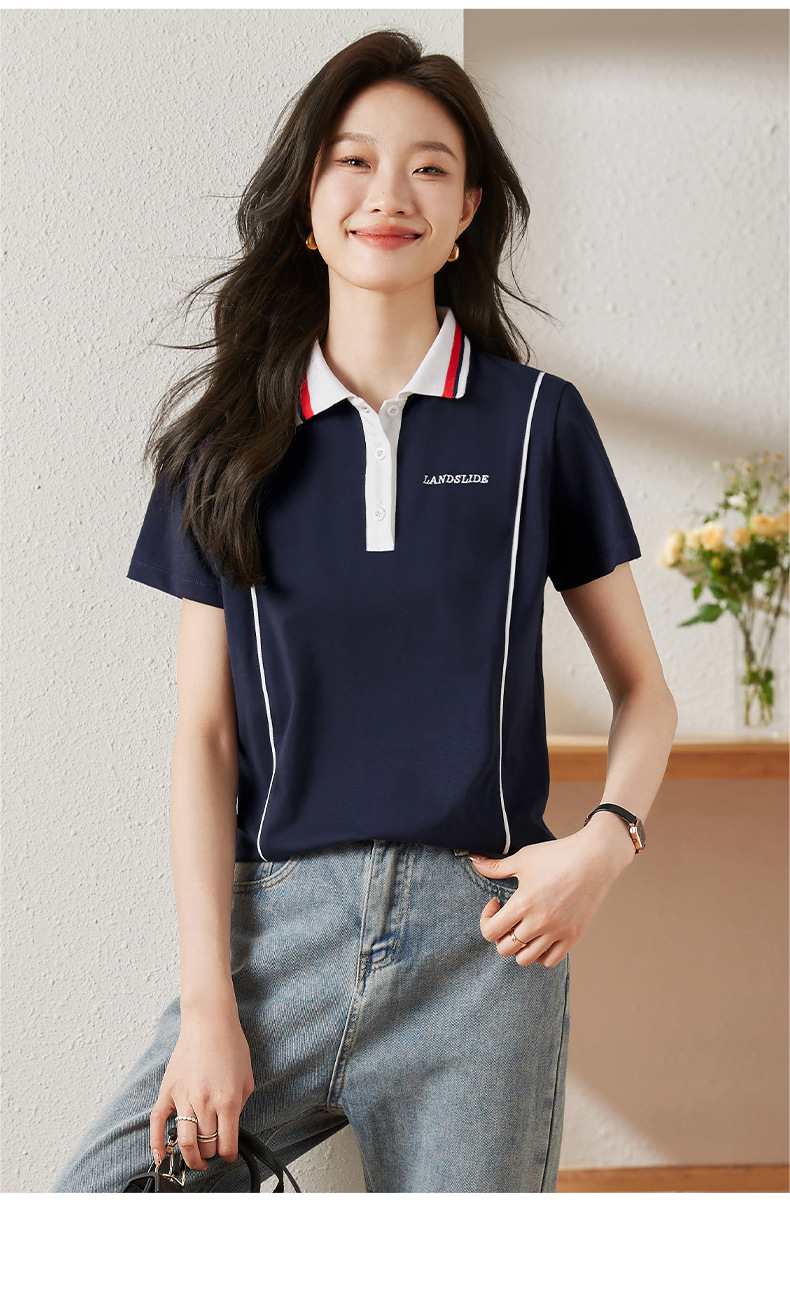 雀说翻领撞色短袖t恤新款宽松高端polo衫有领上衣半袖体恤AL20008