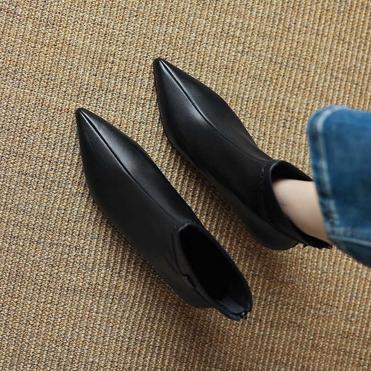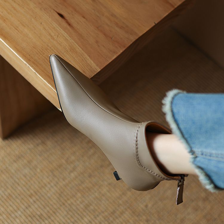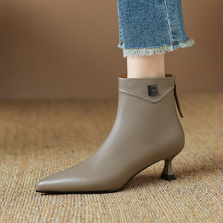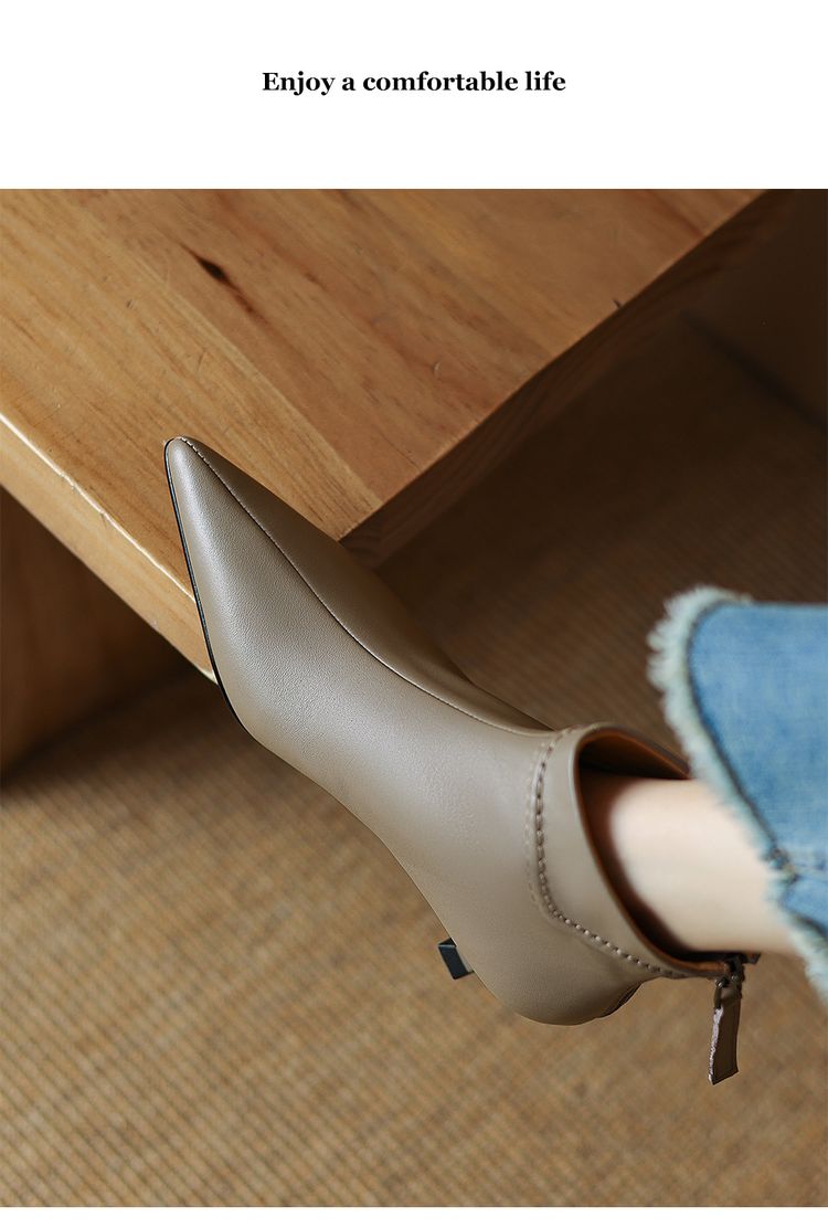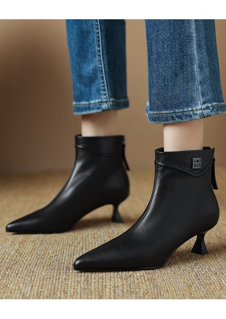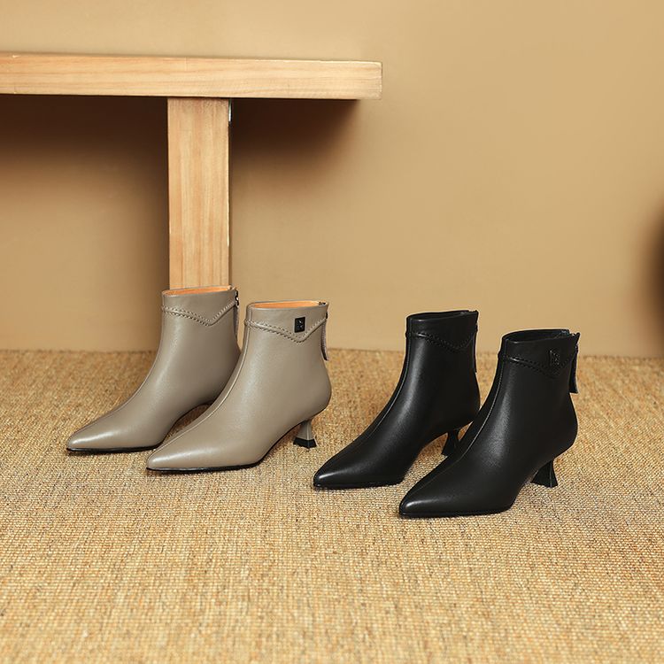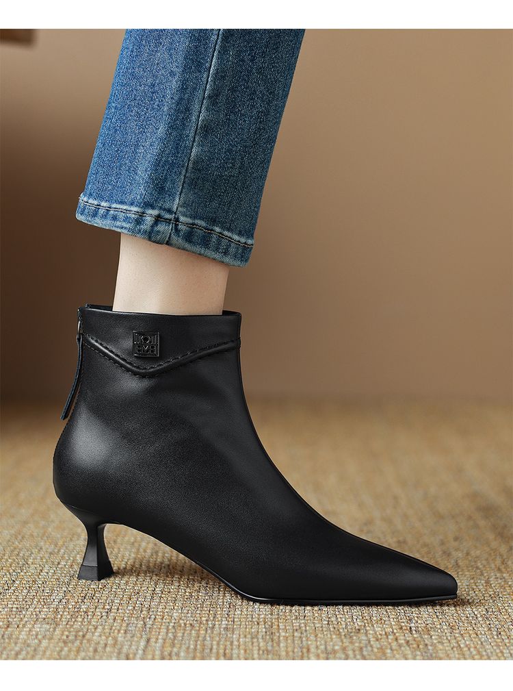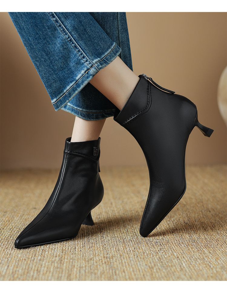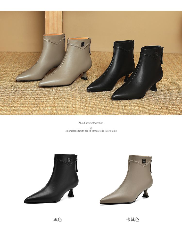 【预售5天】头层牛皮5cm小猫跟短靴秋冬季里外全皮时尚细跟真皮女靴ZF&24-269