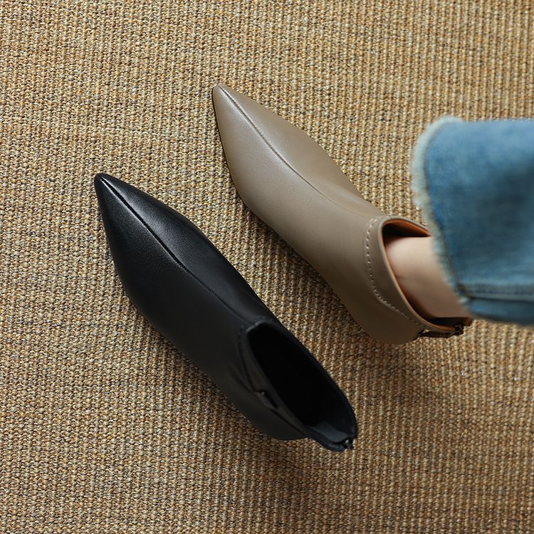 【预售5天】尖头单靴女粗跟棕色短靴高跟马丁靴PLGZ&B1945