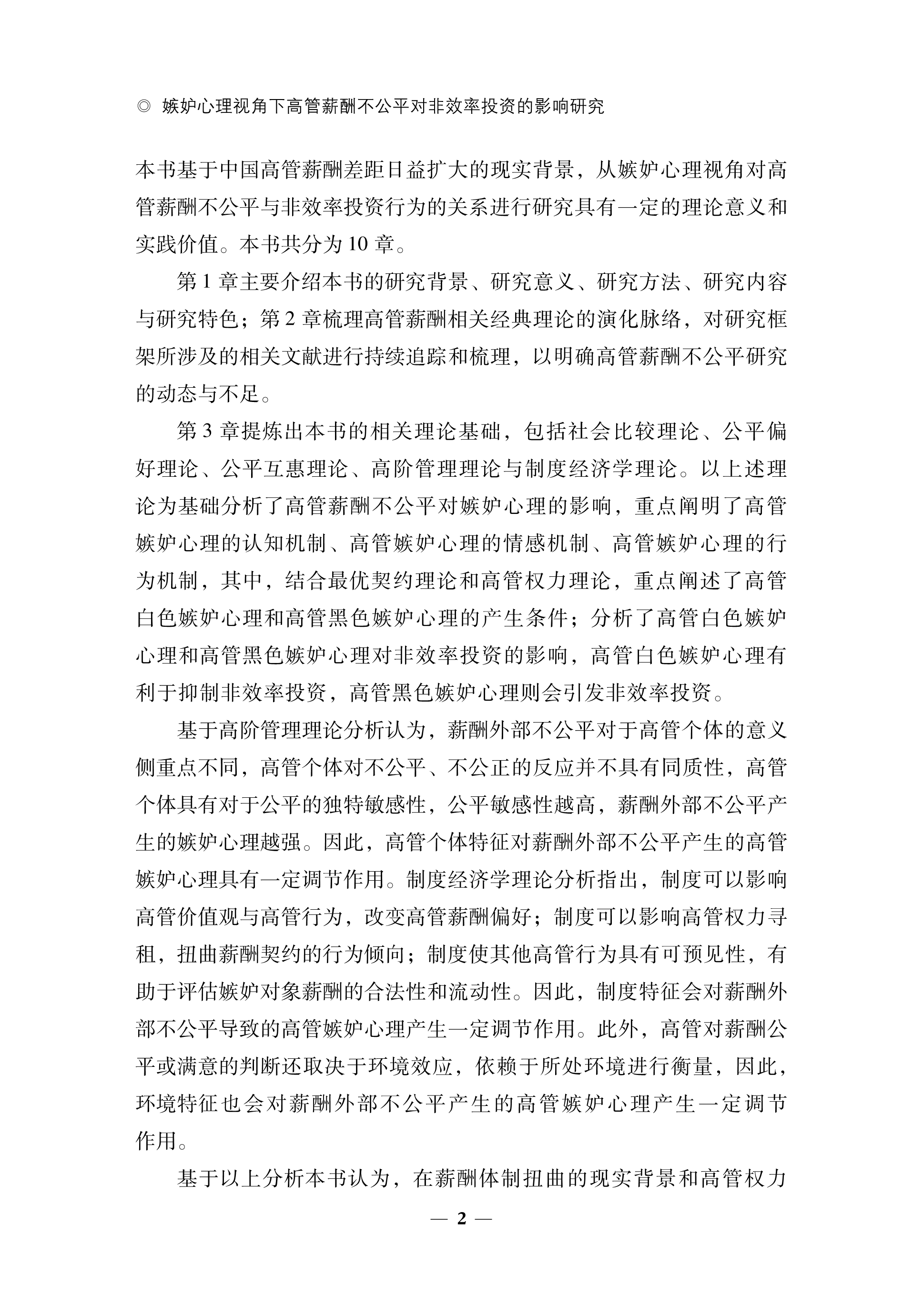 嫉妒心理视角下高管薪酬不公平对非效率投资的影响研究