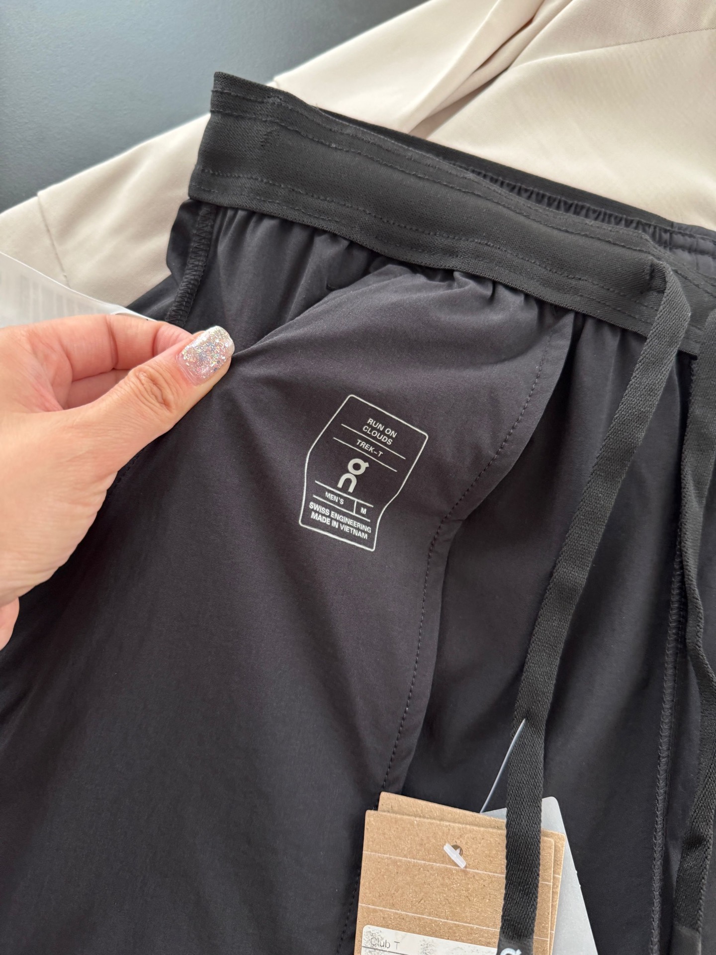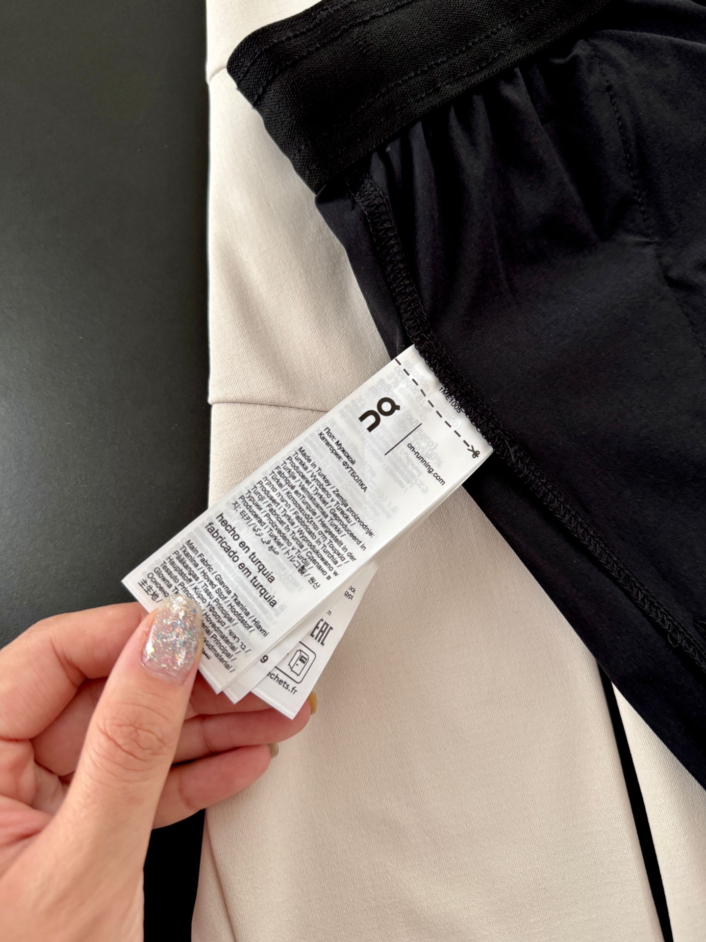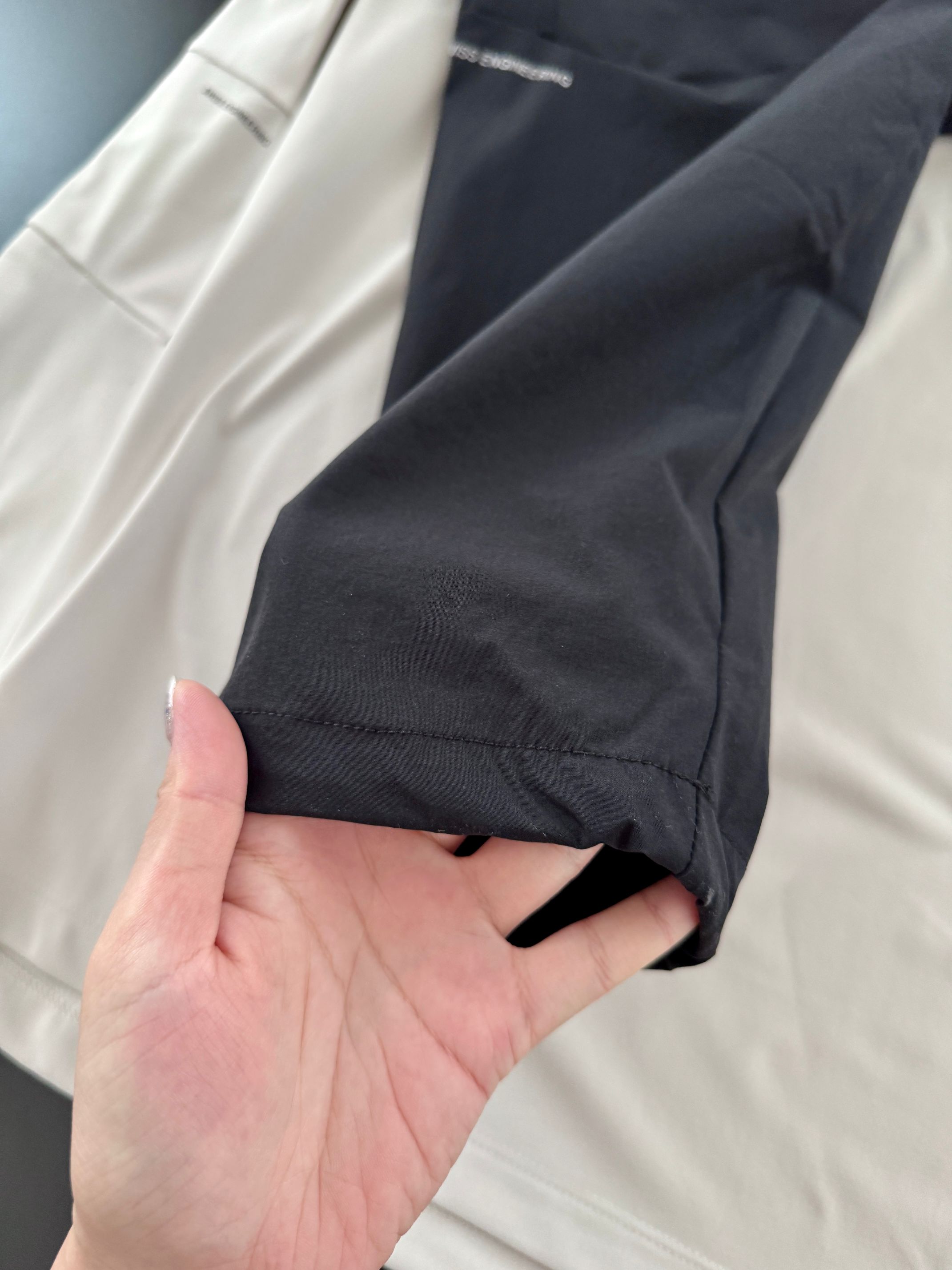 内里细节针脚细腻,没有任何多余的线头。口袋和裤脚都有品牌logo的胶印,不易开裂。