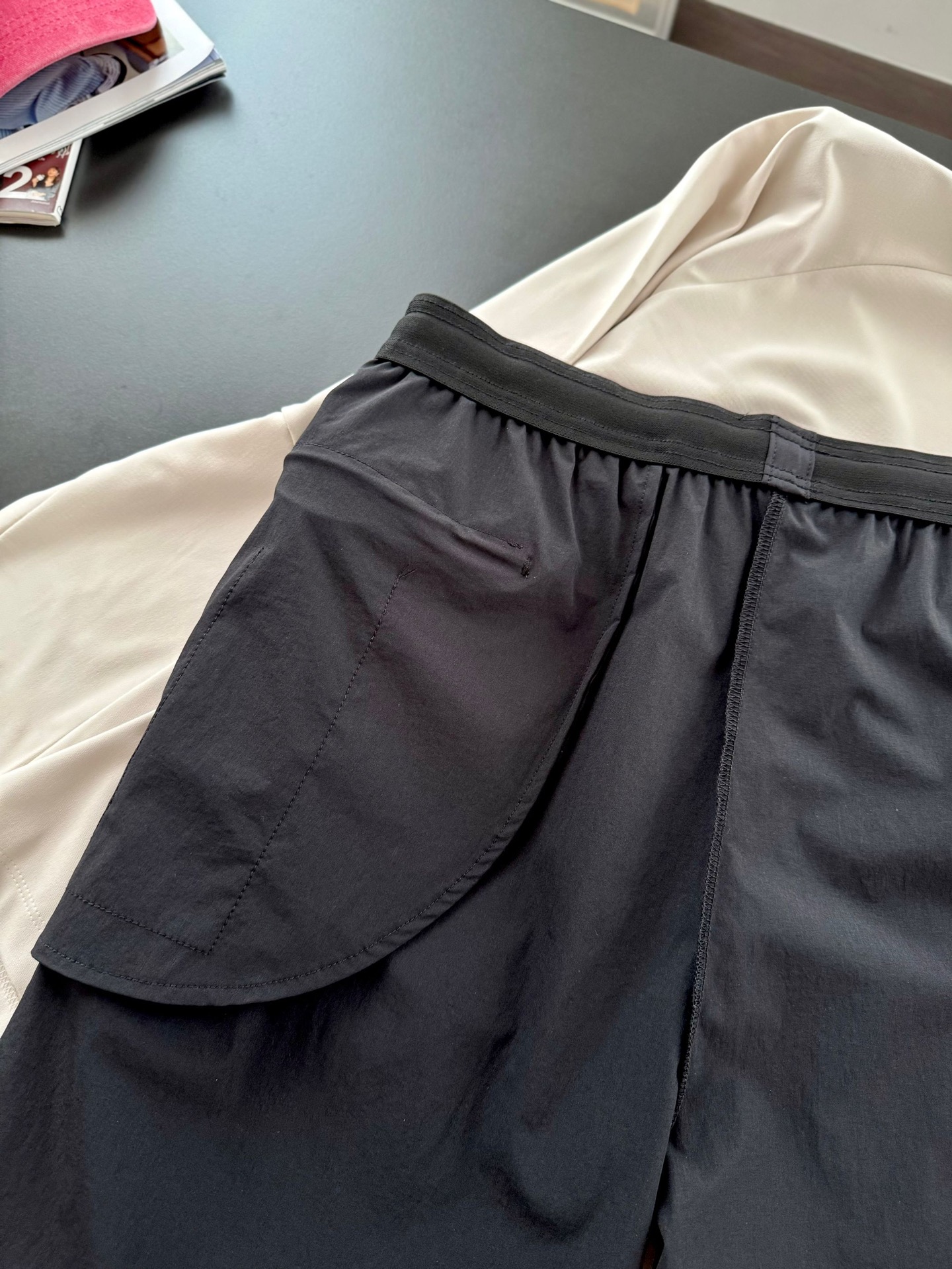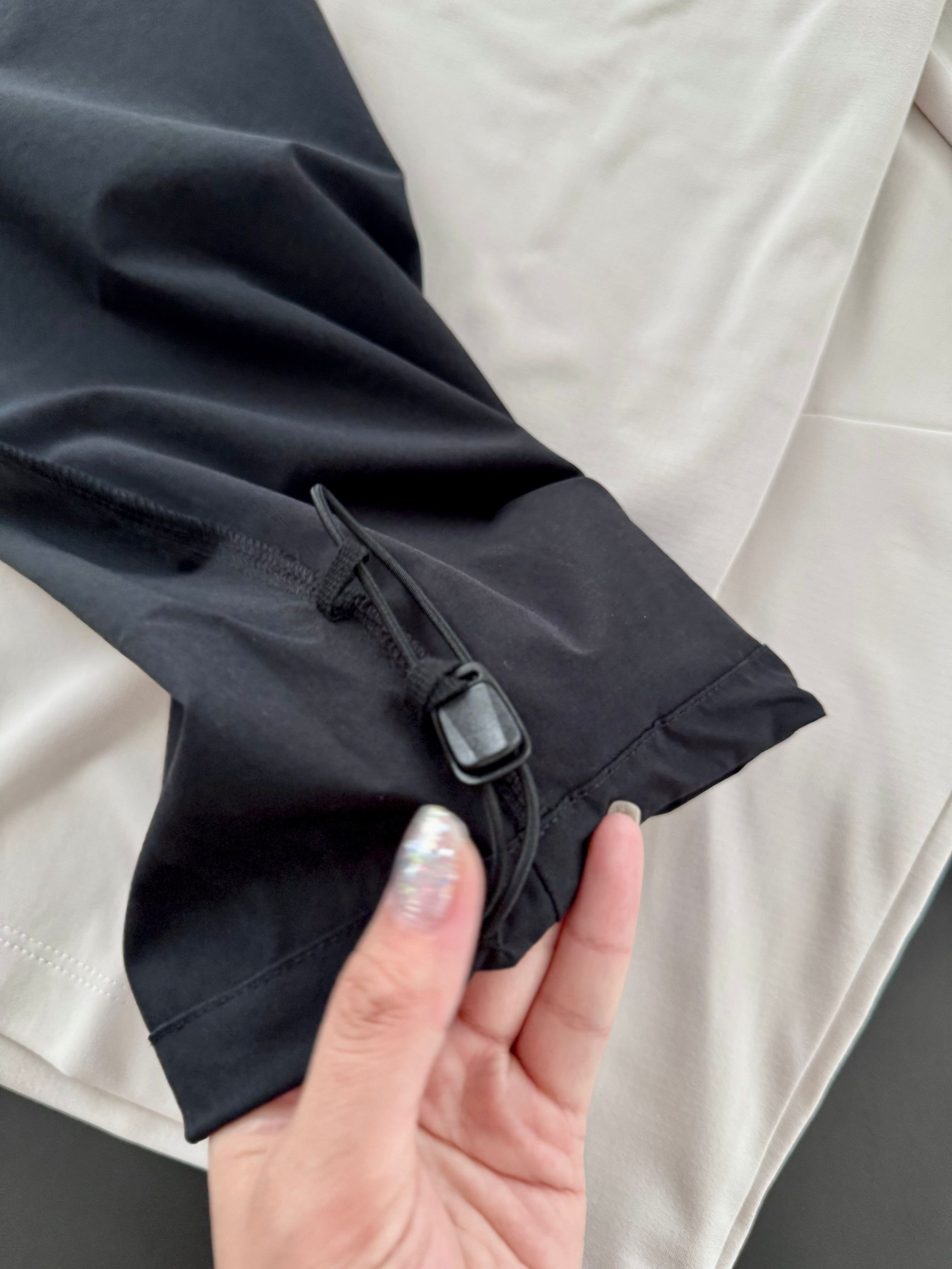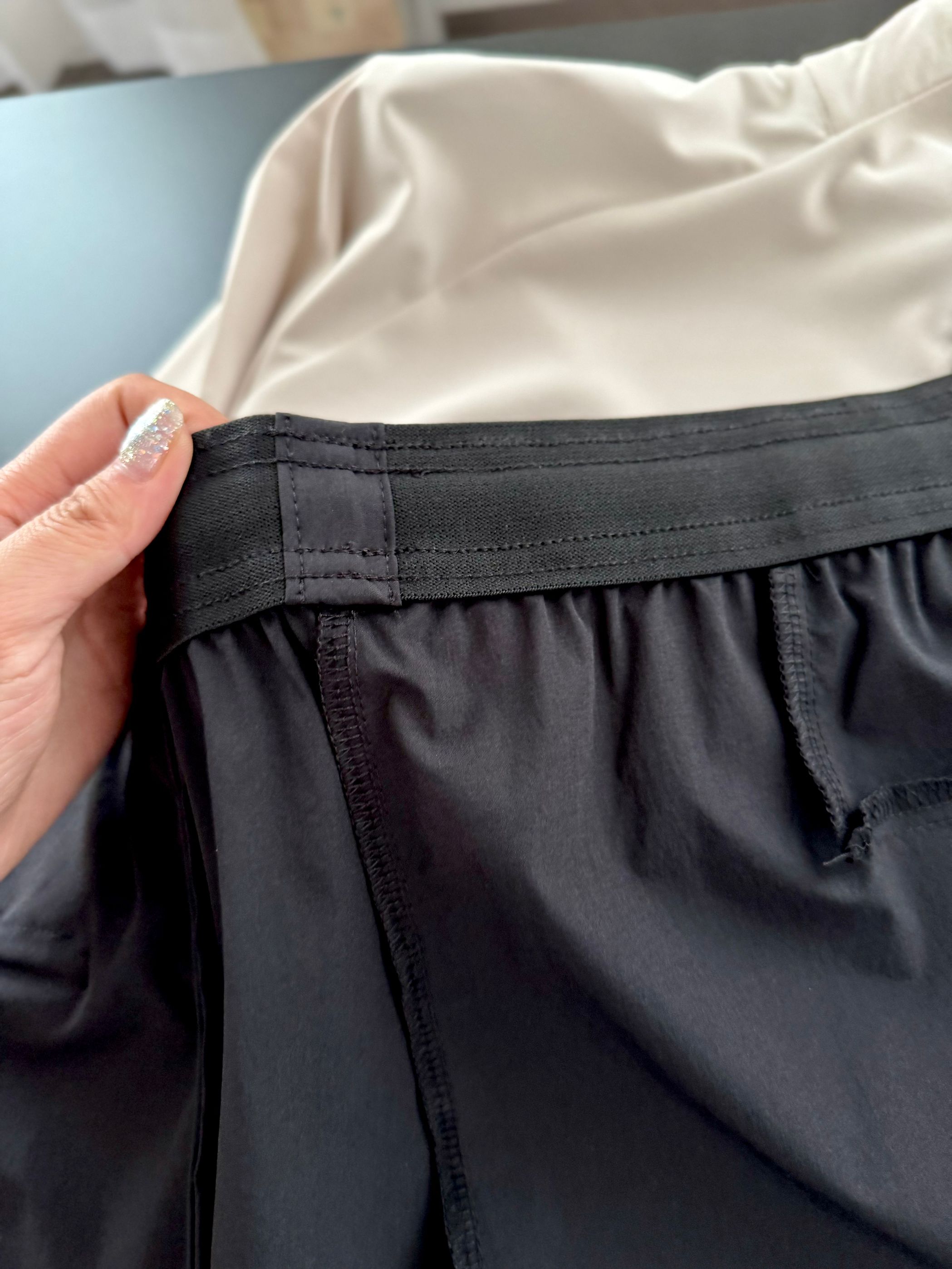 ⚠️ 进口弹力速干梭织面料,触感柔软弹力十足!自带亲肤肌理感,舒适性绝对不是普通梭织可以比的!舒适度很高,还不发硬,面料带有四向弹的特性,运动不局促不紧绷,透气排出汗汽,时刻保持体感干爽不粘身!穿了才知道有多舒服,会是你离不开的神裤!