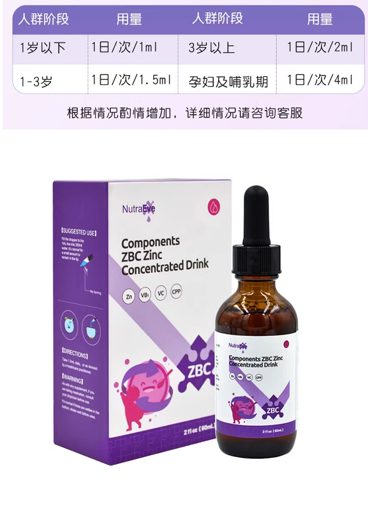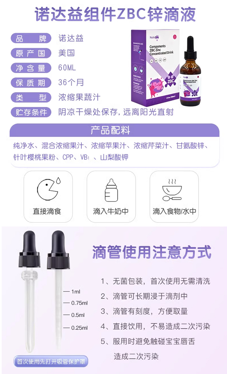 诺达益组件锌(ZBC)滴剂维B1维C配方60ml