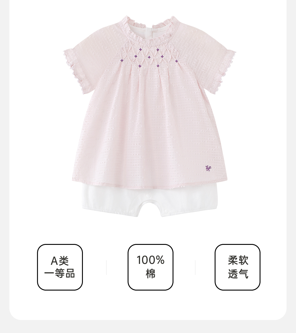 【商场同款】英氏婴儿衣服夏季透气女宝连体衣可爱假两件裙子哈衣
