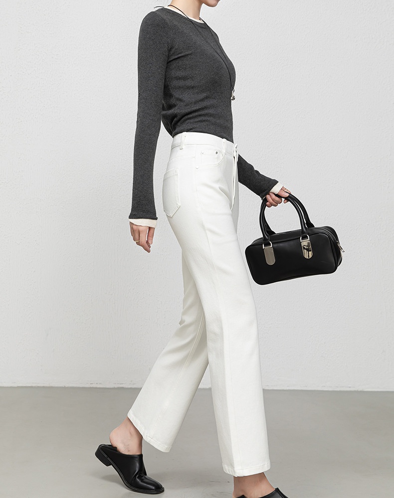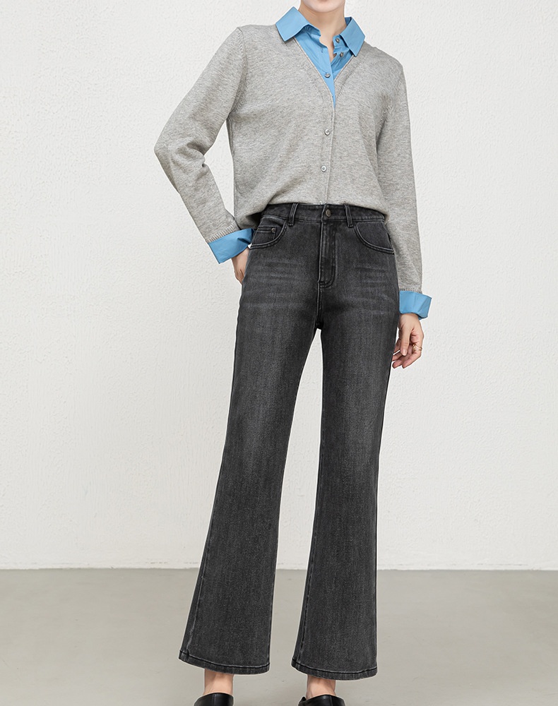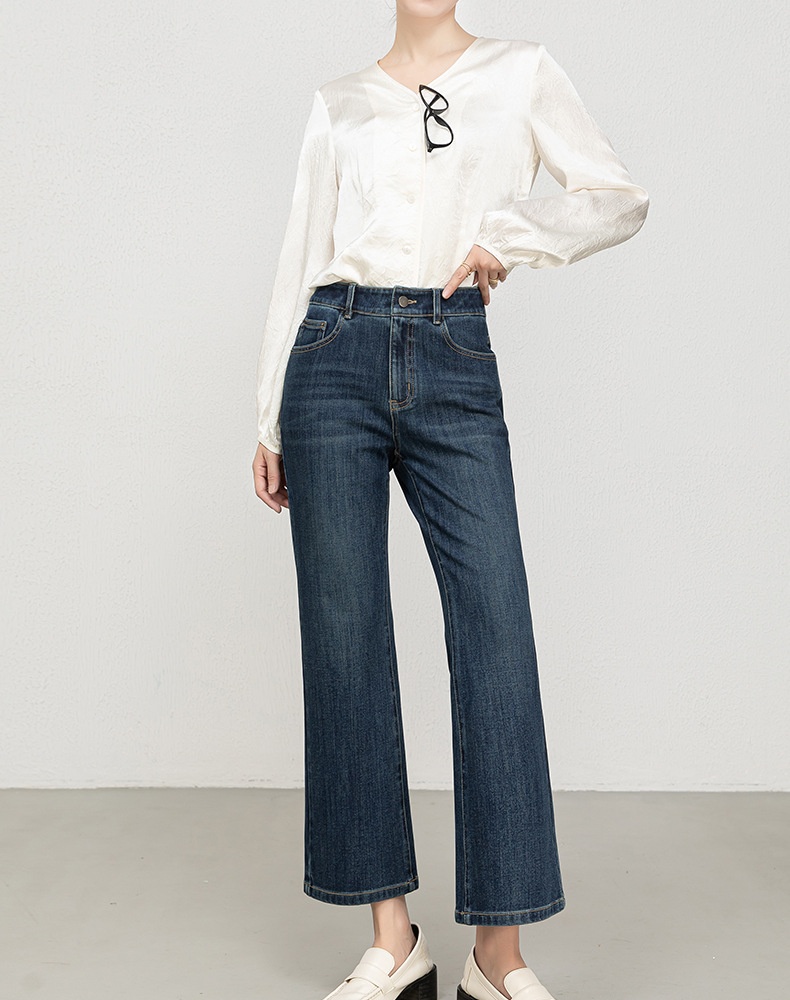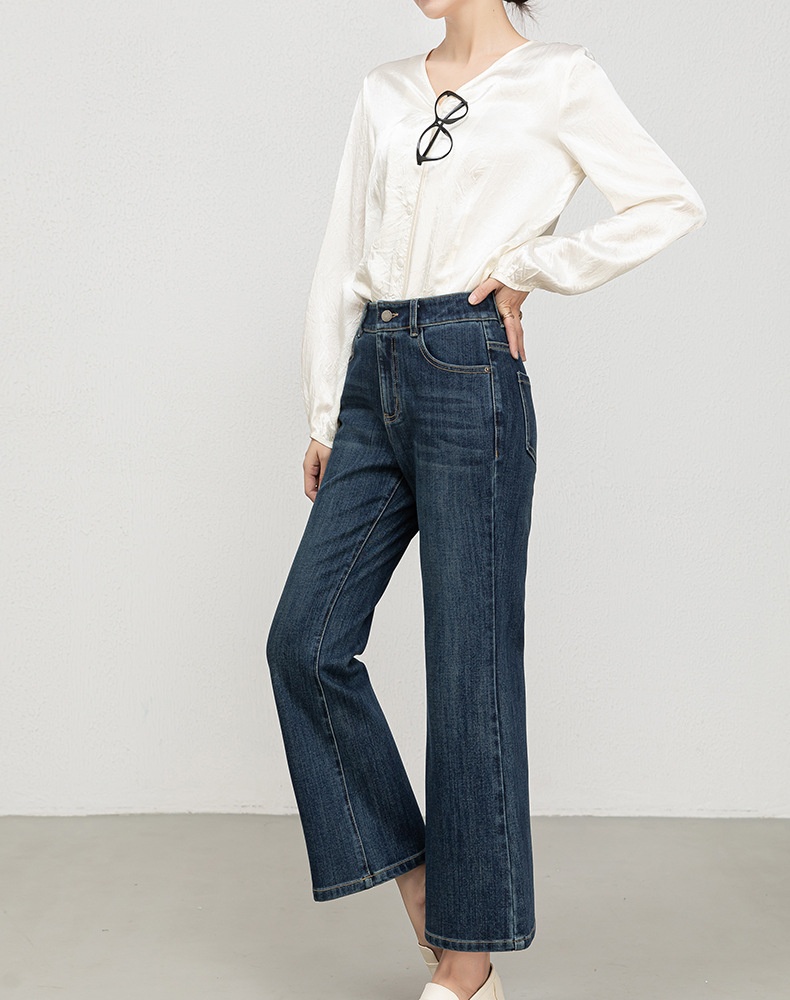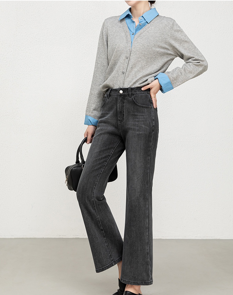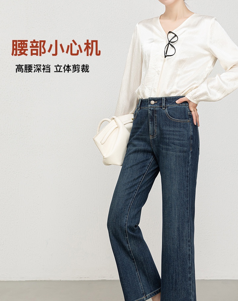 「高货rg」全新升级【铂金会员192/天猫259/差价67】(45518)洛诗琳百搭高腰微喇牛仔裤2025秋季新款四面弹显瘦九分裤
