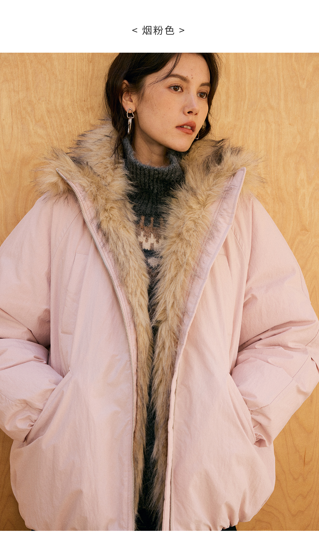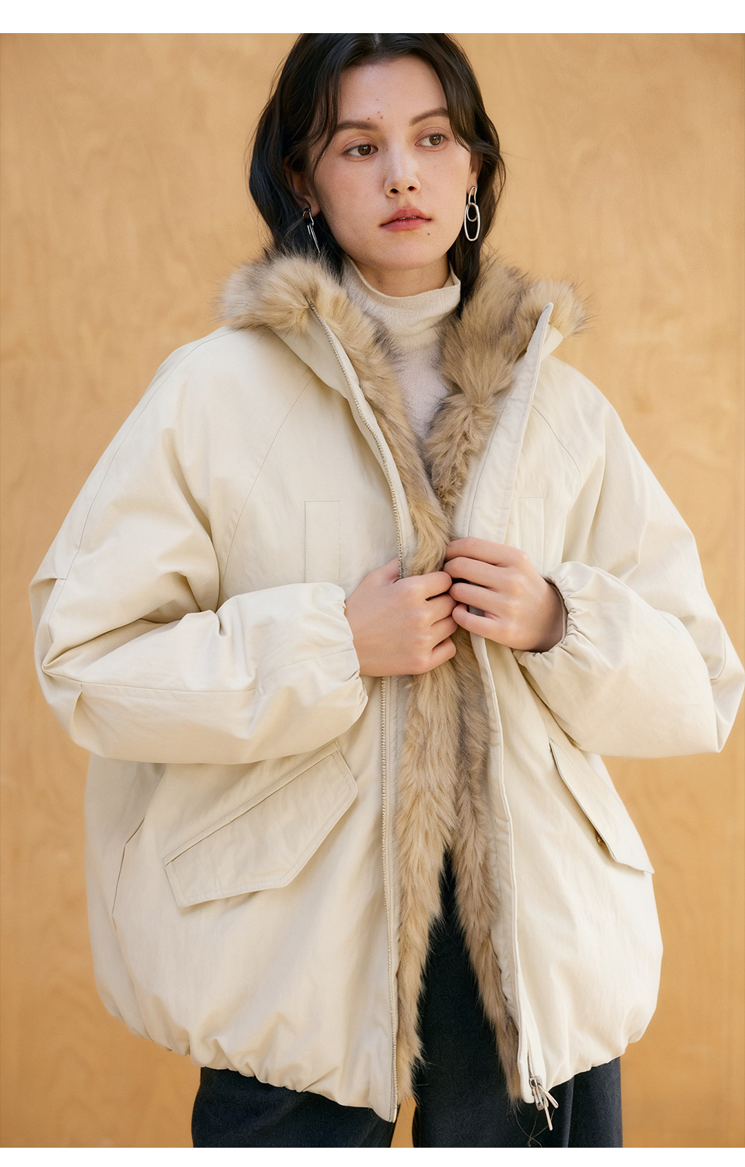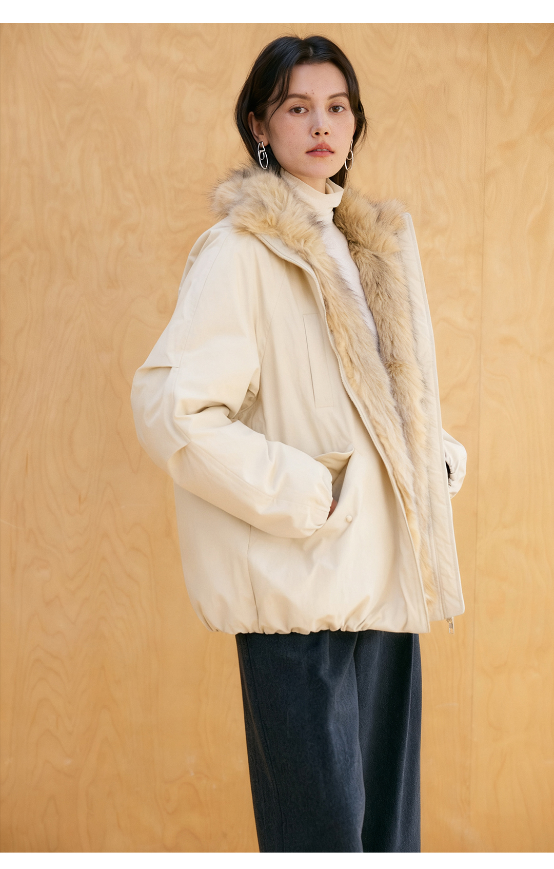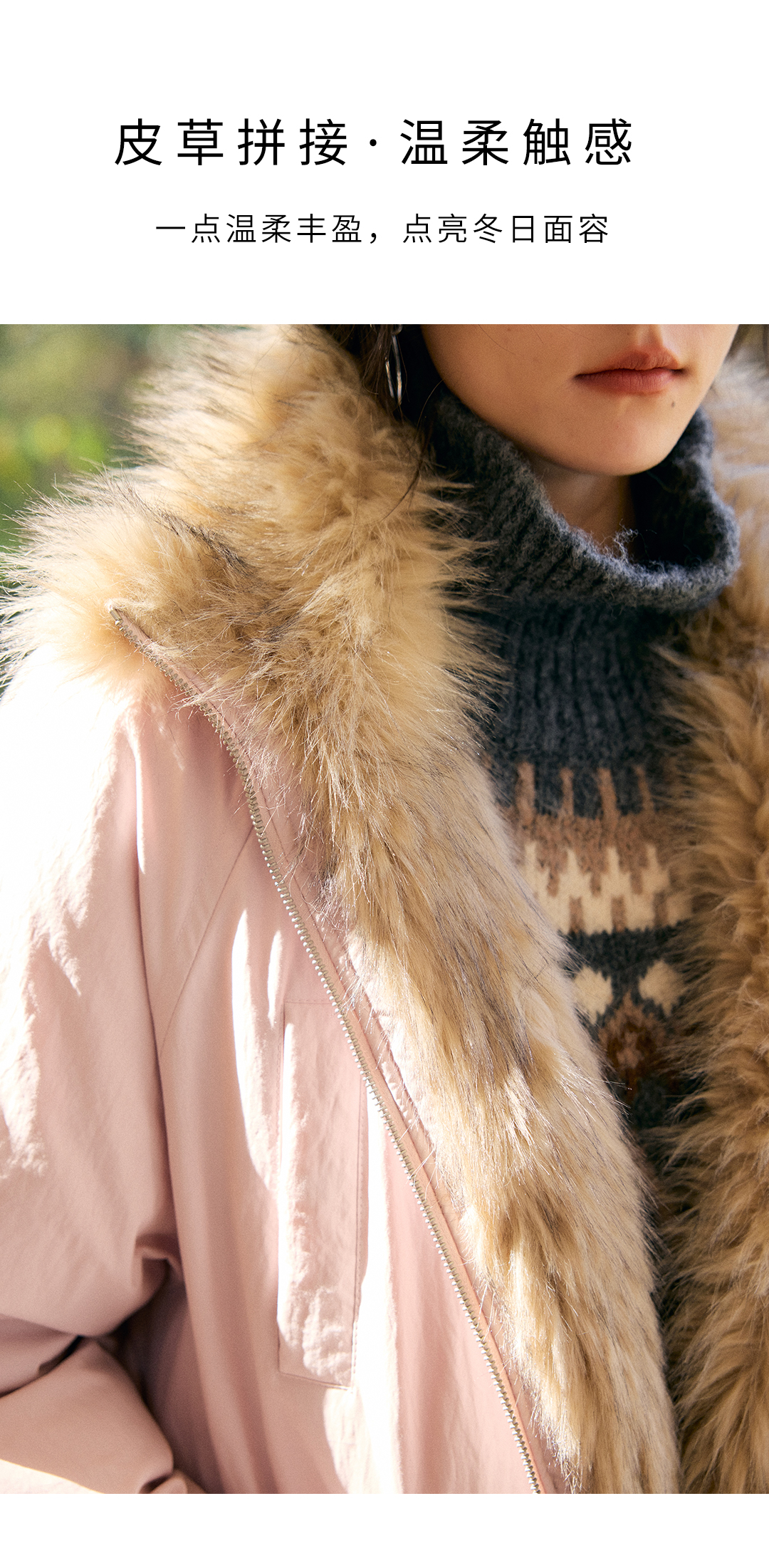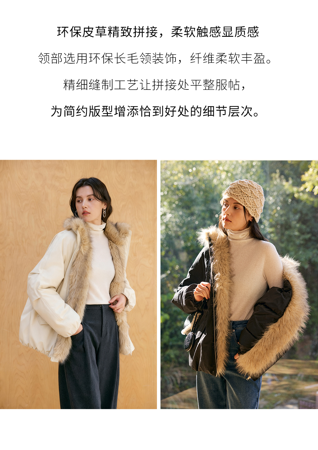 HeyDress环保皮草拼接派克短款羽绒服