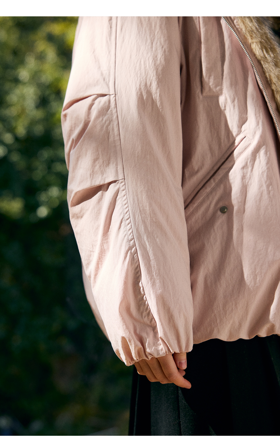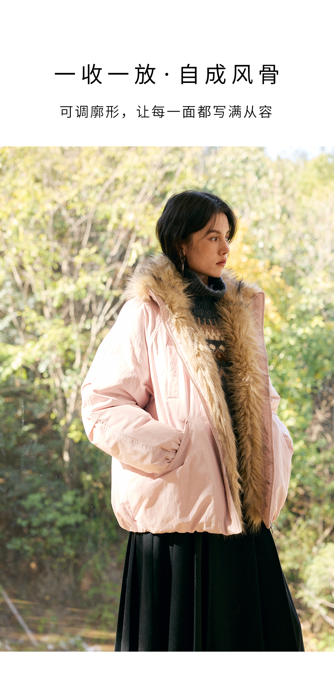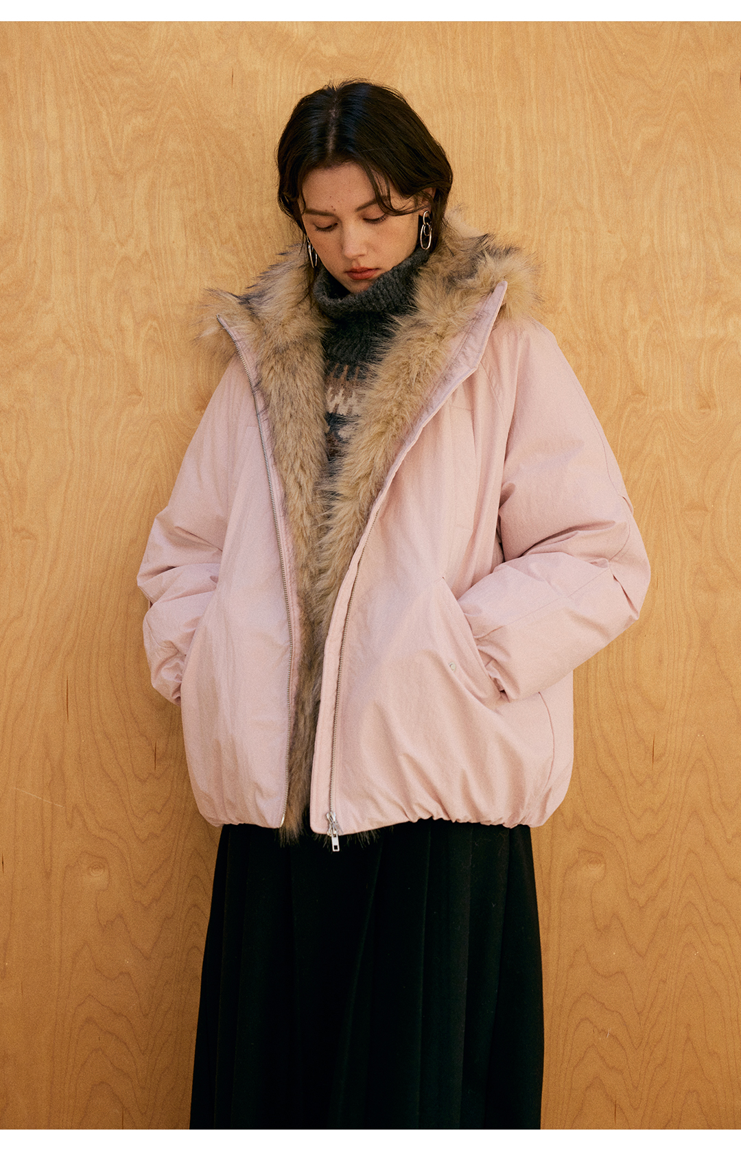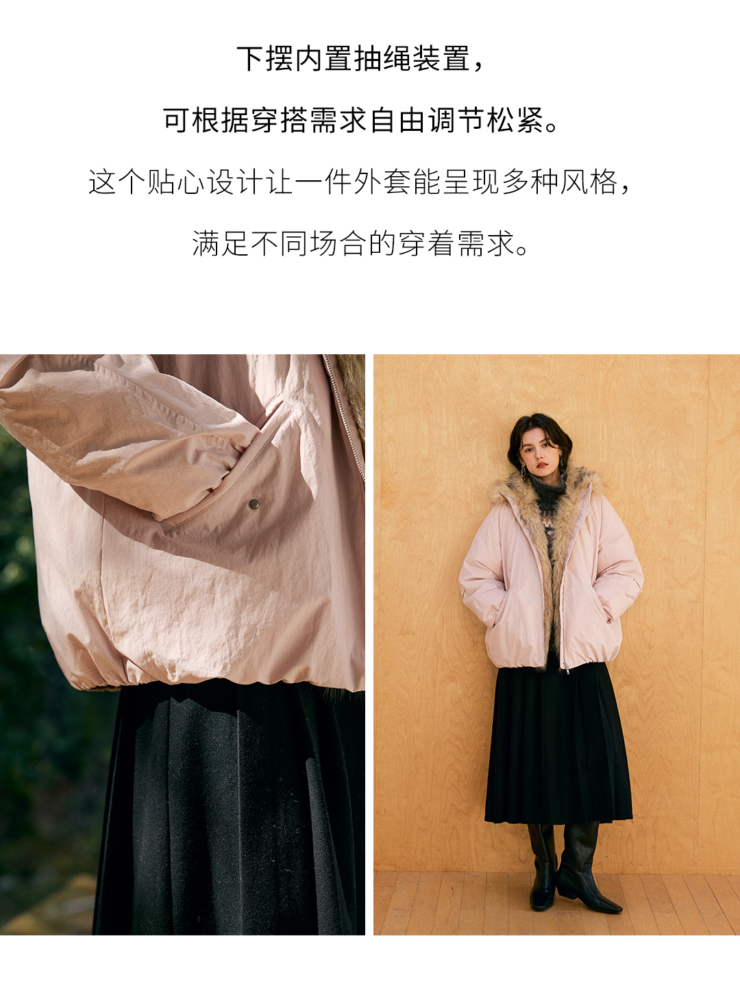 HeyDress环保皮草拼接派克短款羽绒服