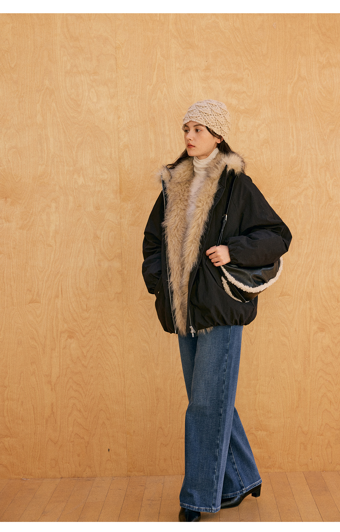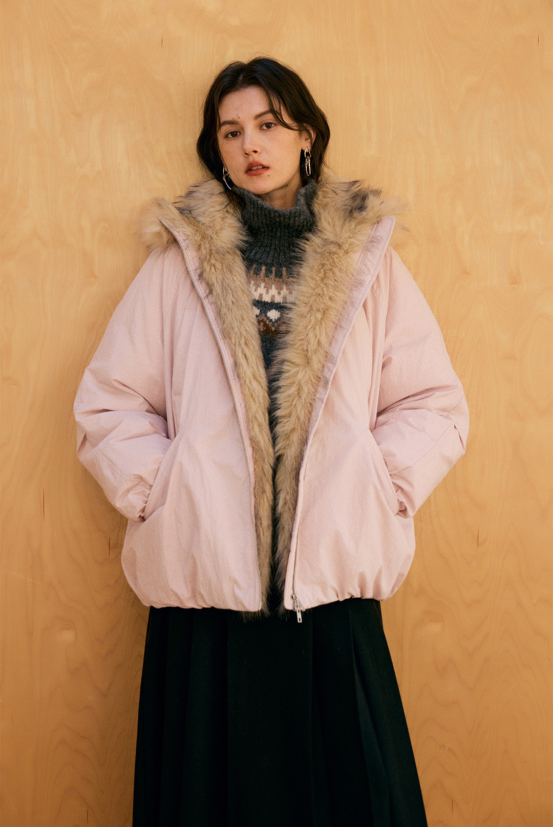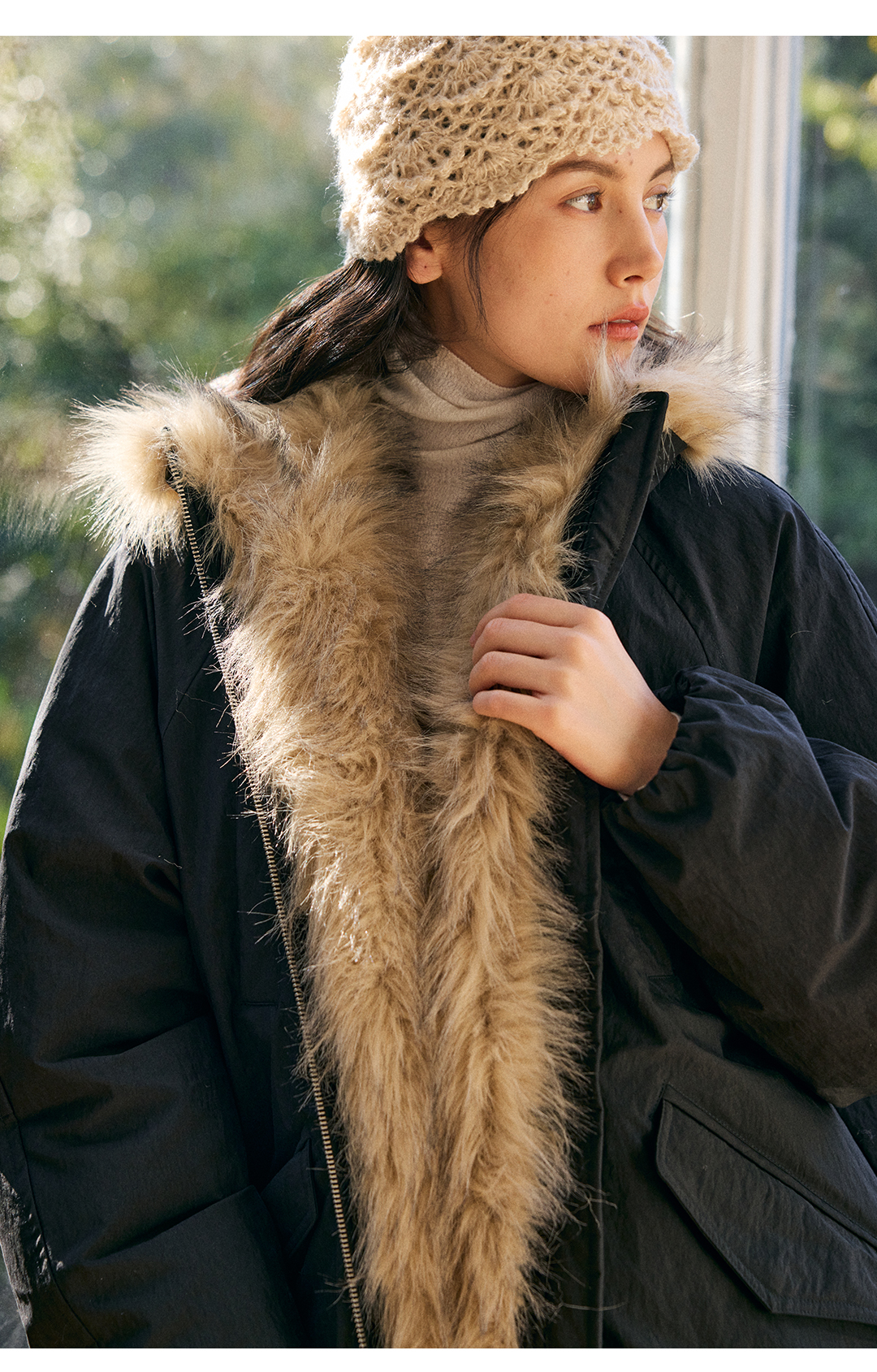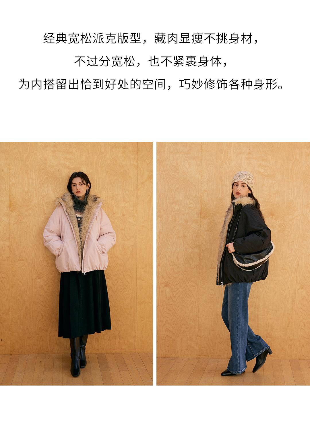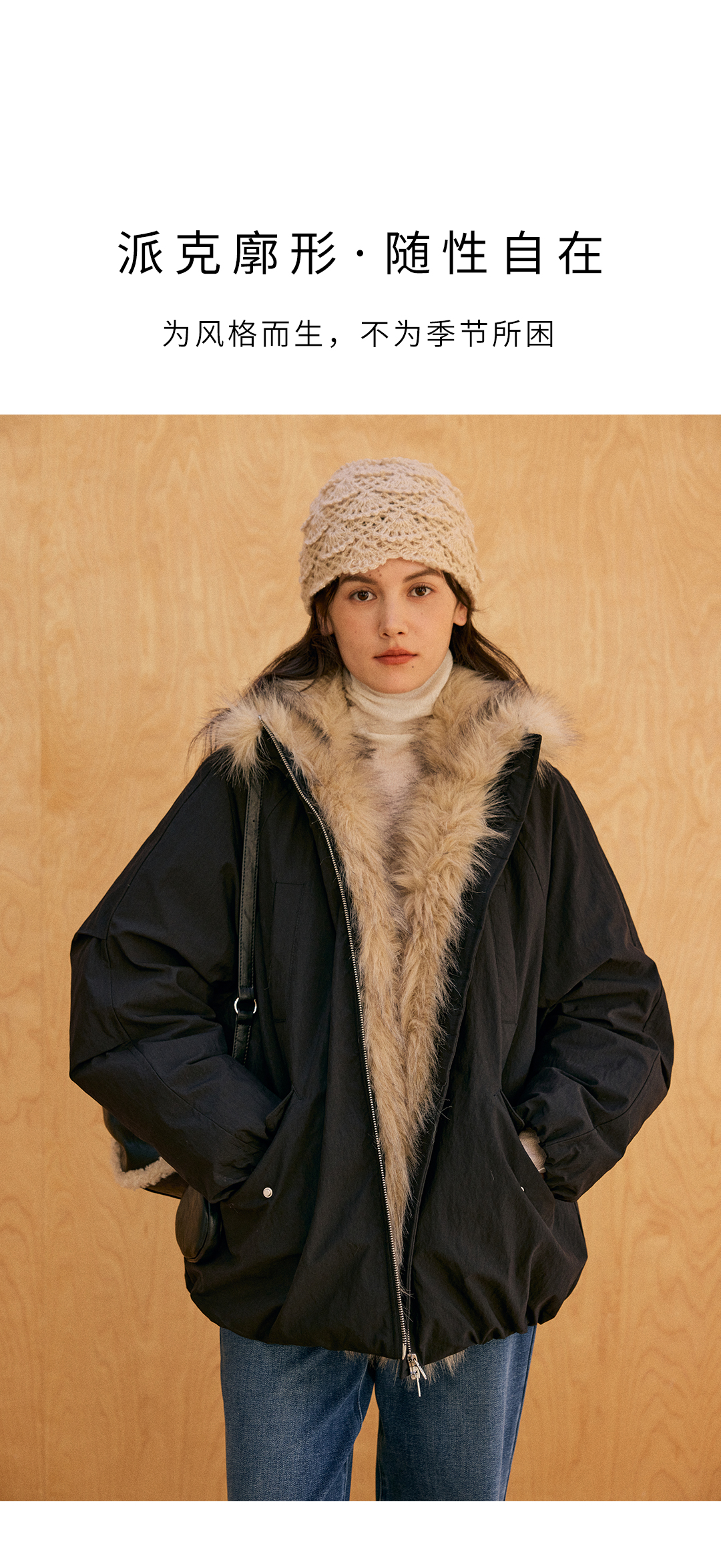 HeyDress环保皮草拼接派克短款羽绒服