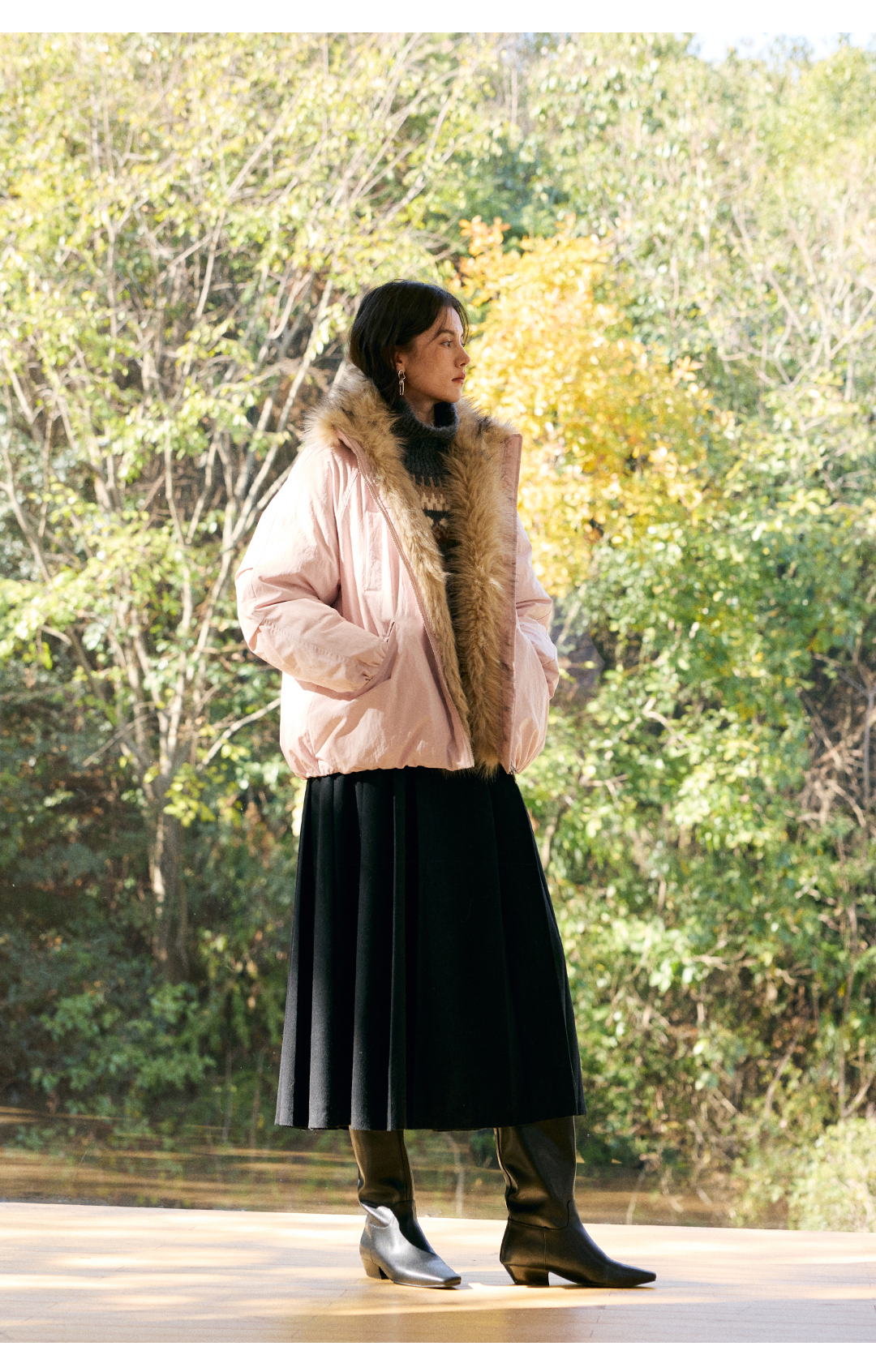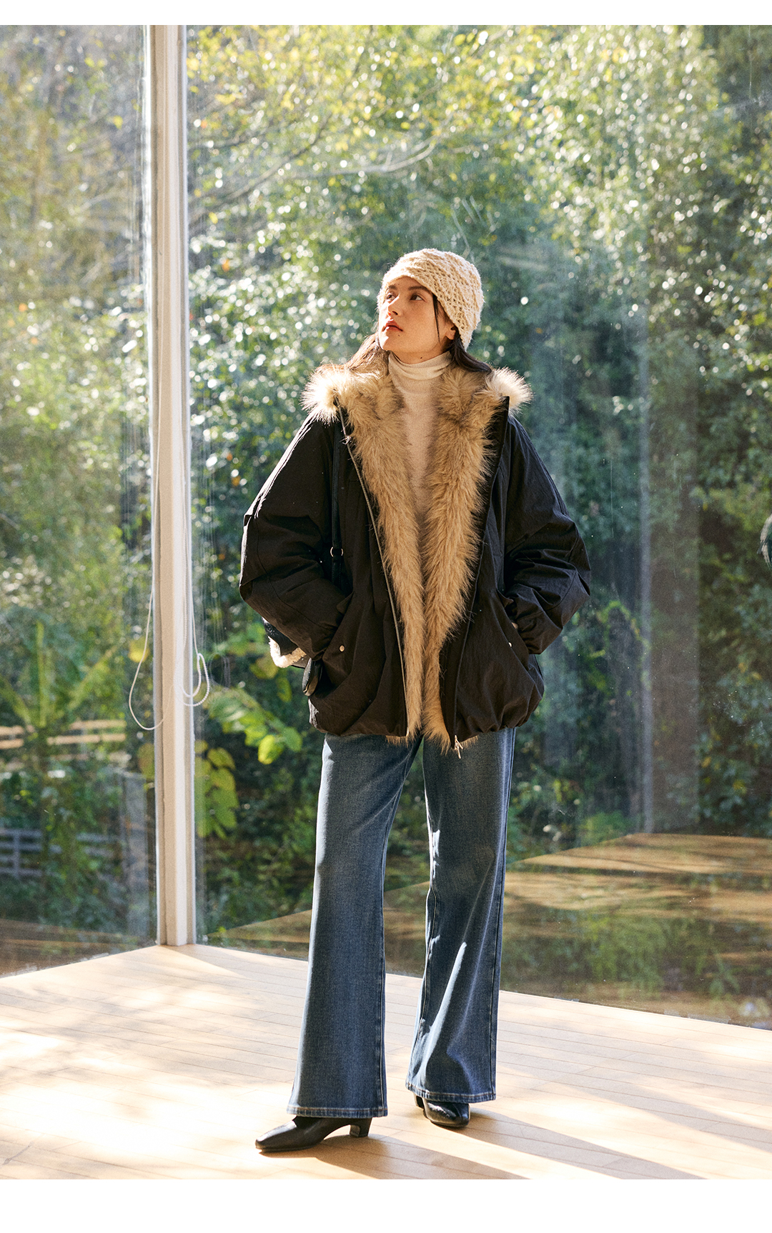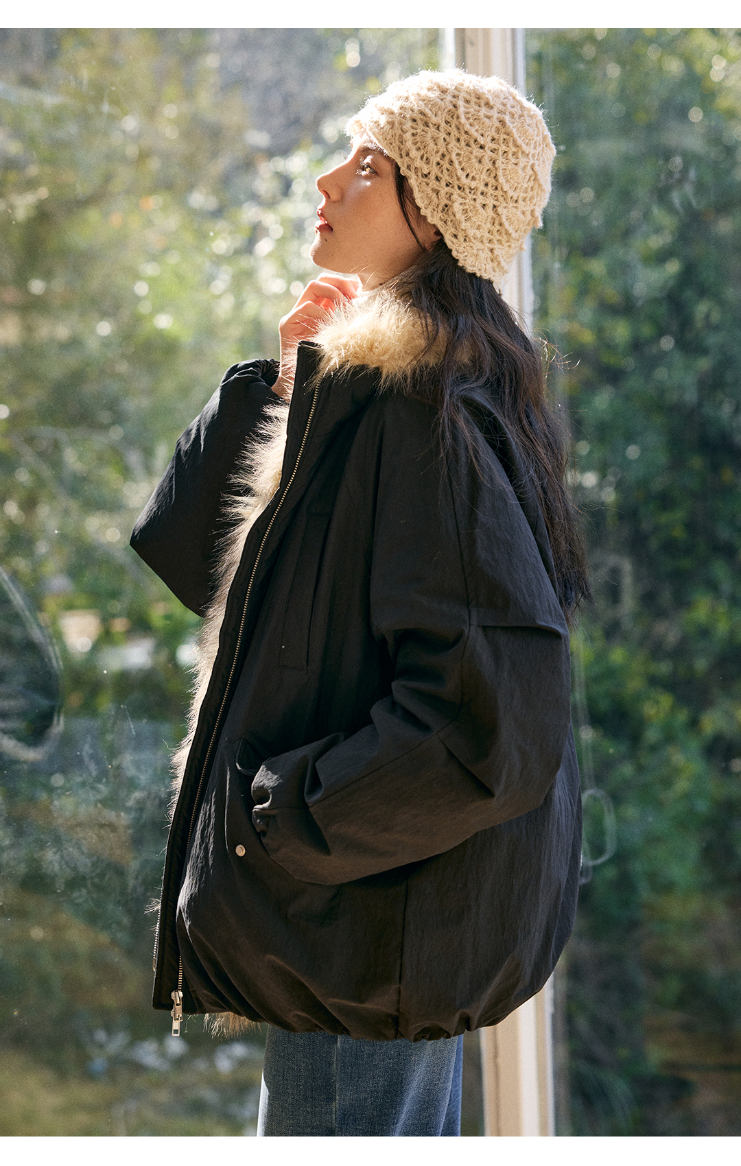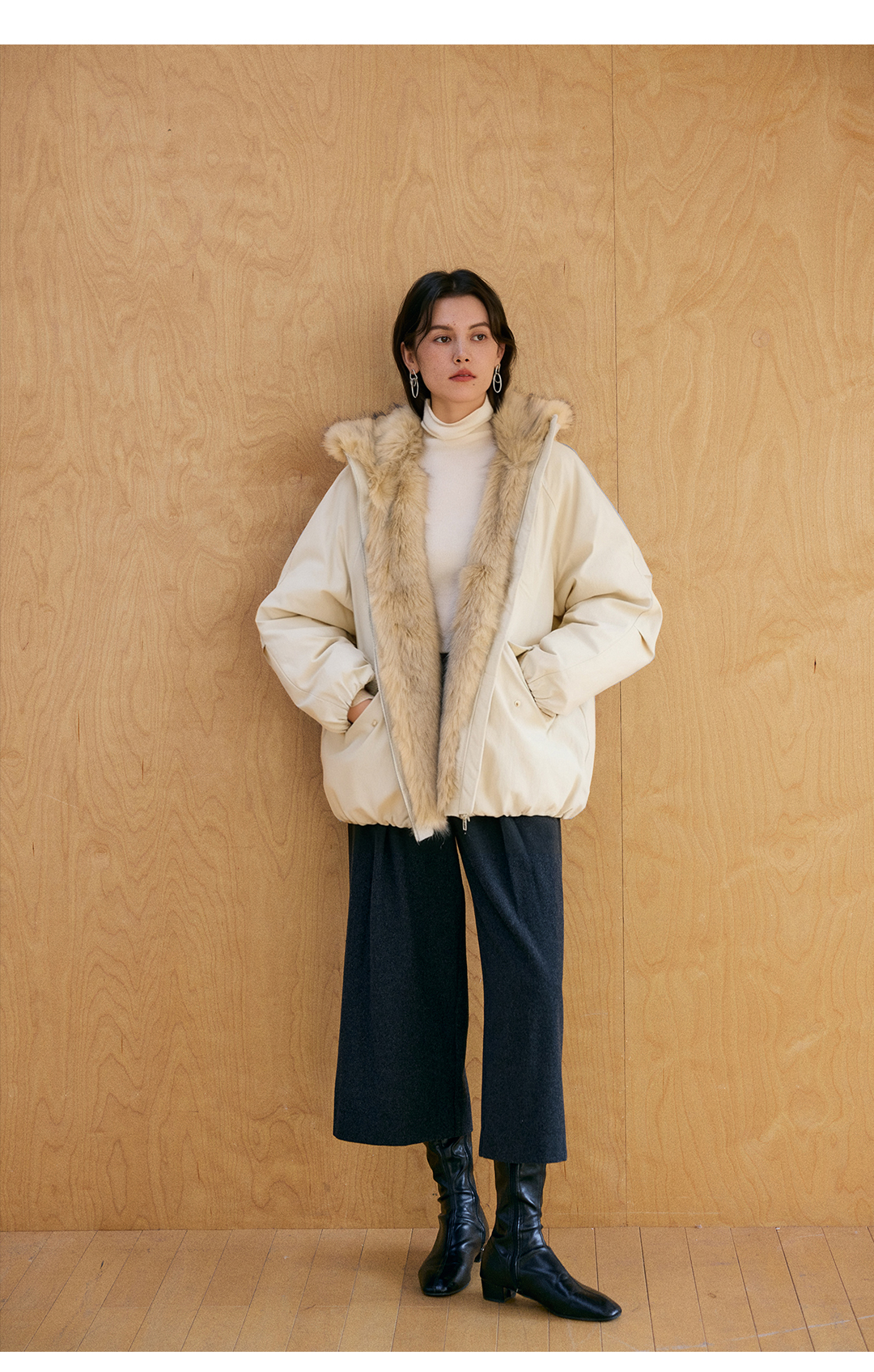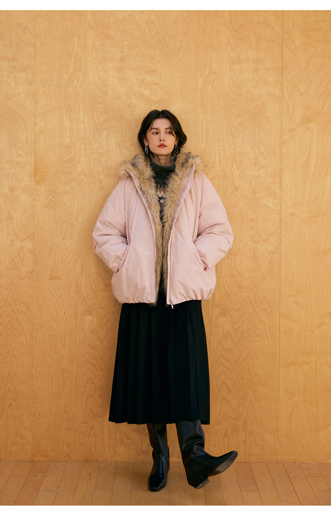 HeyDress环保皮草拼接派克短款羽绒服
