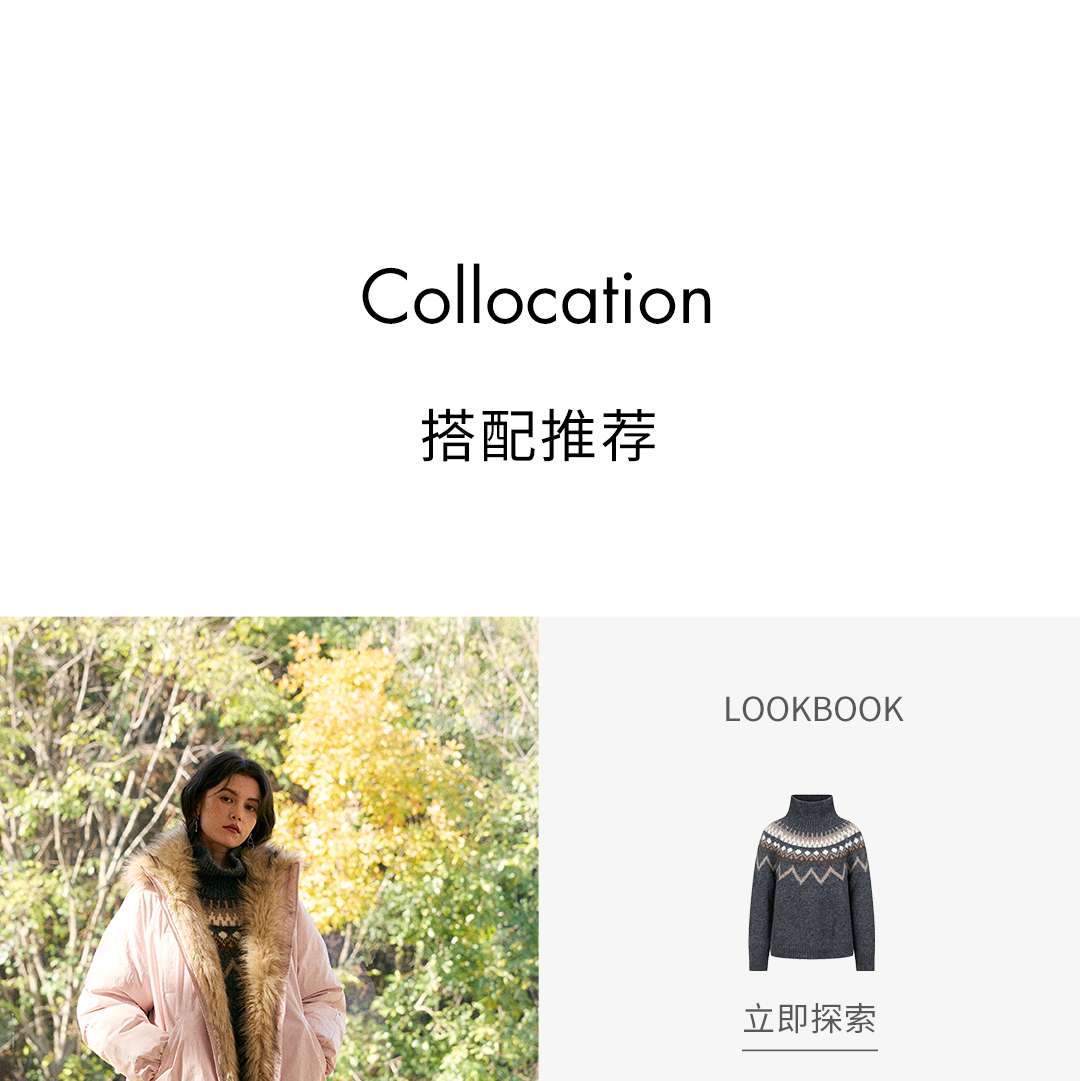 HeyDress提花羊毛羊绒混纺高领毛衣