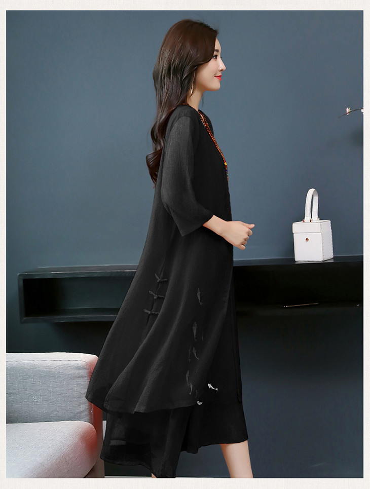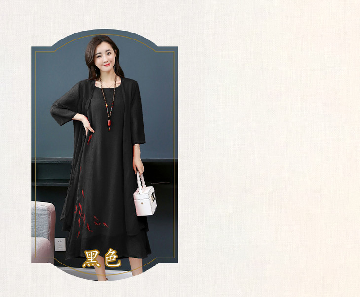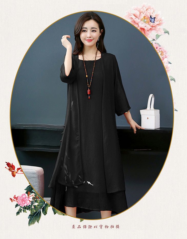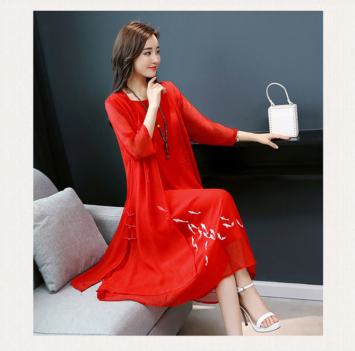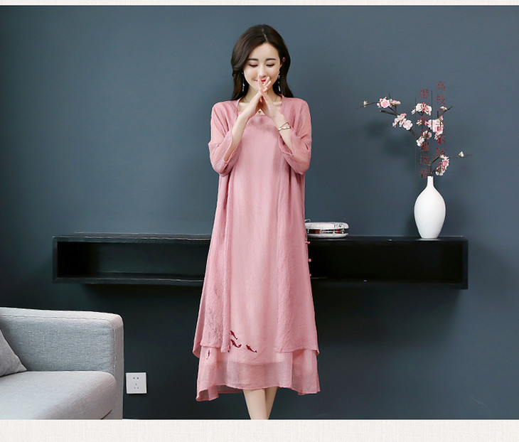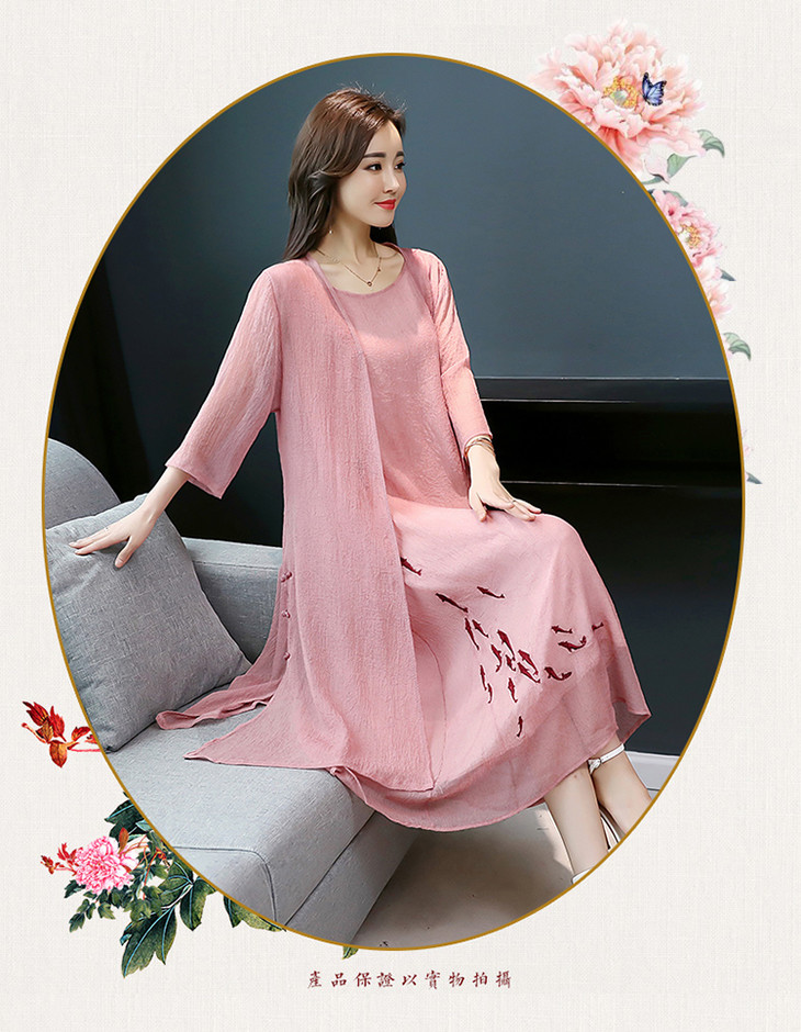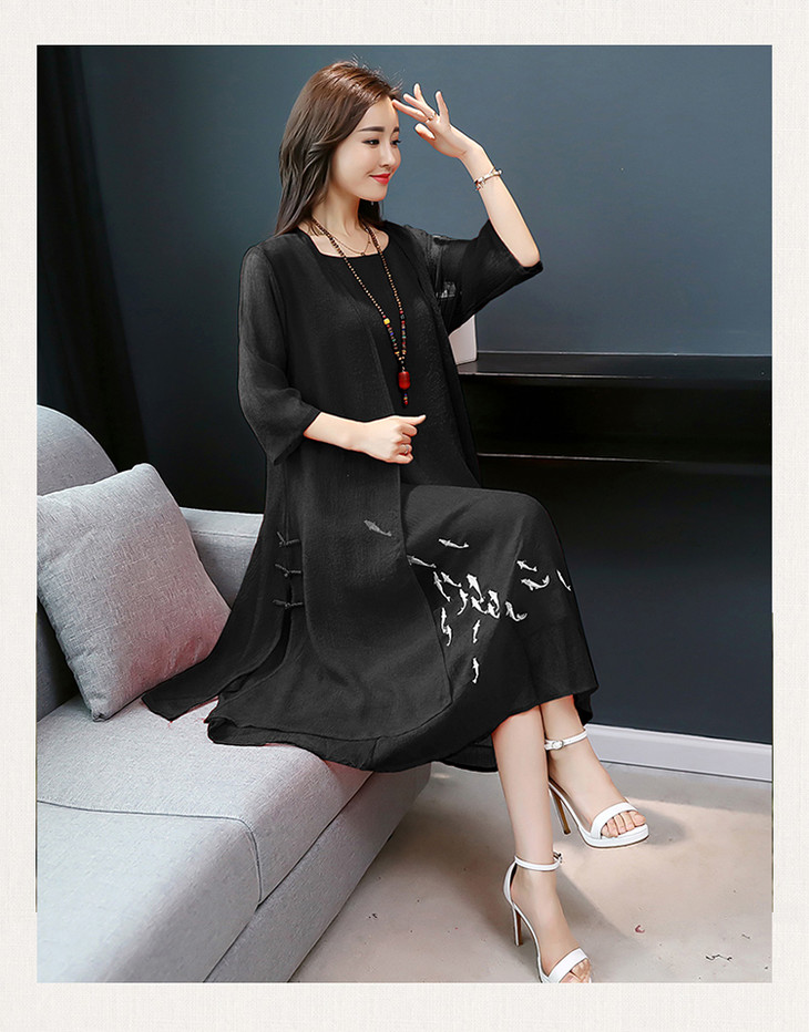 YGYL872 新款仿真丝盘扣刺绣复古文艺两件套连衣裙