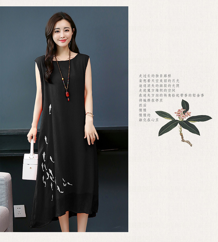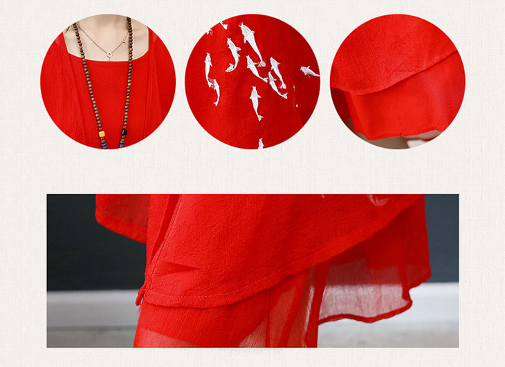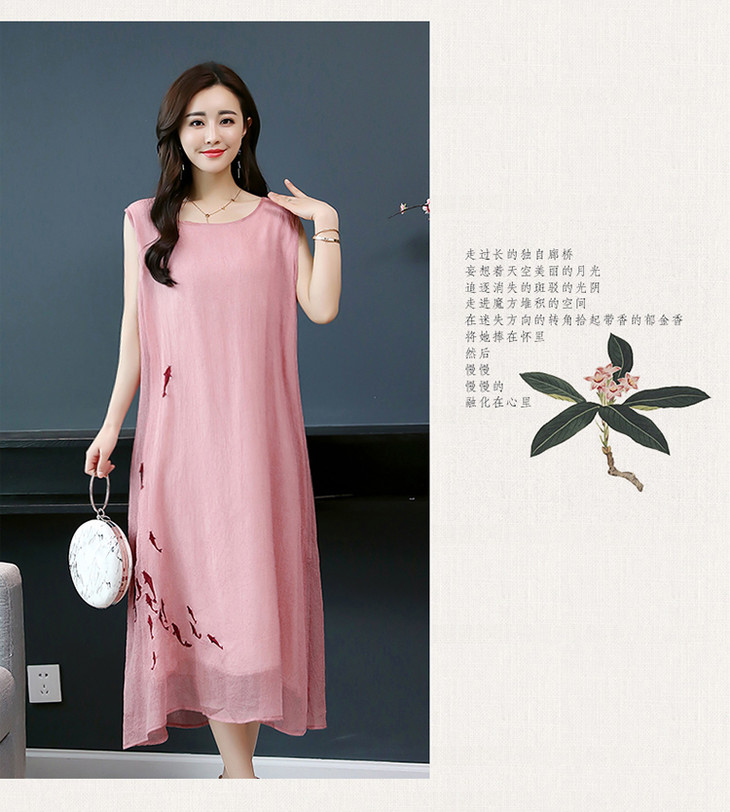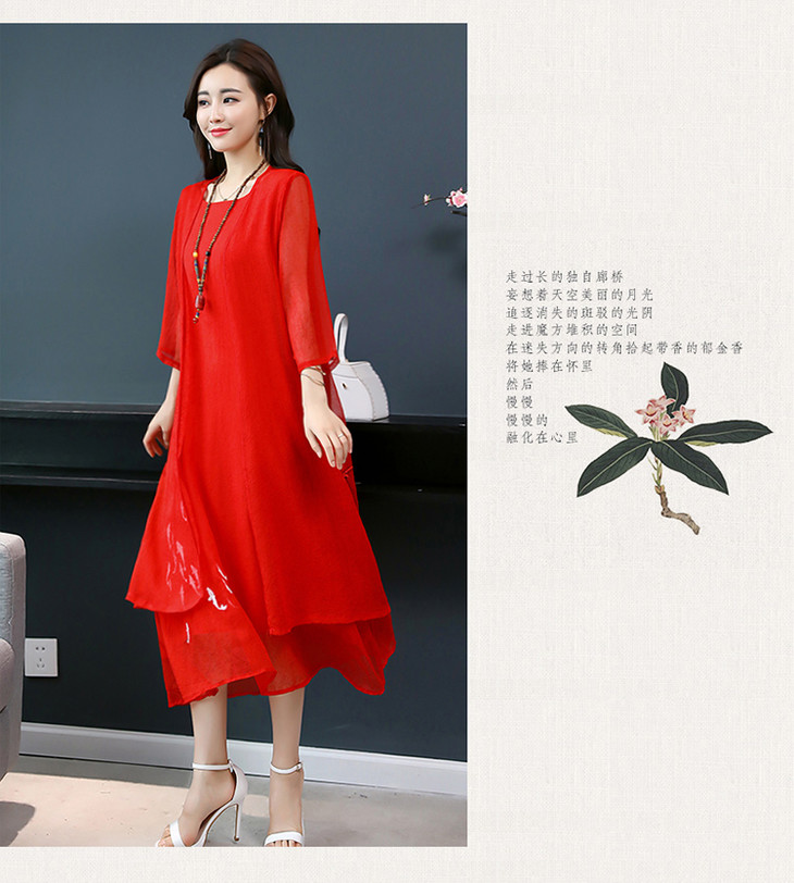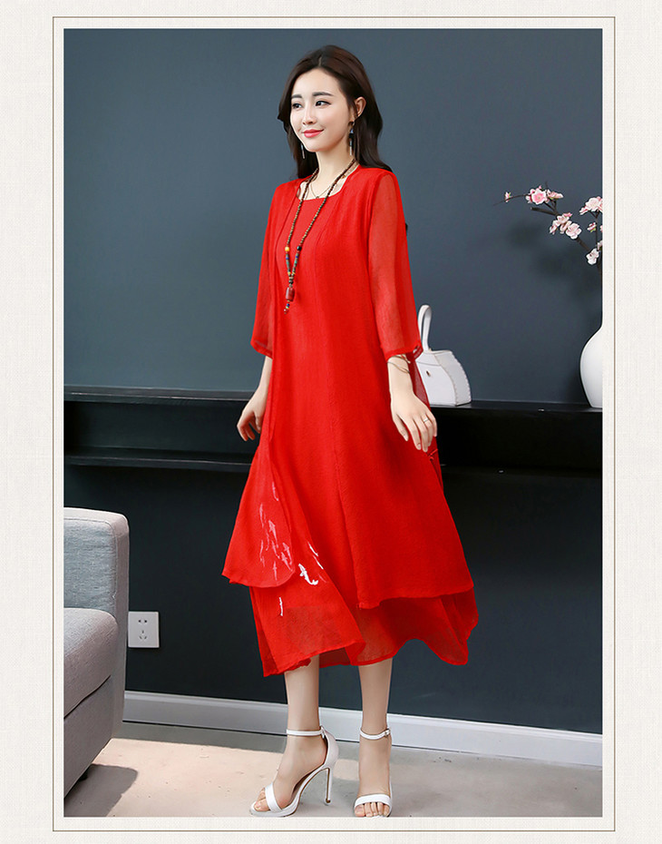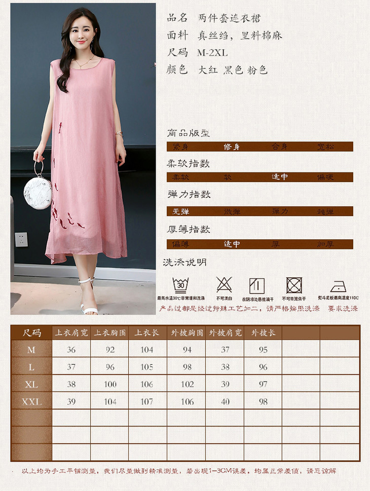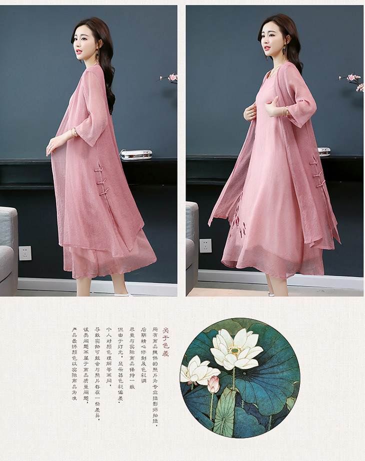YGYL872 新款仿真丝盘扣刺绣复古文艺两件套连衣裙