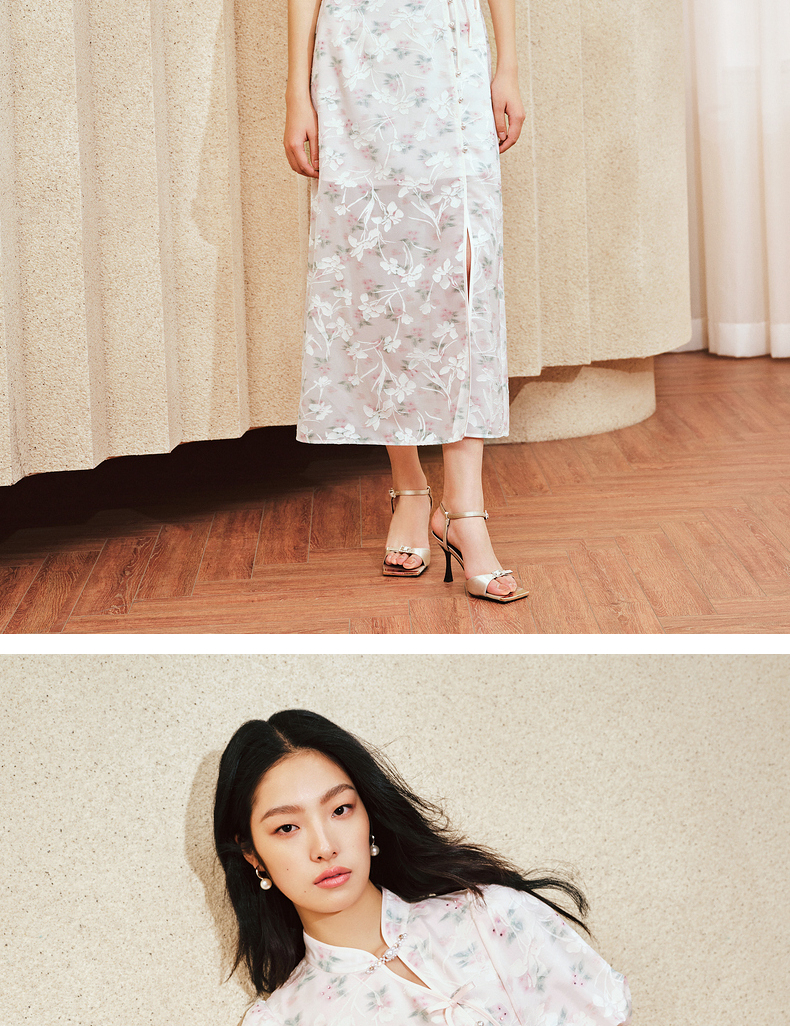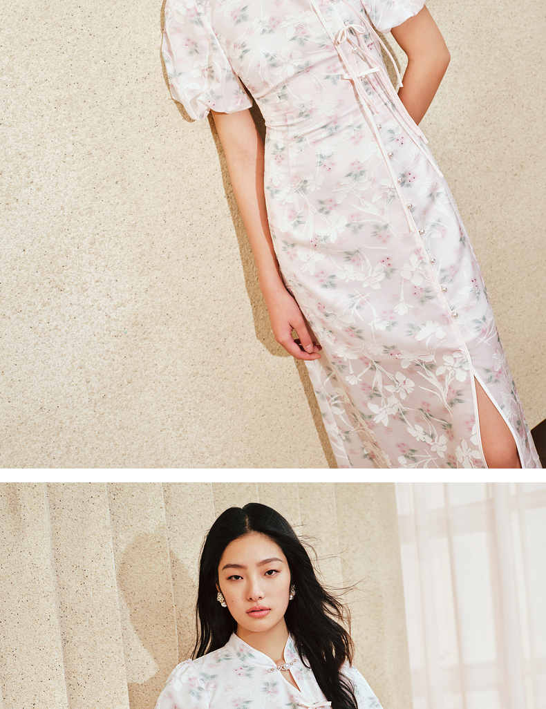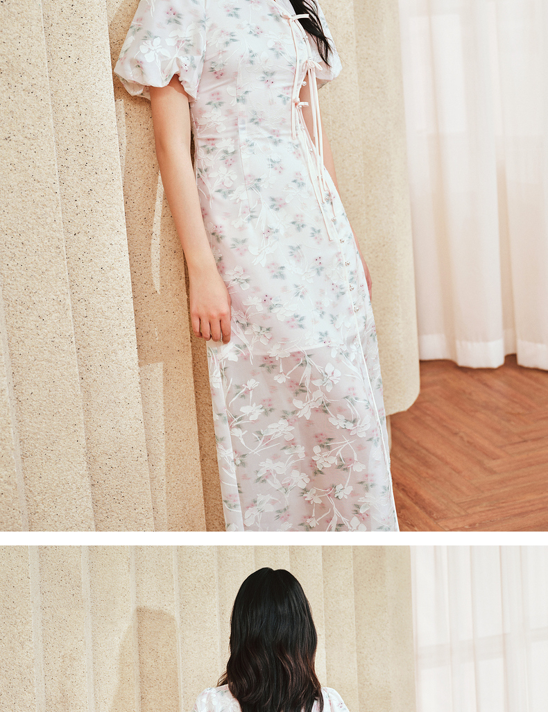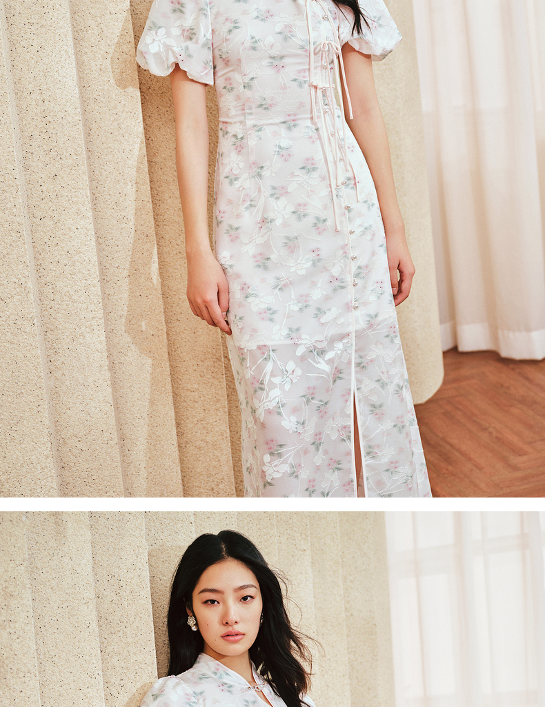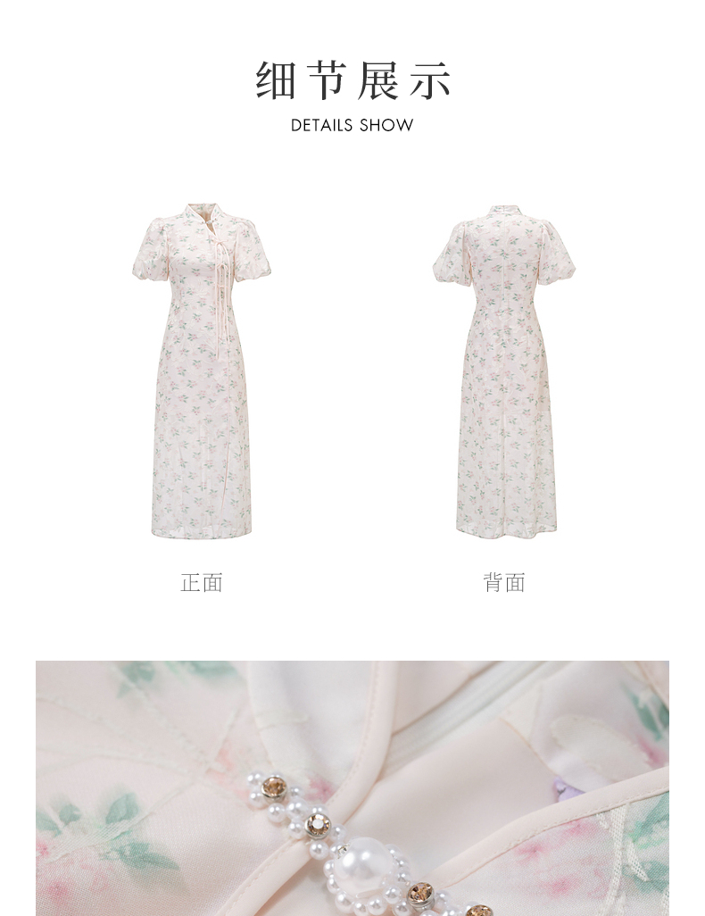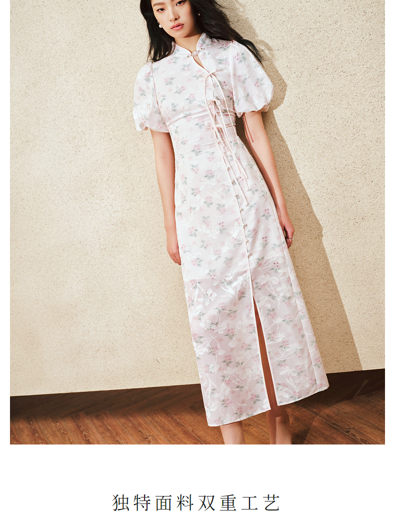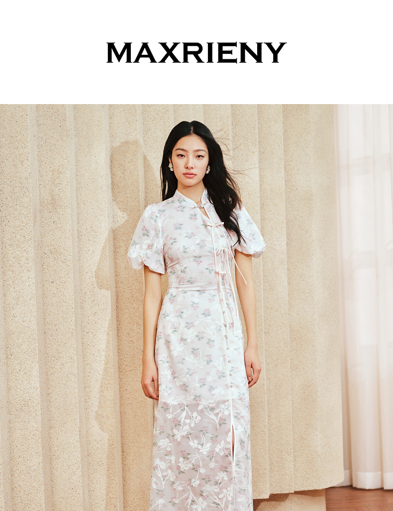 MAXRIENY新中式手工盘扣连衣裙复古国风开衩裙子(货号:MS85DR031)