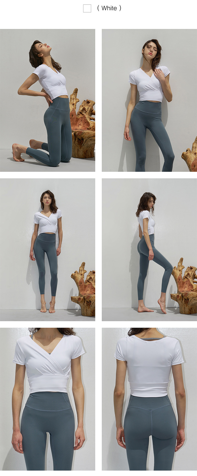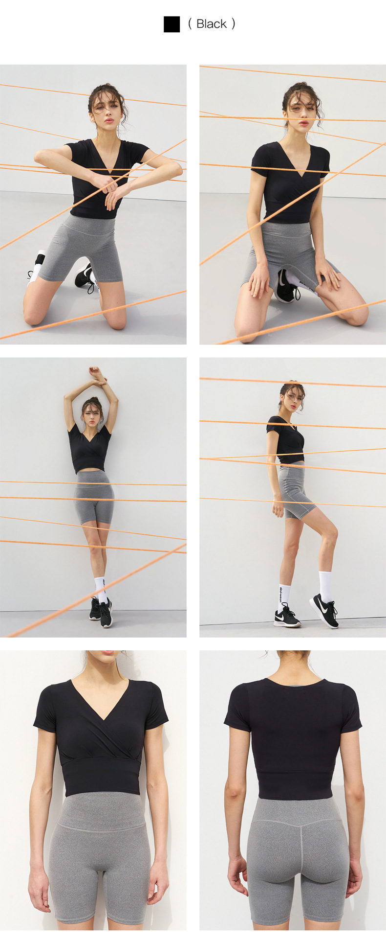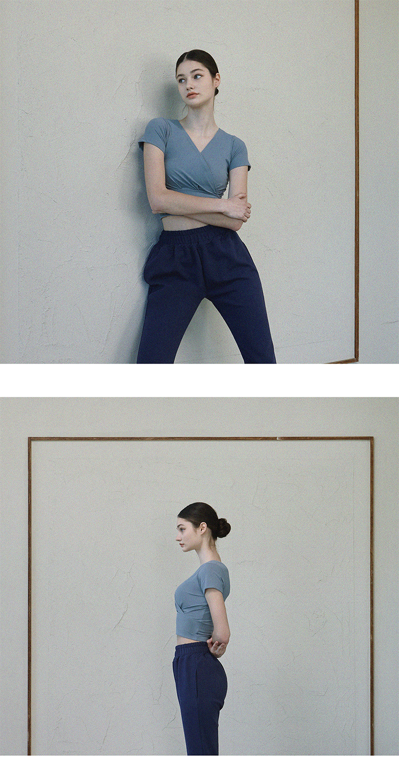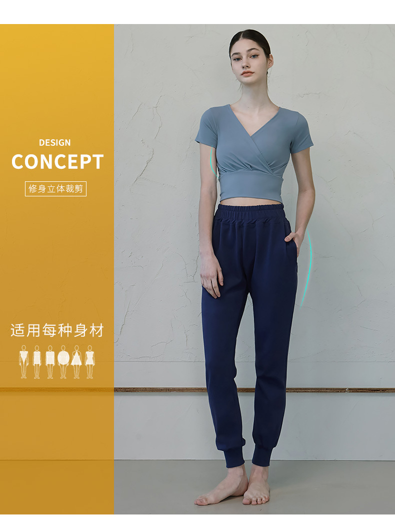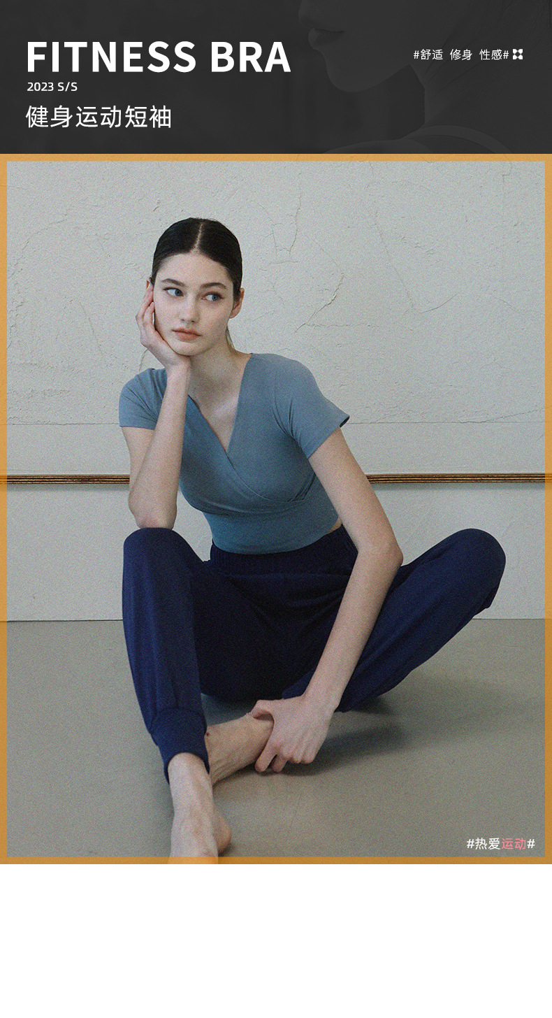 跃牌【洛水之神系列】V领交叉瑜伽服透气速干短袖HN121(不带胸垫)