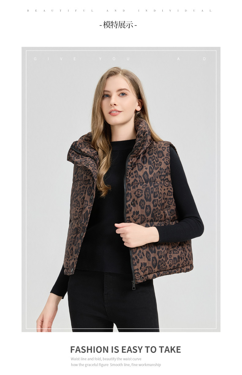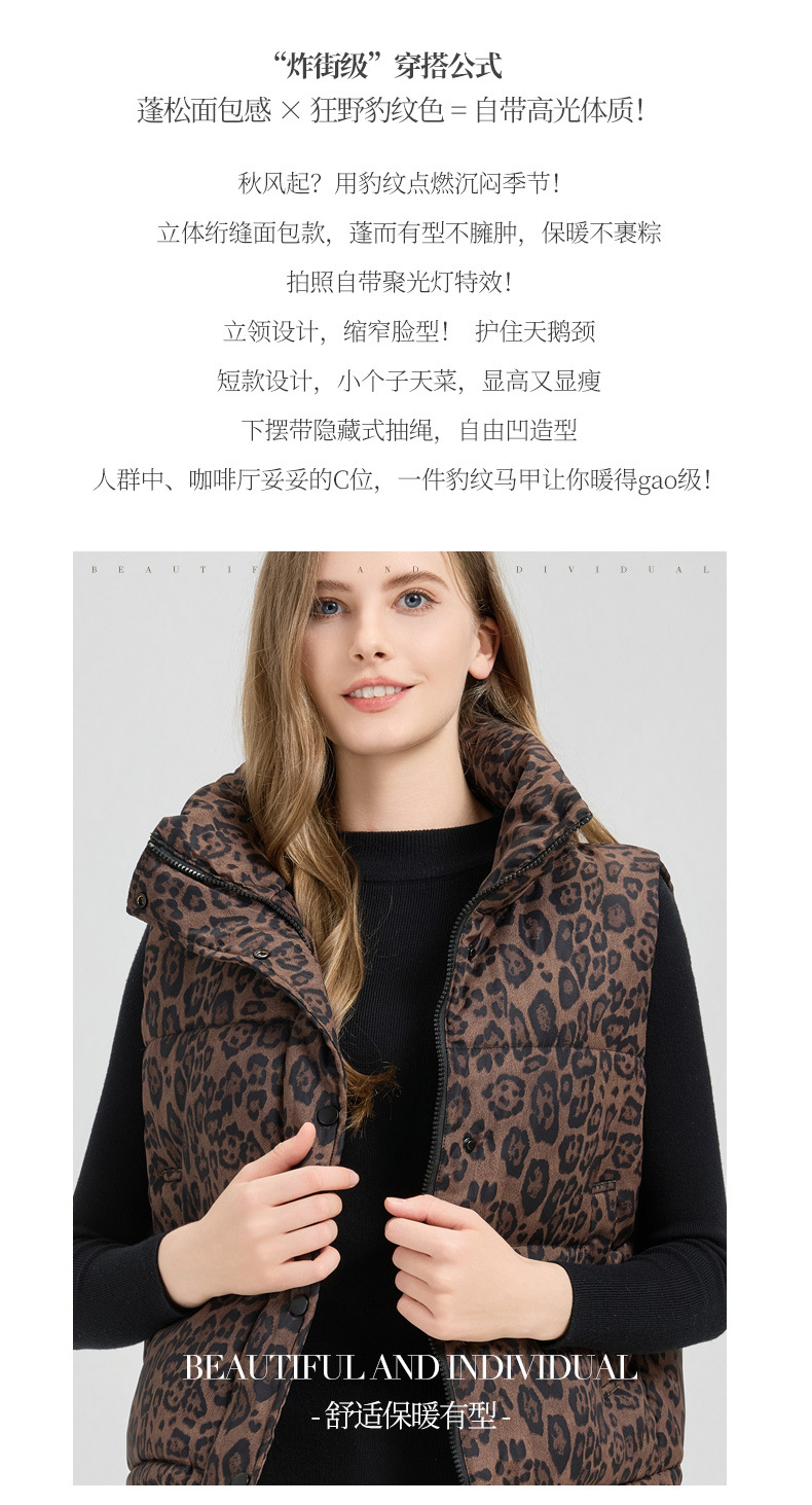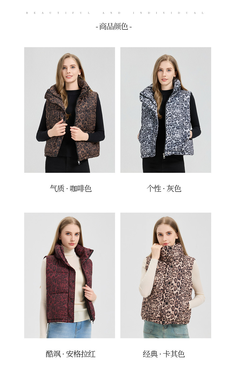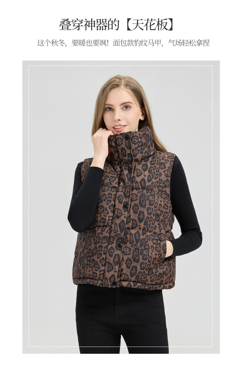雀说外贸豹纹保暖服马甲背心季新款立领坎肩马夹洋气短外套AL9501