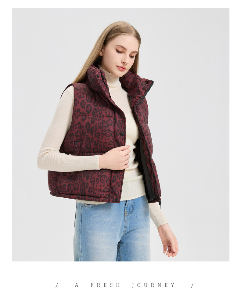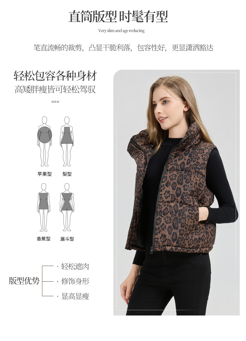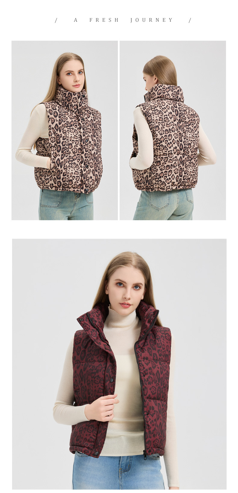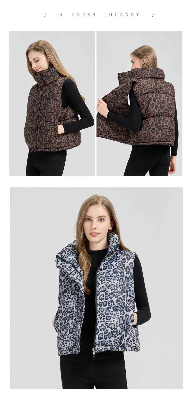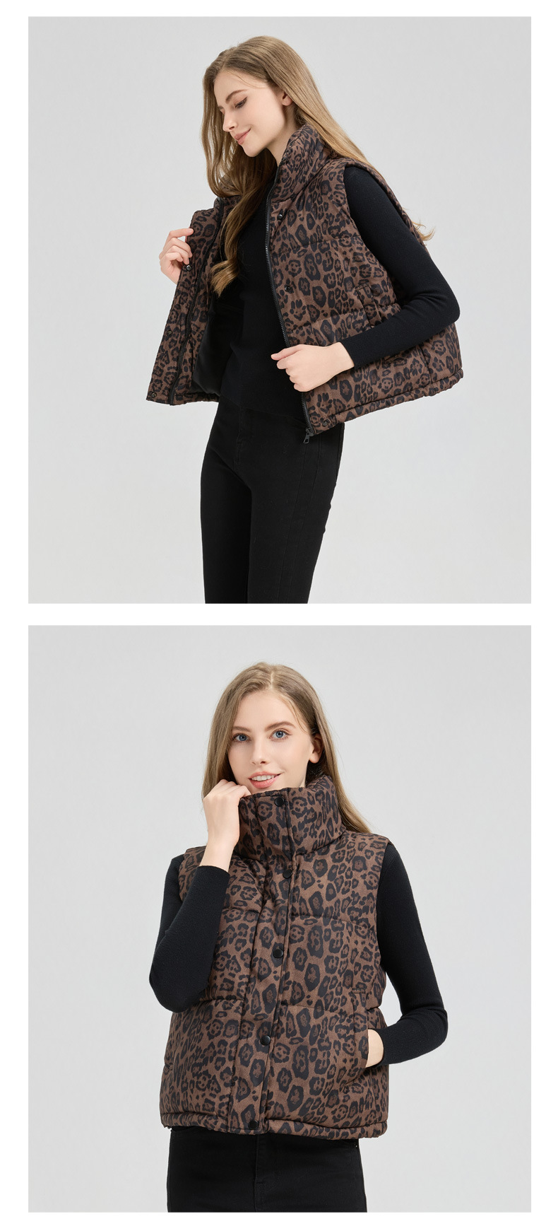 雀说外贸豹纹保暖服马甲背心季新款立领坎肩马夹洋气短外套AL9501