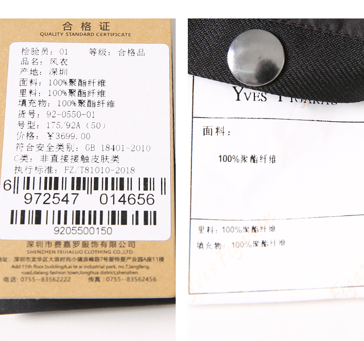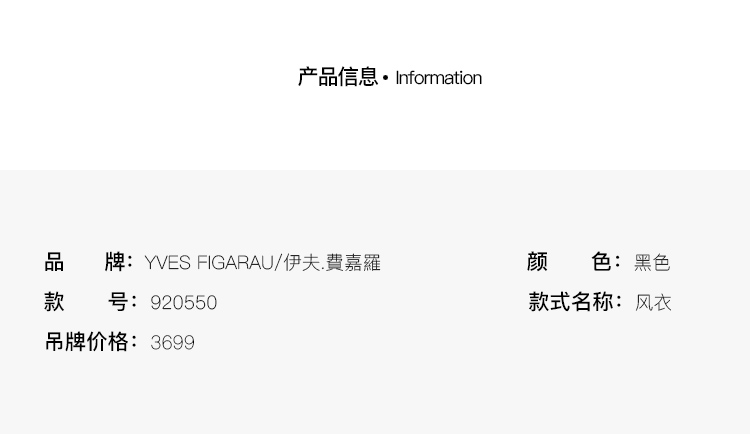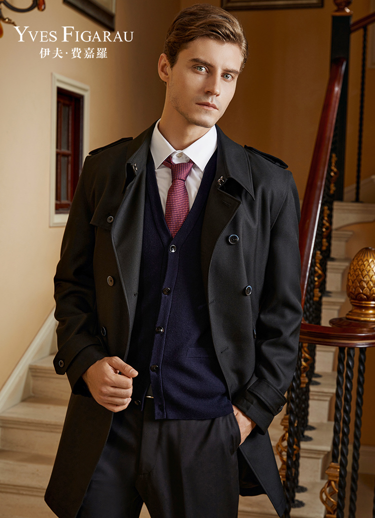 下架返修-YvesFigarau伊夫·费嘉罗男装秋冬休闲时尚舒适920550风衣外套