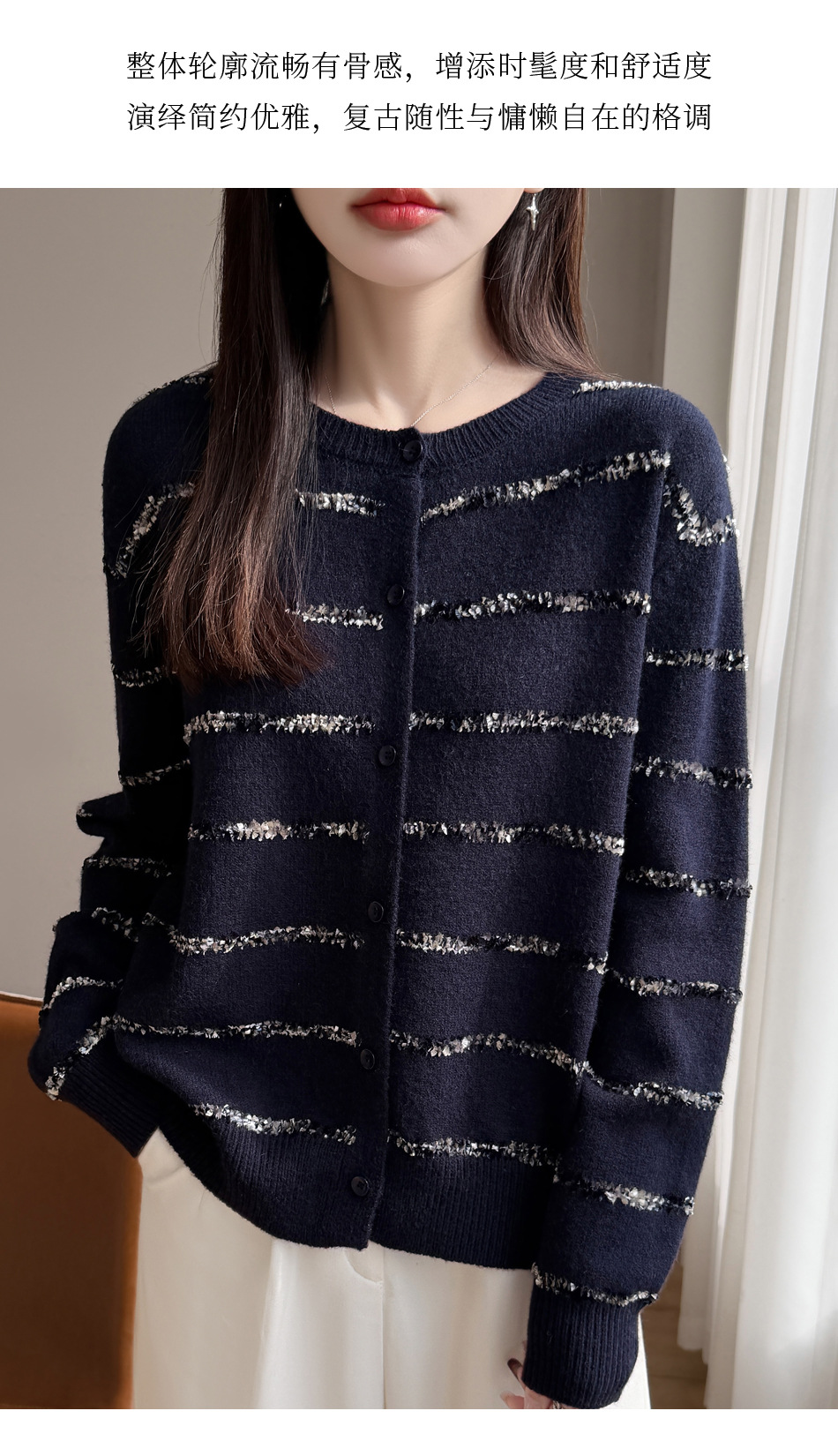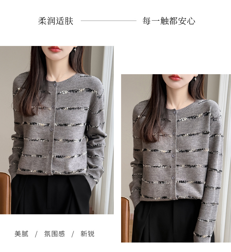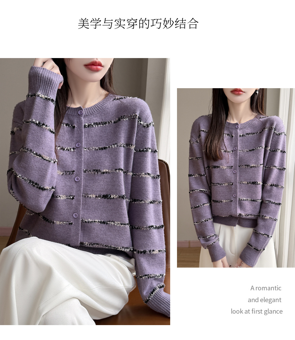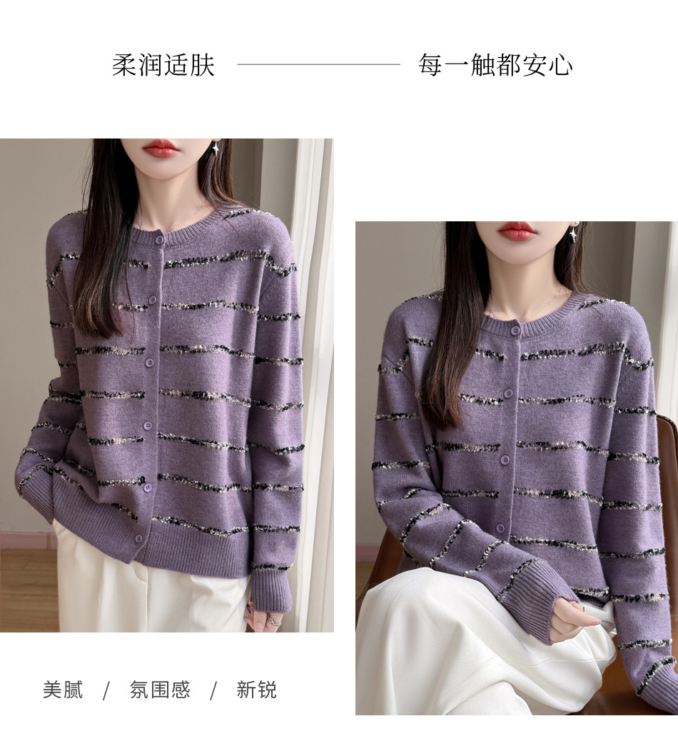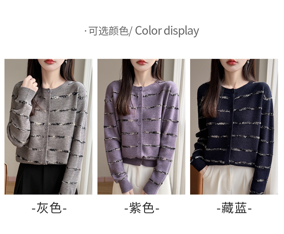 百媚生 小香风条纹薄款针织开衫纽扣毛衣NJR2-2188-37