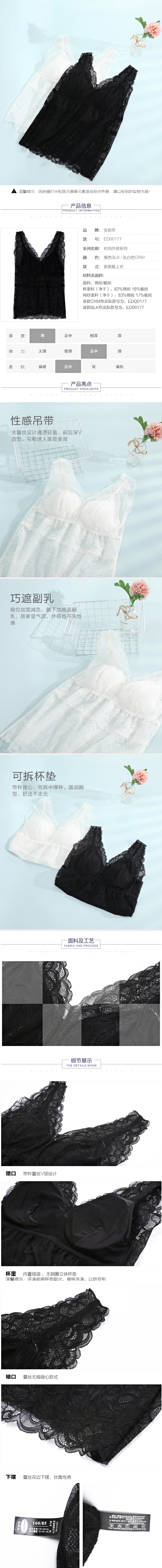 安莉芳薄款蕾丝吊带免穿BRA背心女内搭打底可外穿家居上衣ED00177
