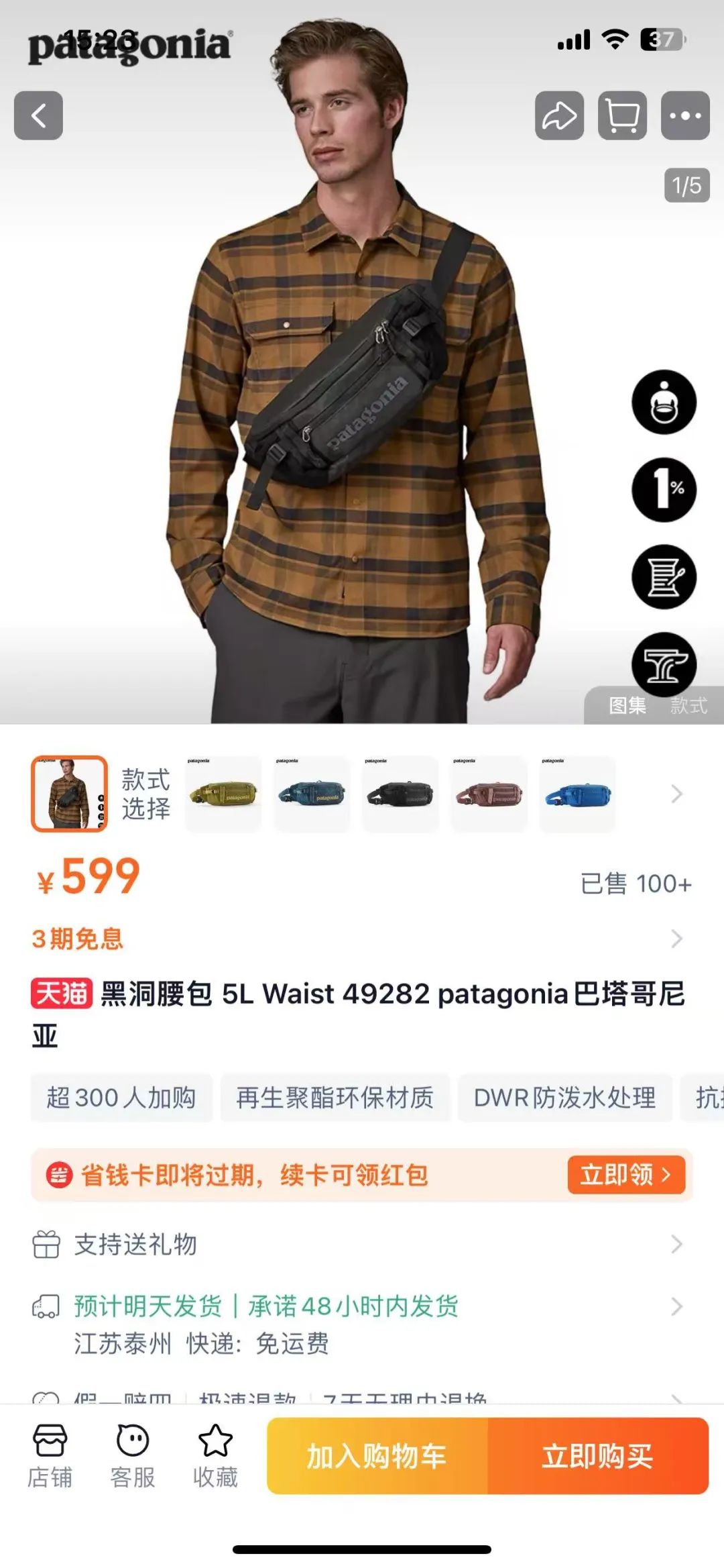 巴ta哥ni亚 黑洞腰包 5L Waist时尚休闲多功能腰包 胸包 单肩包,