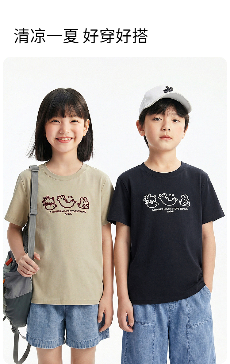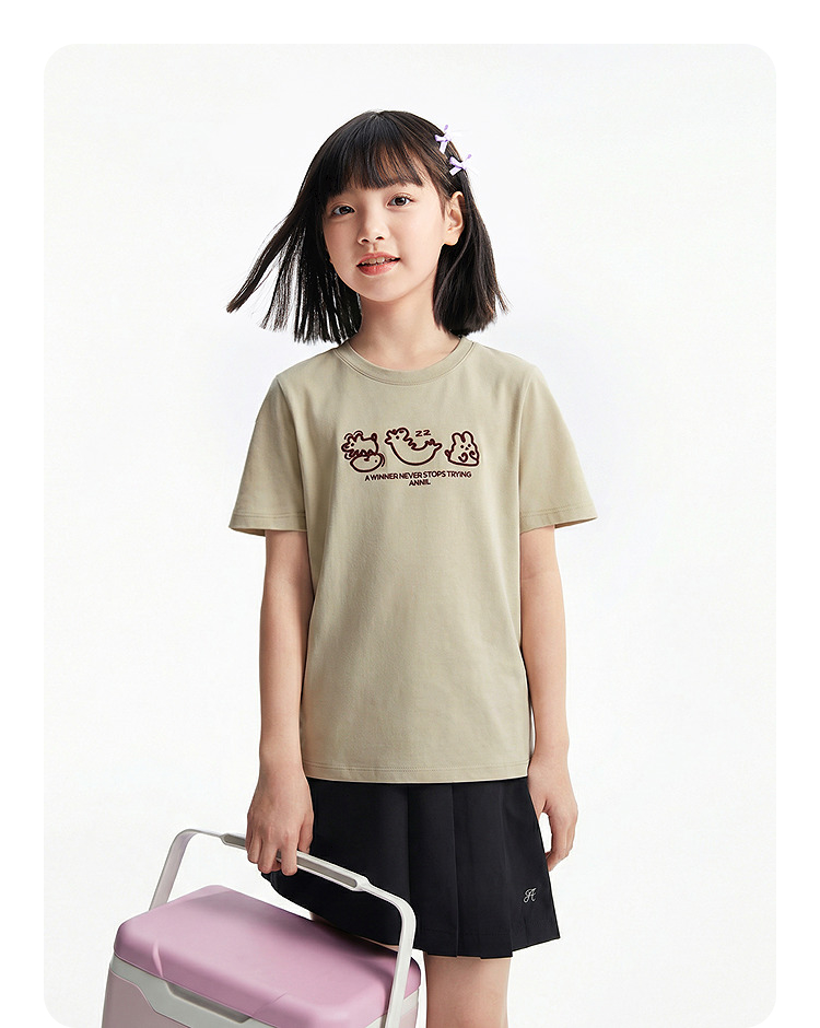 男女童圆领短袖T恤夏季新款安奈儿童装EM621758