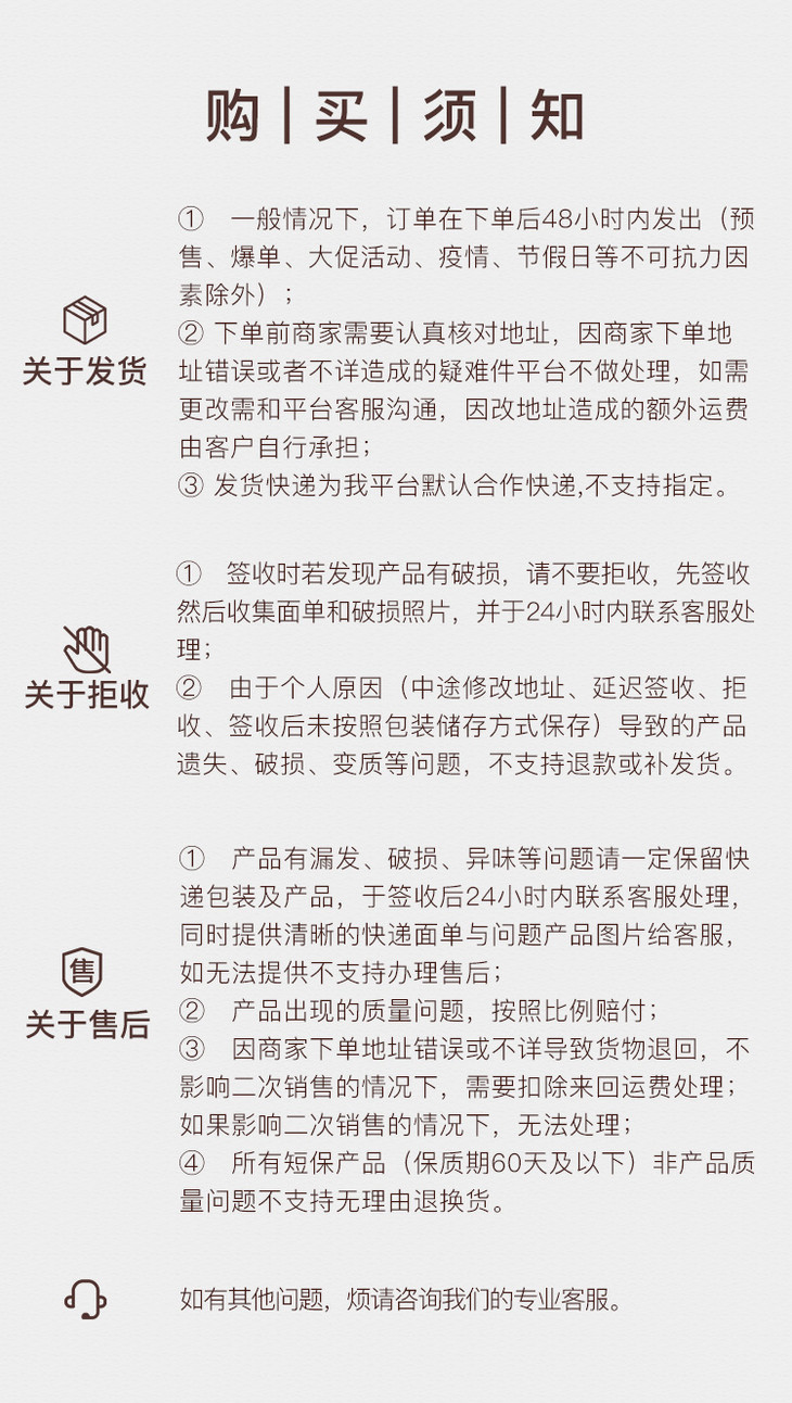 【限制发货区域】西藏不发货。县级以下村镇地址如下单则不保时效,破损不售后