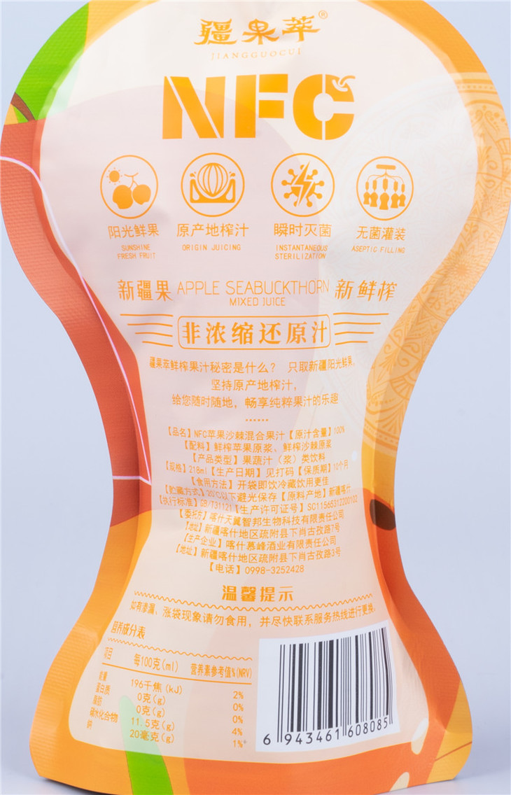 【配料】鲜榨苹果原浆、鲜榨沙棘原浆