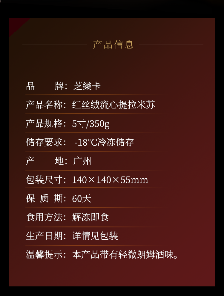 测评优品-芝乐卡红丝绒流心提拉米苏 代糖 无防腐剂无香精 奶酪蛋糕 微甜不腻 无反式脂肪酸