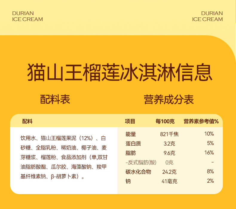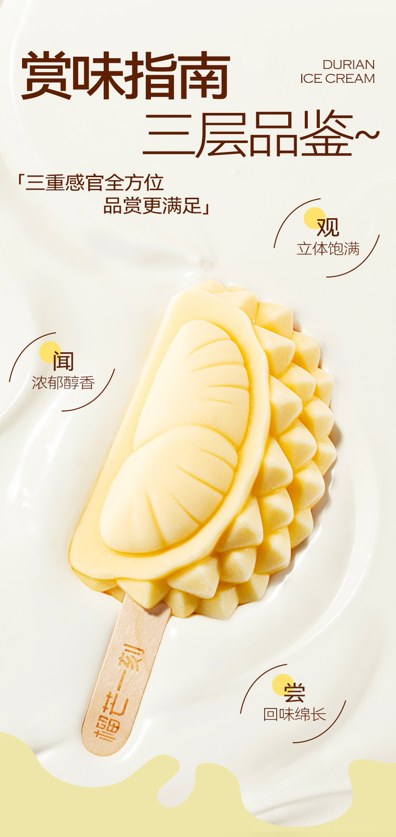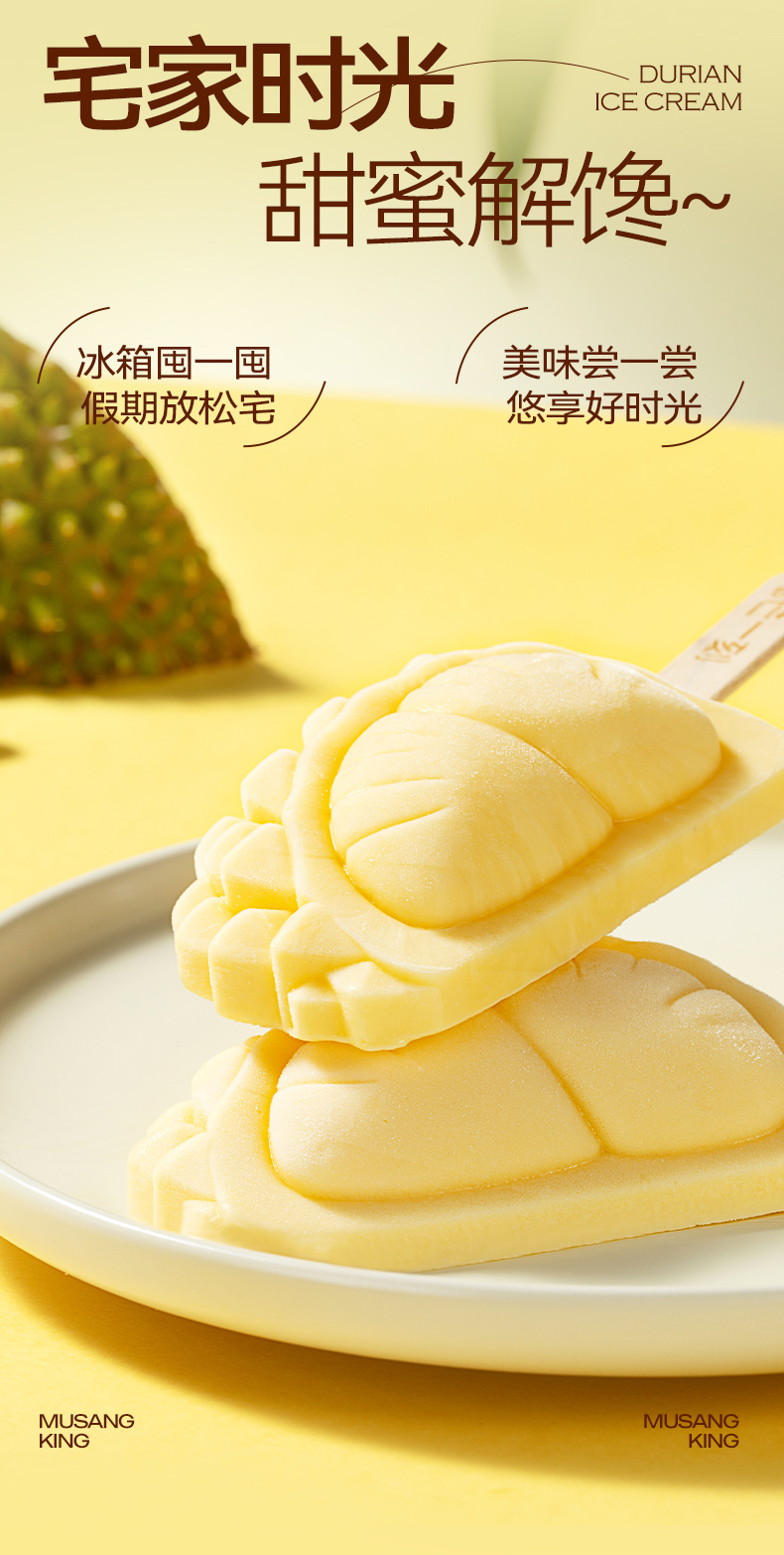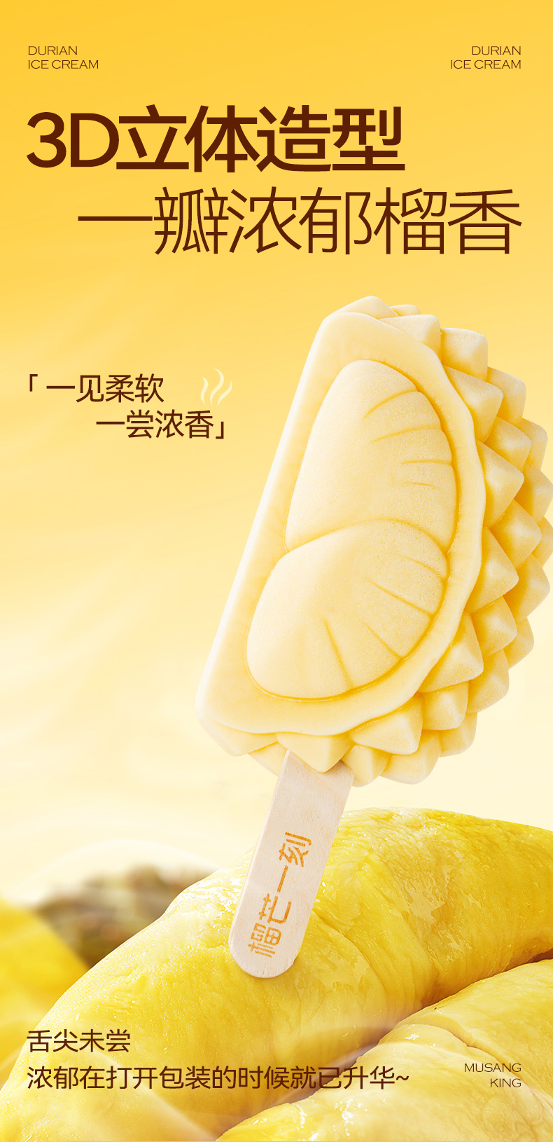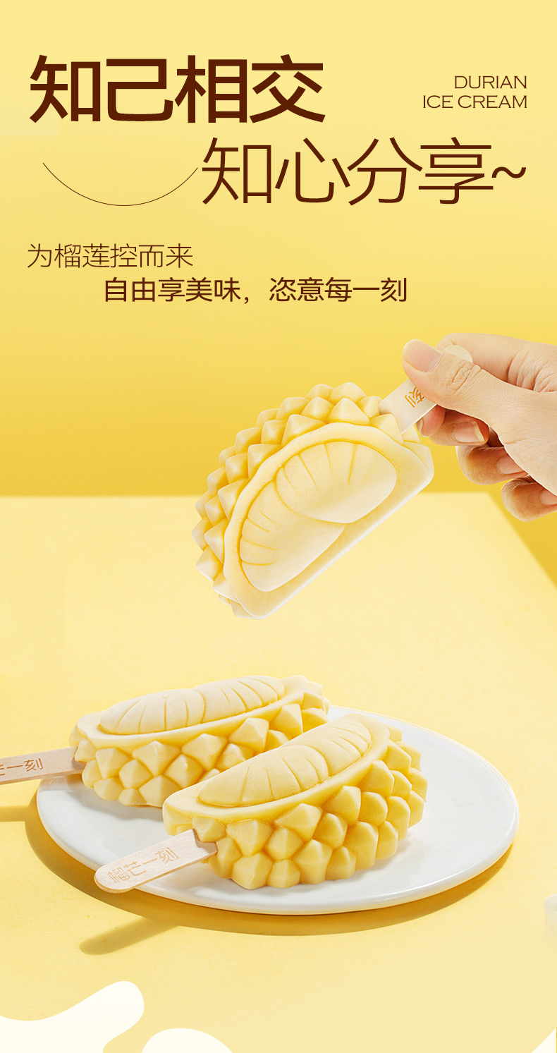 榴芒一刻 新品奶香醇厚真榴莲真果肉 猫山王榴莲冰淇淋条装 6条/8条/10条