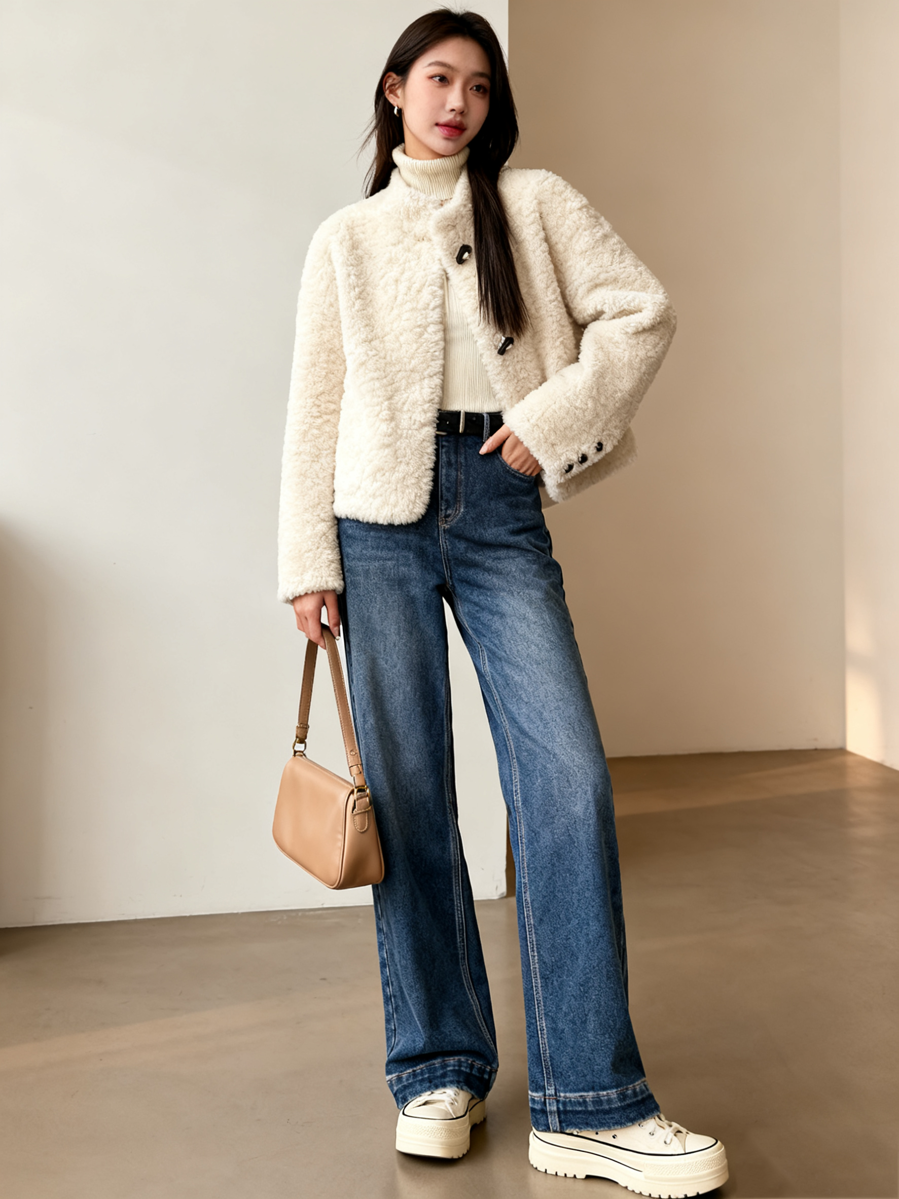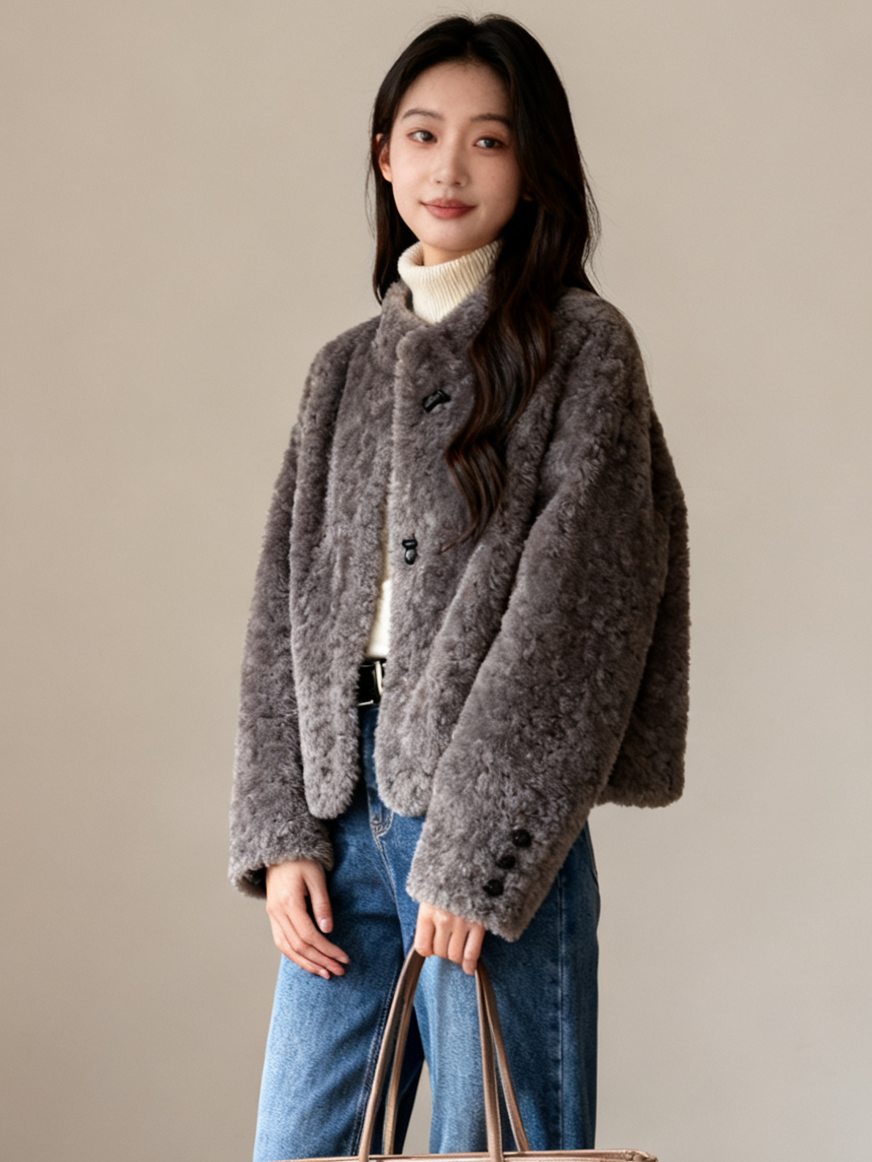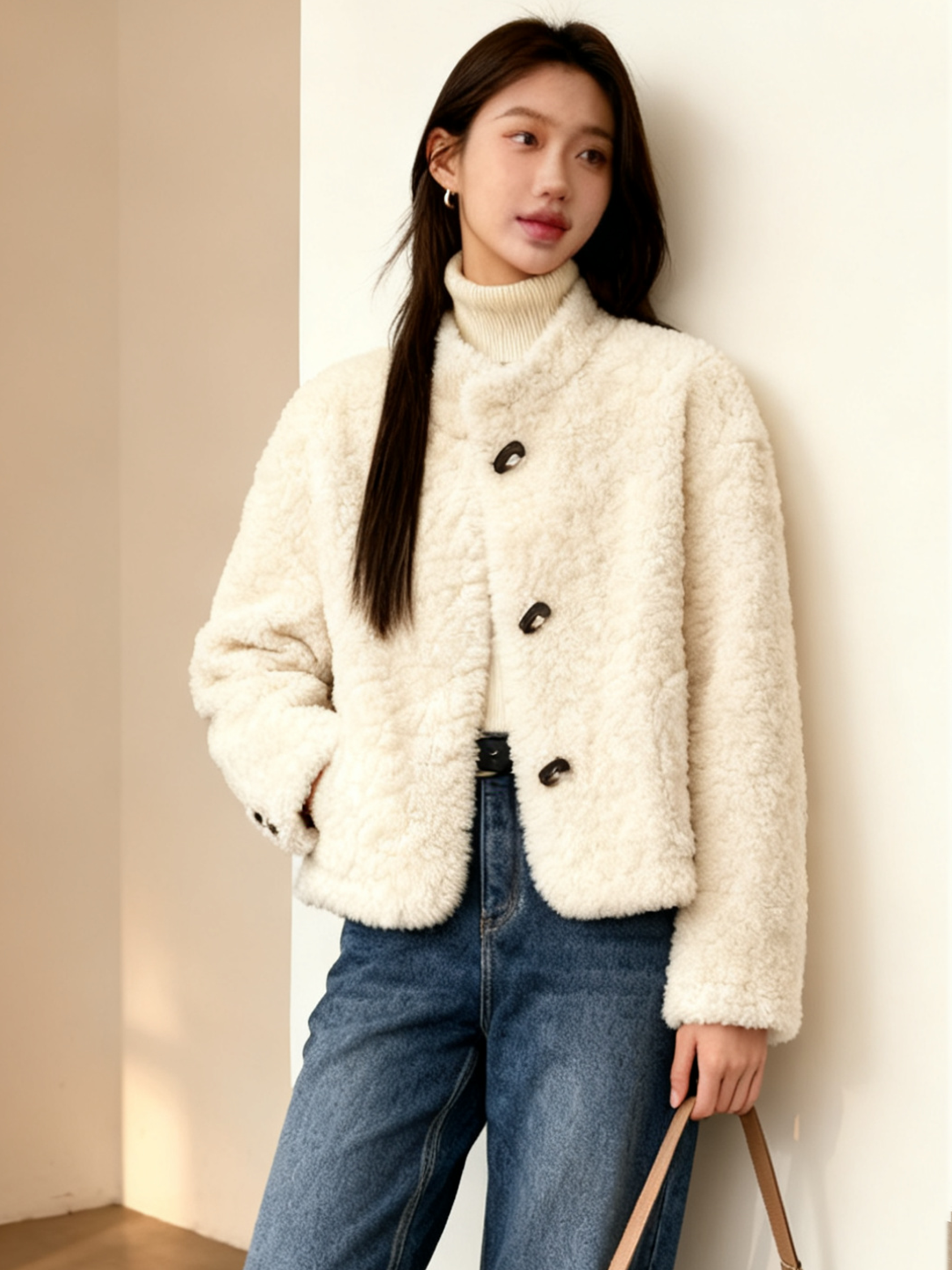 【立领锁温・软 fufu 治愈系】立领皮草,仿羊羔毛皮毛一体外套,环保皮草拒绝伤害,每寸绒毛像云朵贴肤~搭牛仔裤显元气,配半身裙超温柔,秋冬出门有它,暖到心里还不臃肿❄️